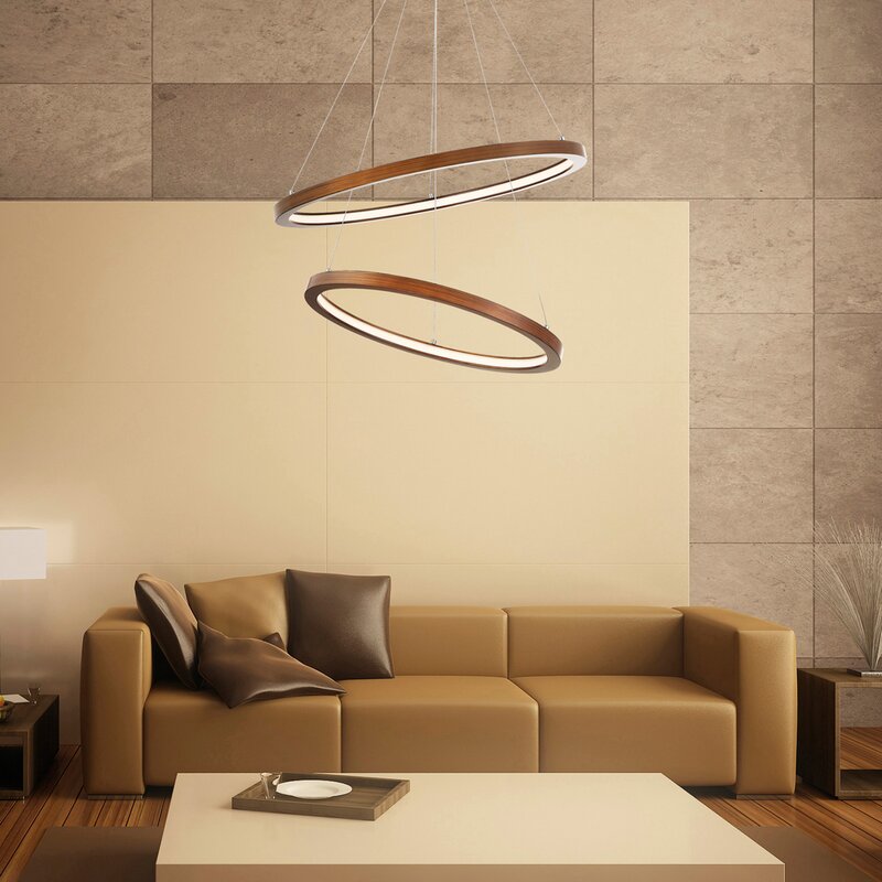 Open box item. 2 - Light LED Unique / Statement Tiered LED Chandelier in Walnut Finish
