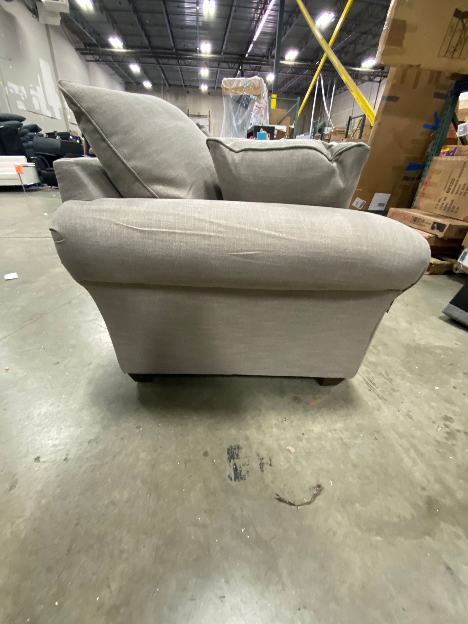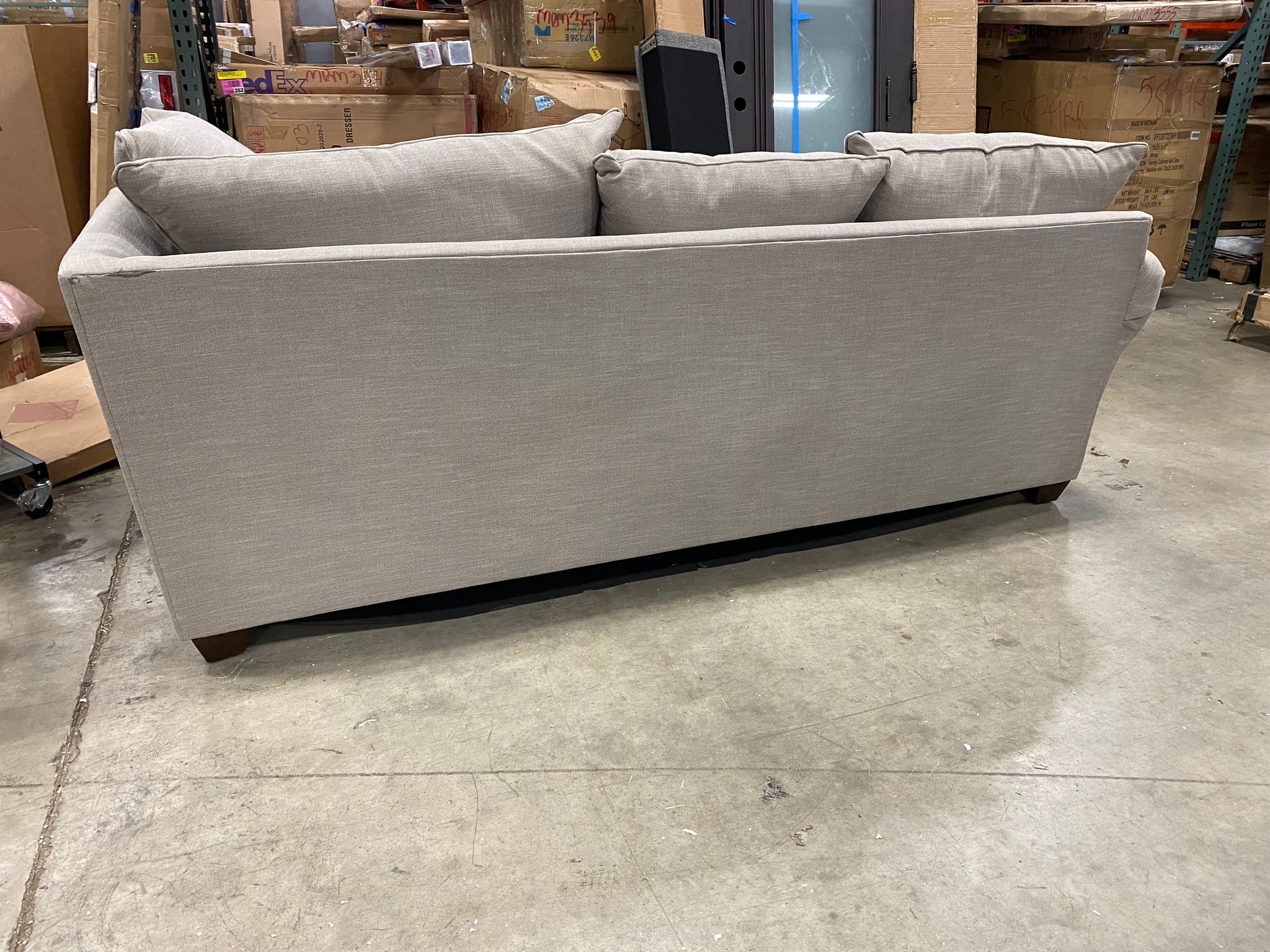 Out of box, The color is conversation linen, Sofa Piece ONLY; other pieces NOT included. Item has scuffed area on back of sofa. See photo. Comes with 2 throw pillows. Item in otherwise good condition.