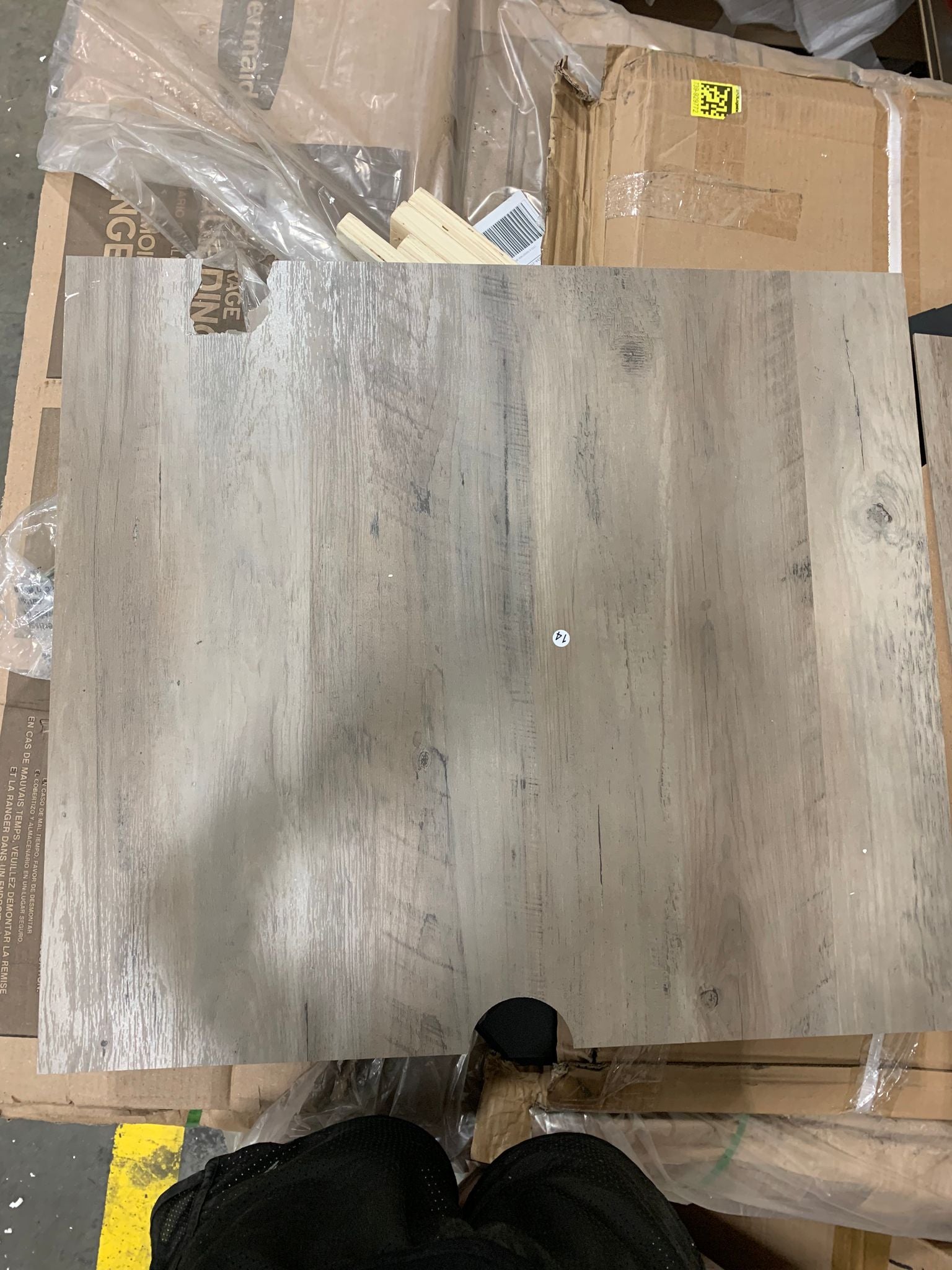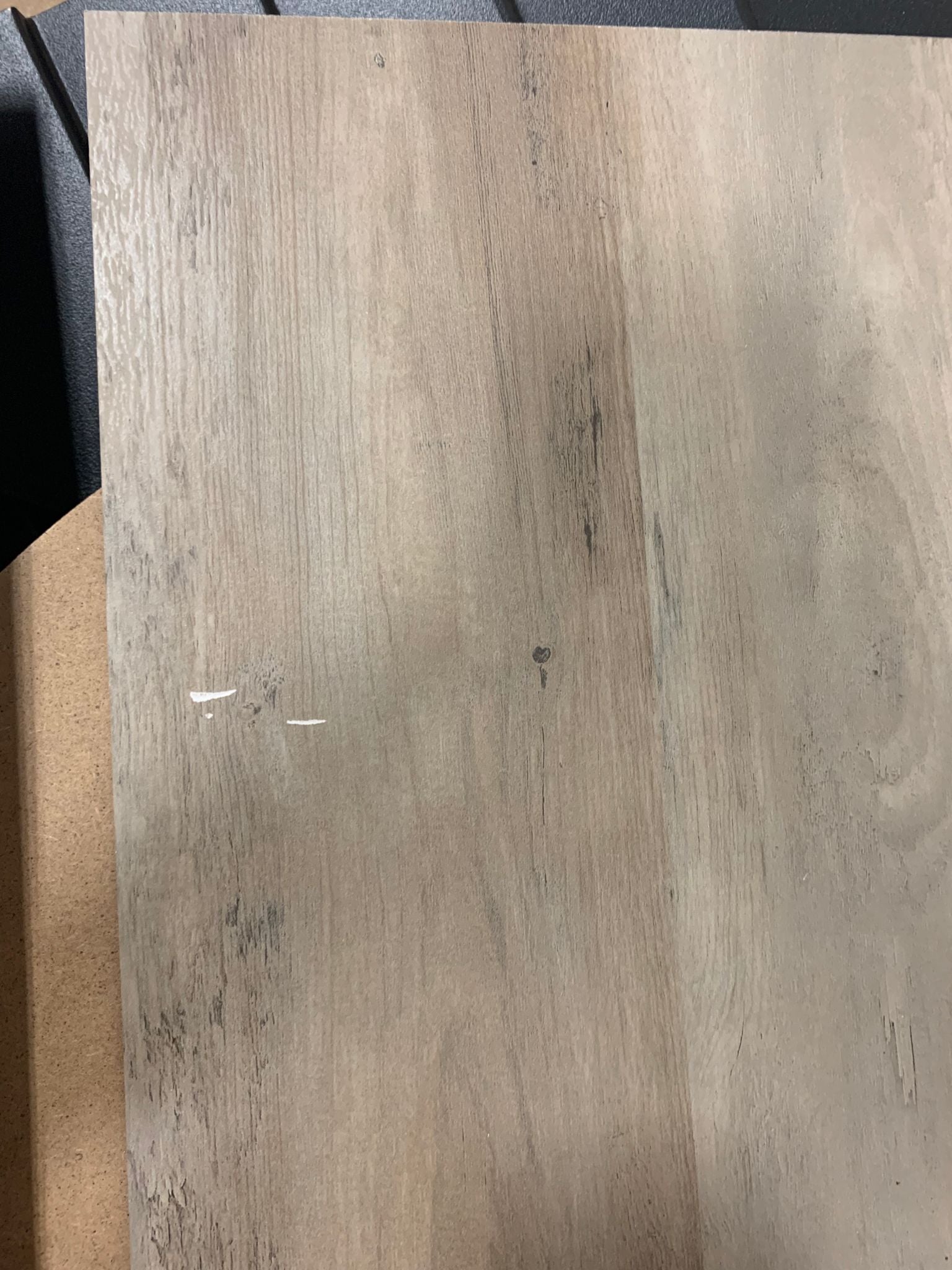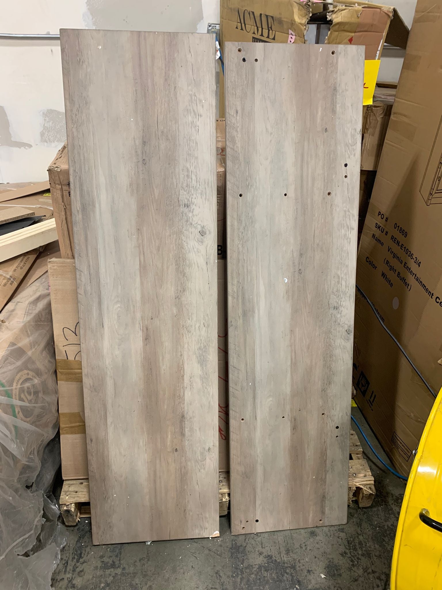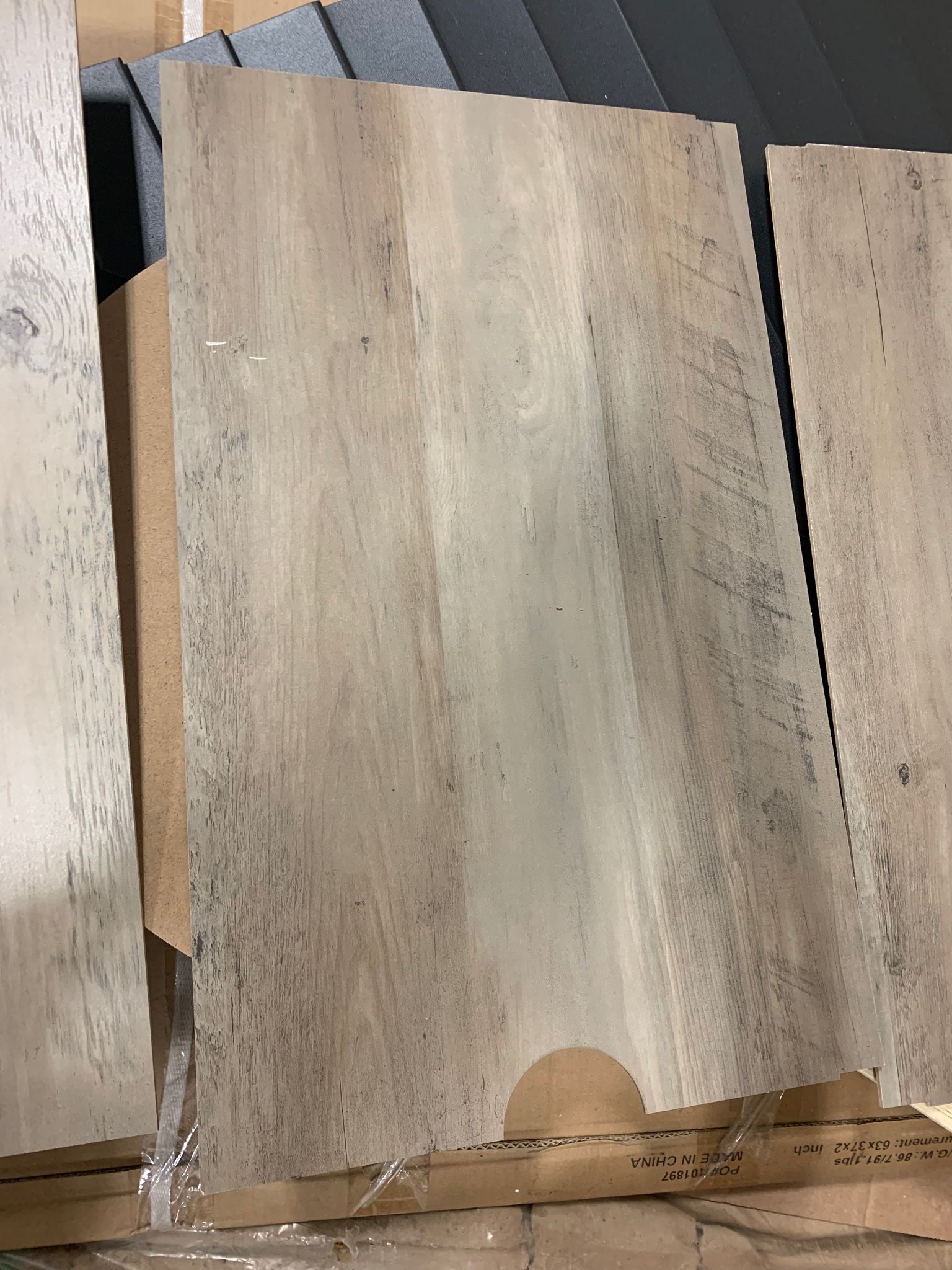 Open box, item is missing all the hardware and has chips and scuffs in several areas of the backing boards.