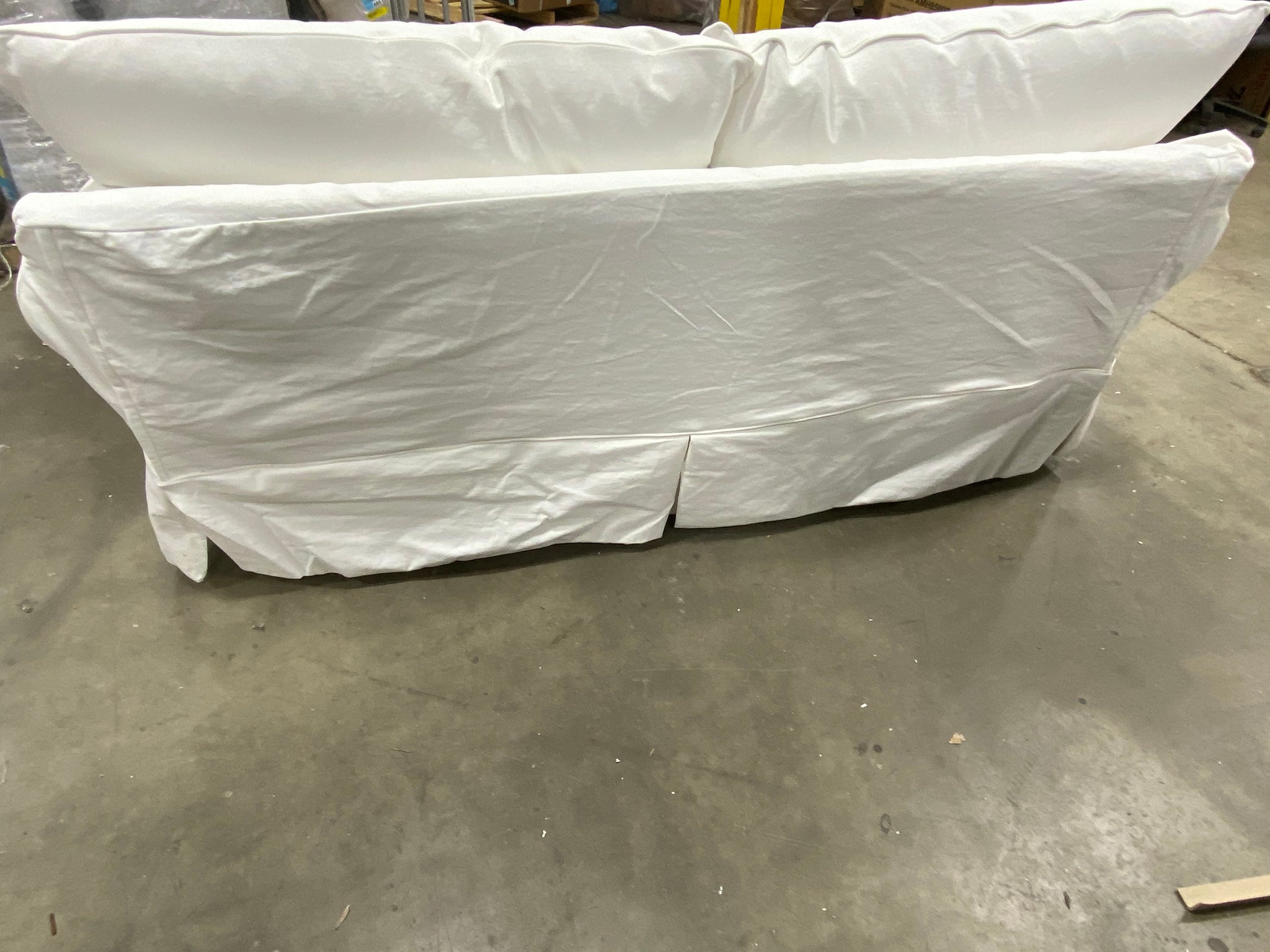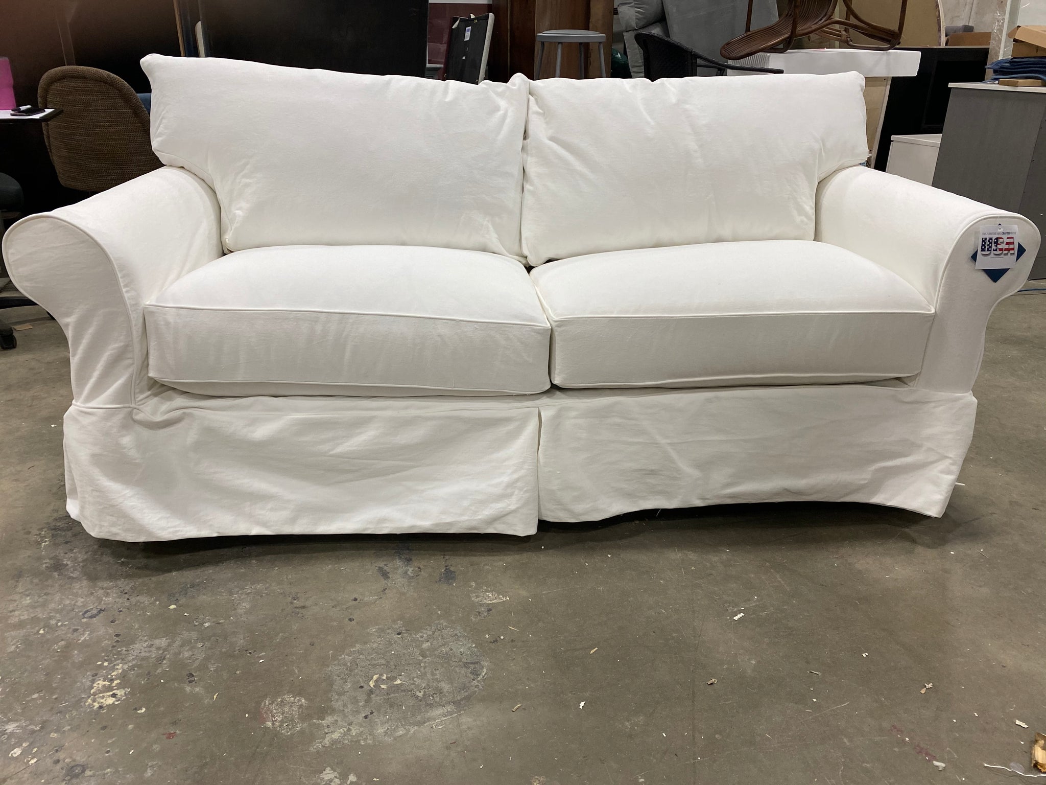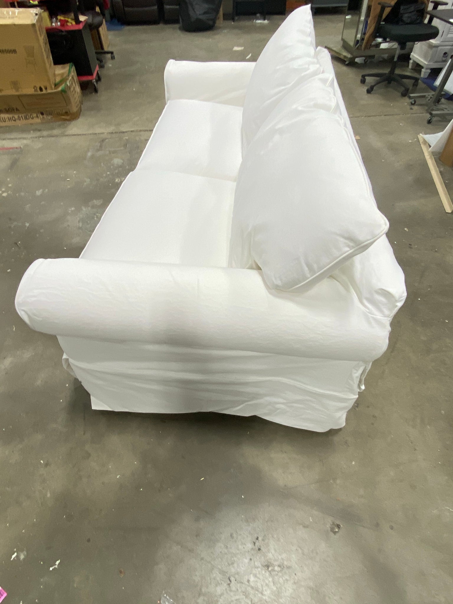 Rolled arm slipcover sofa in Classic Bleach White. Removable slipcover. Item is in great condition.