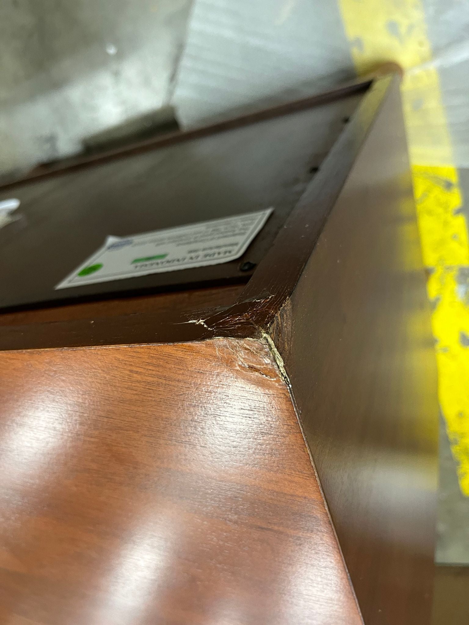 Note: Back corners have taken a hit. Most of the finish is still present and may just need some wood filler.