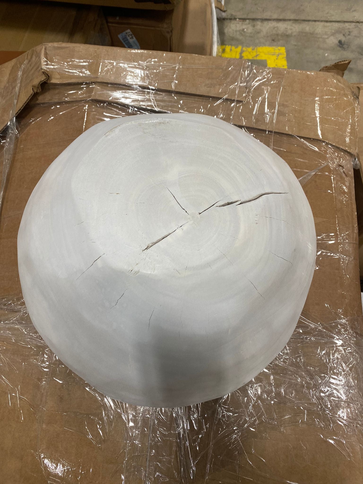 Open box, The color is antique white, Please Note: Bowl has fissure in bottom that is natural characteristic of the wood.