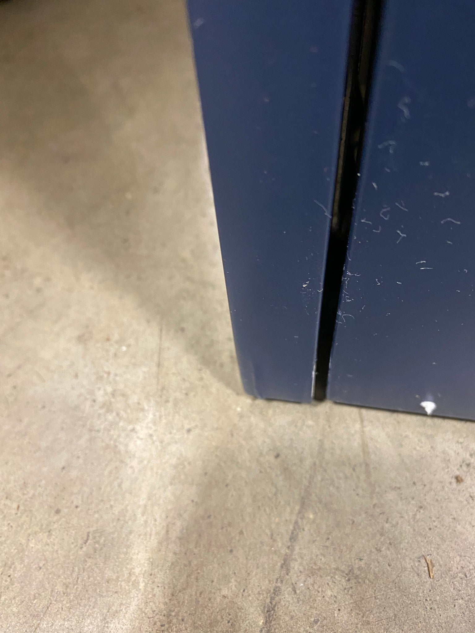 Item has slight blemish on bottom left front corner of vanity. See photo. Item is in otherwise exellent condition.