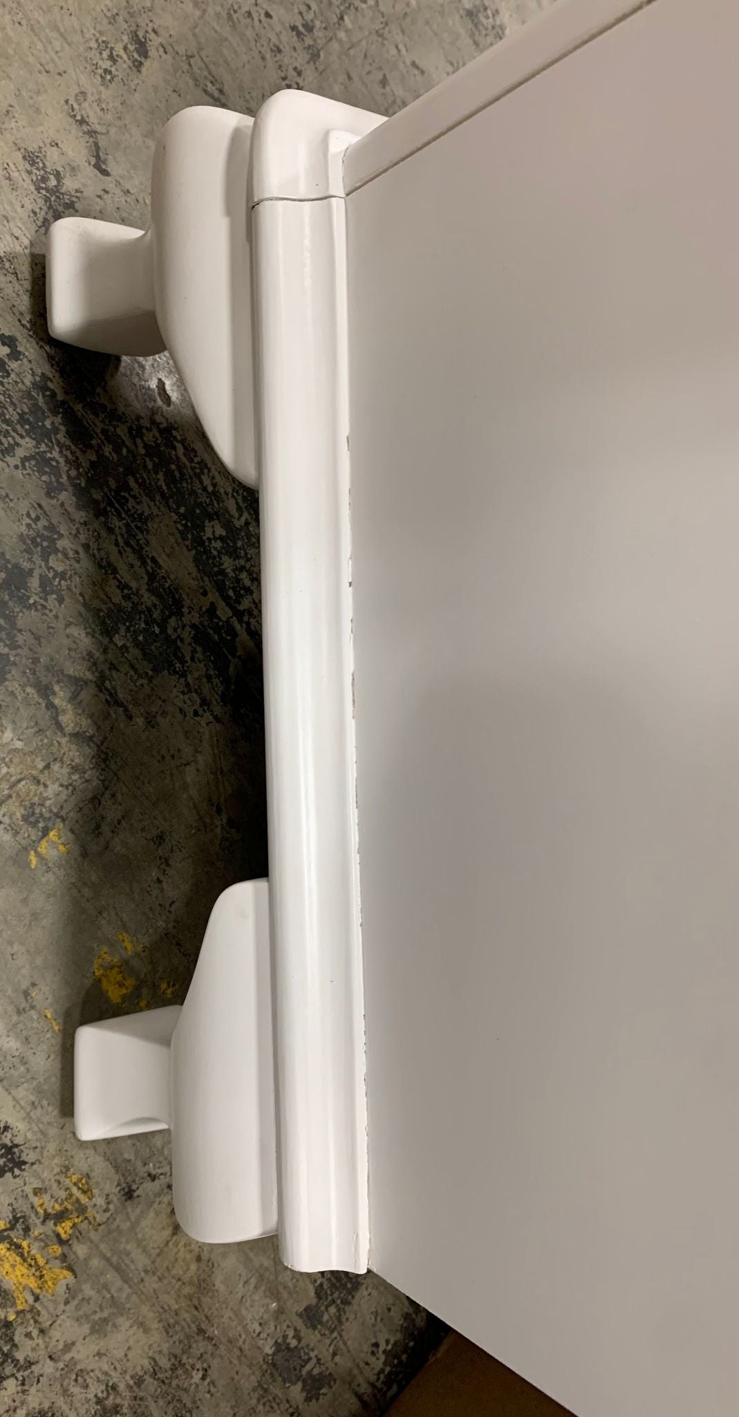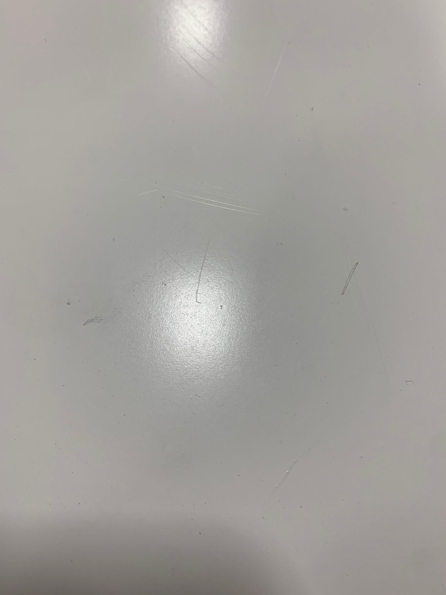 Out of box, Item has a slight imperfection on the bottom right side if your looking from the front.