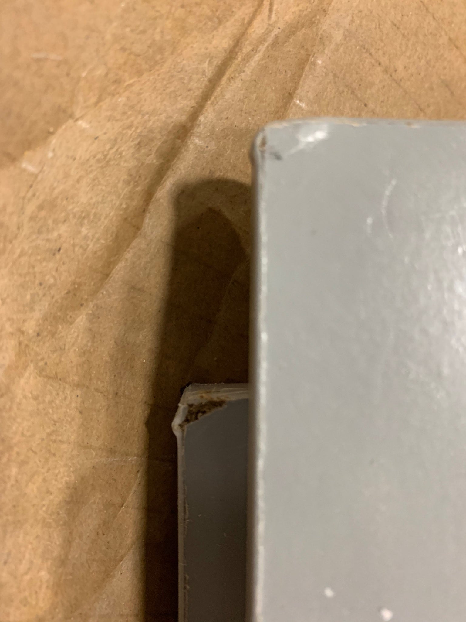 Open Box, The color is dove gray, item has a few slight scuffs on the boards due to open shipment. otherwise good condition and the fireplace is in tact.
