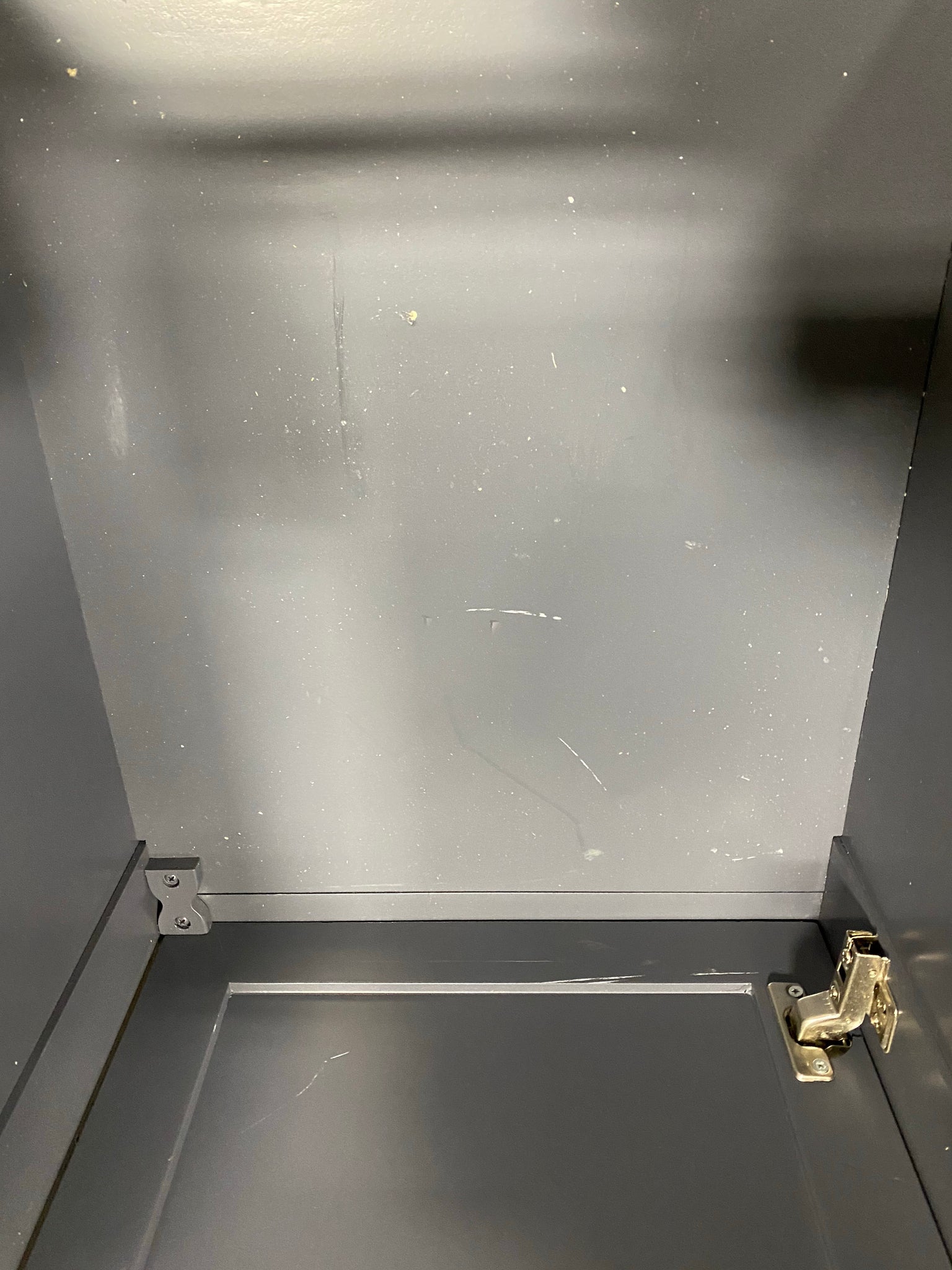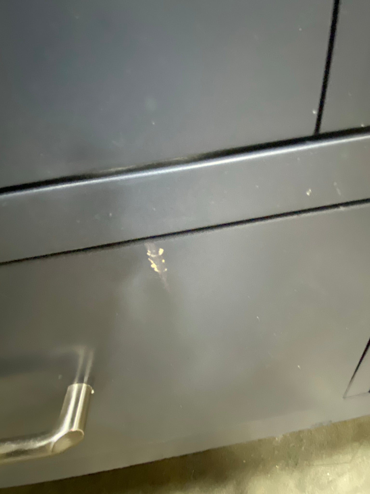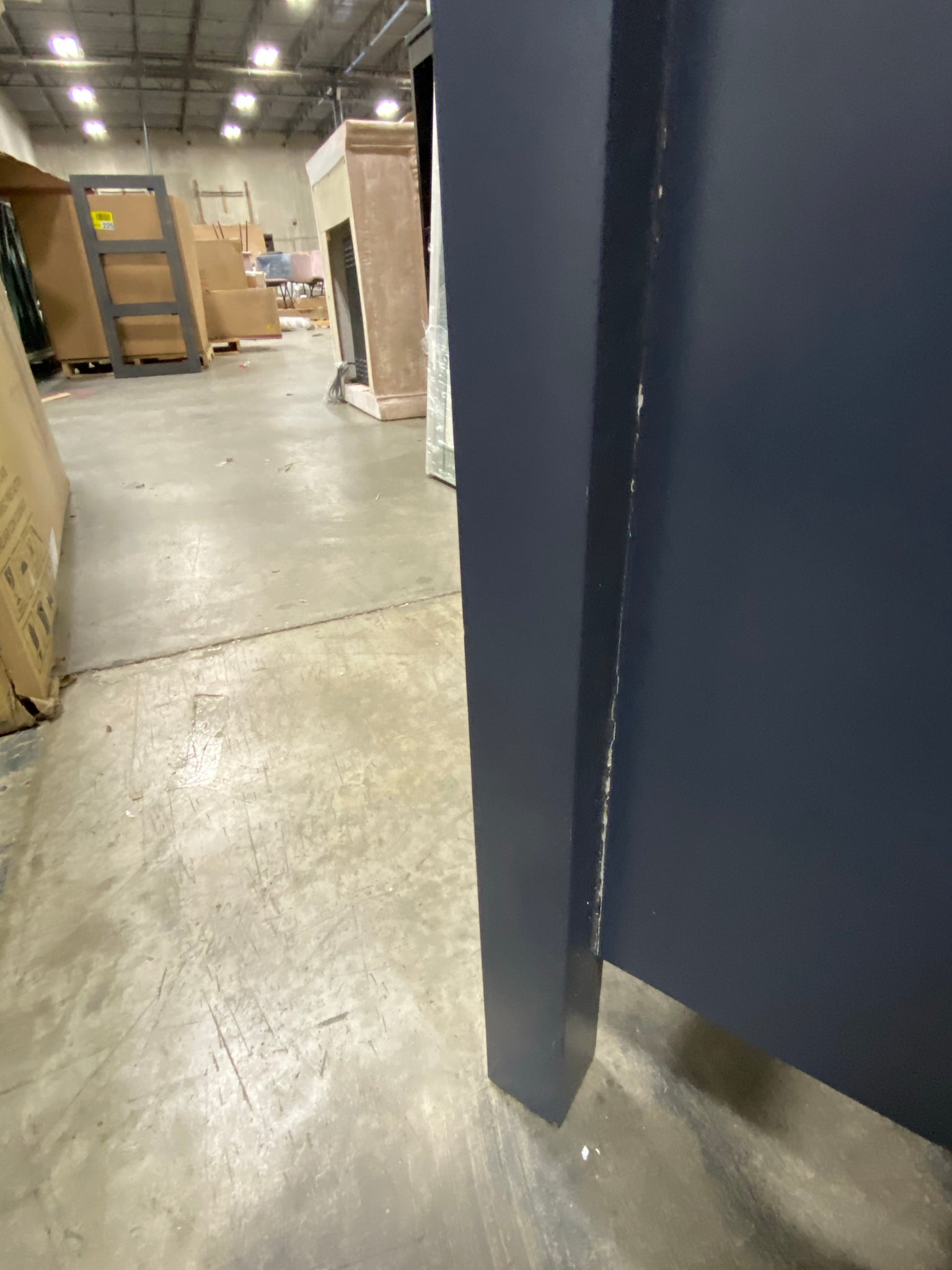 AS IS Condition: Top missing; Base does have dings/scuffs on back/interior/sides due to open shipment; bottom drawer track loose. Chipped paint along side seams and front door. See photos. Item in otherwise good condition. Final Sale. Item non returnable/refundable.