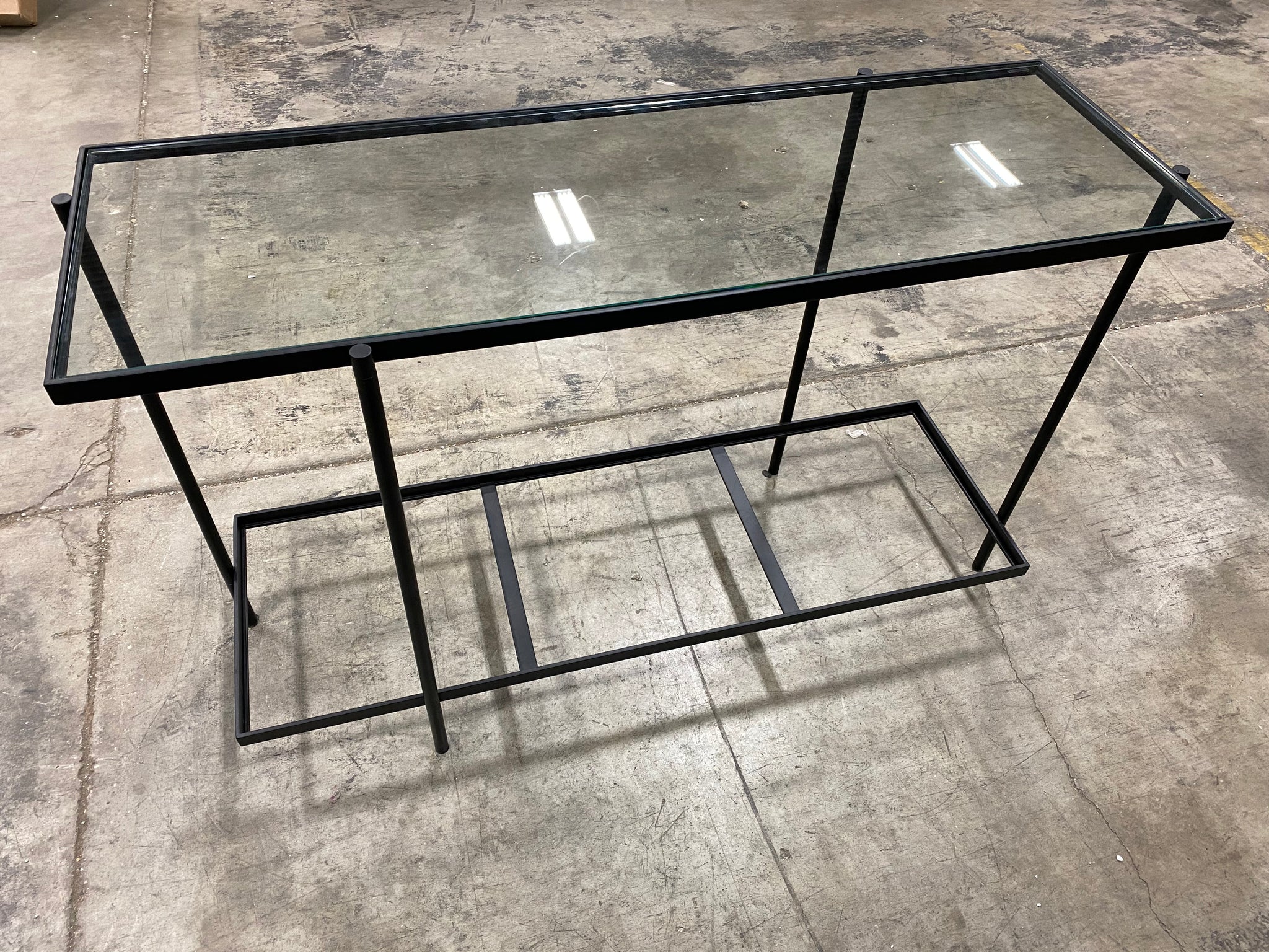 Black metal console table with Glass top.
