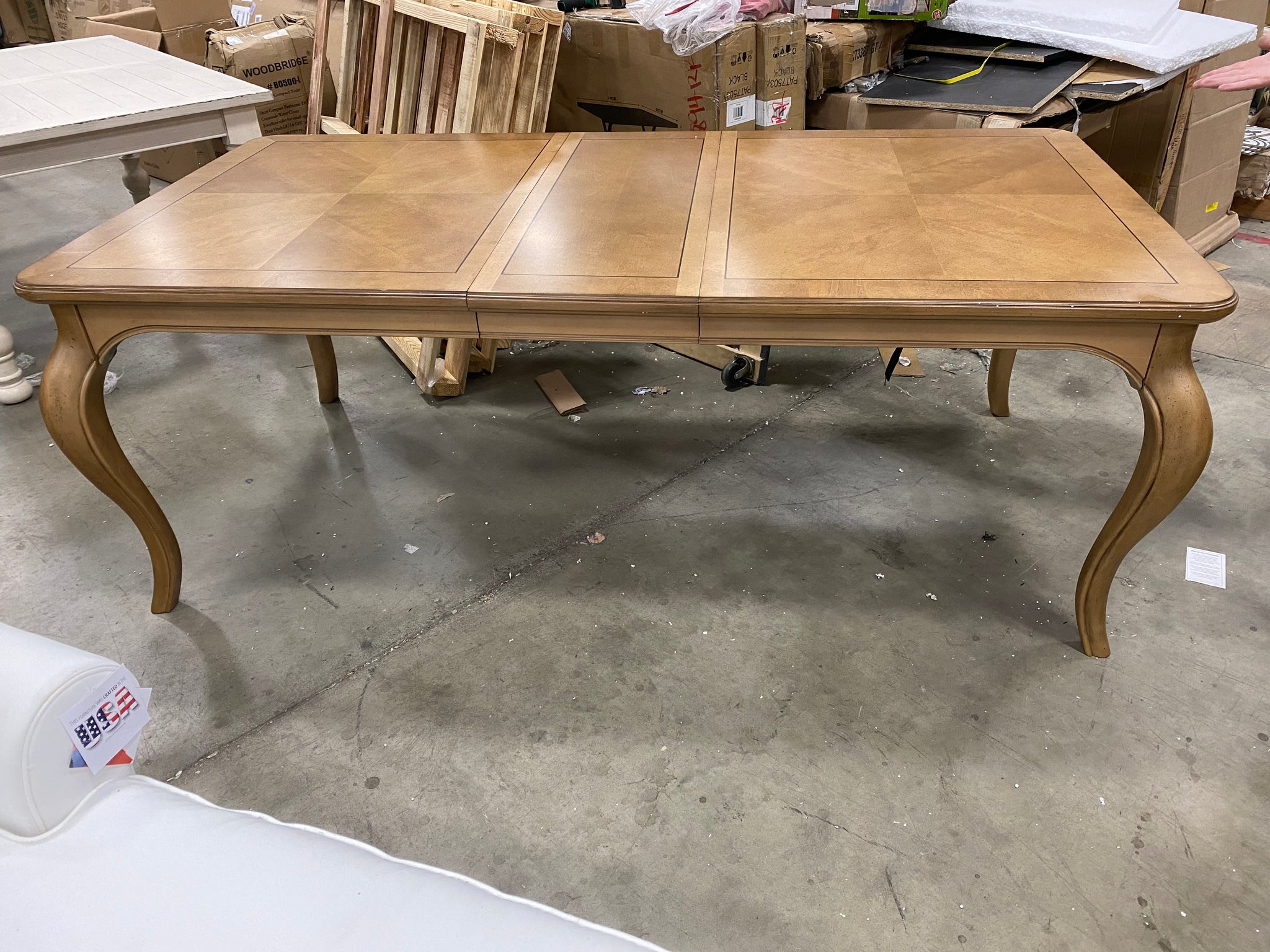 Out of box dining table in Light Birch finish.