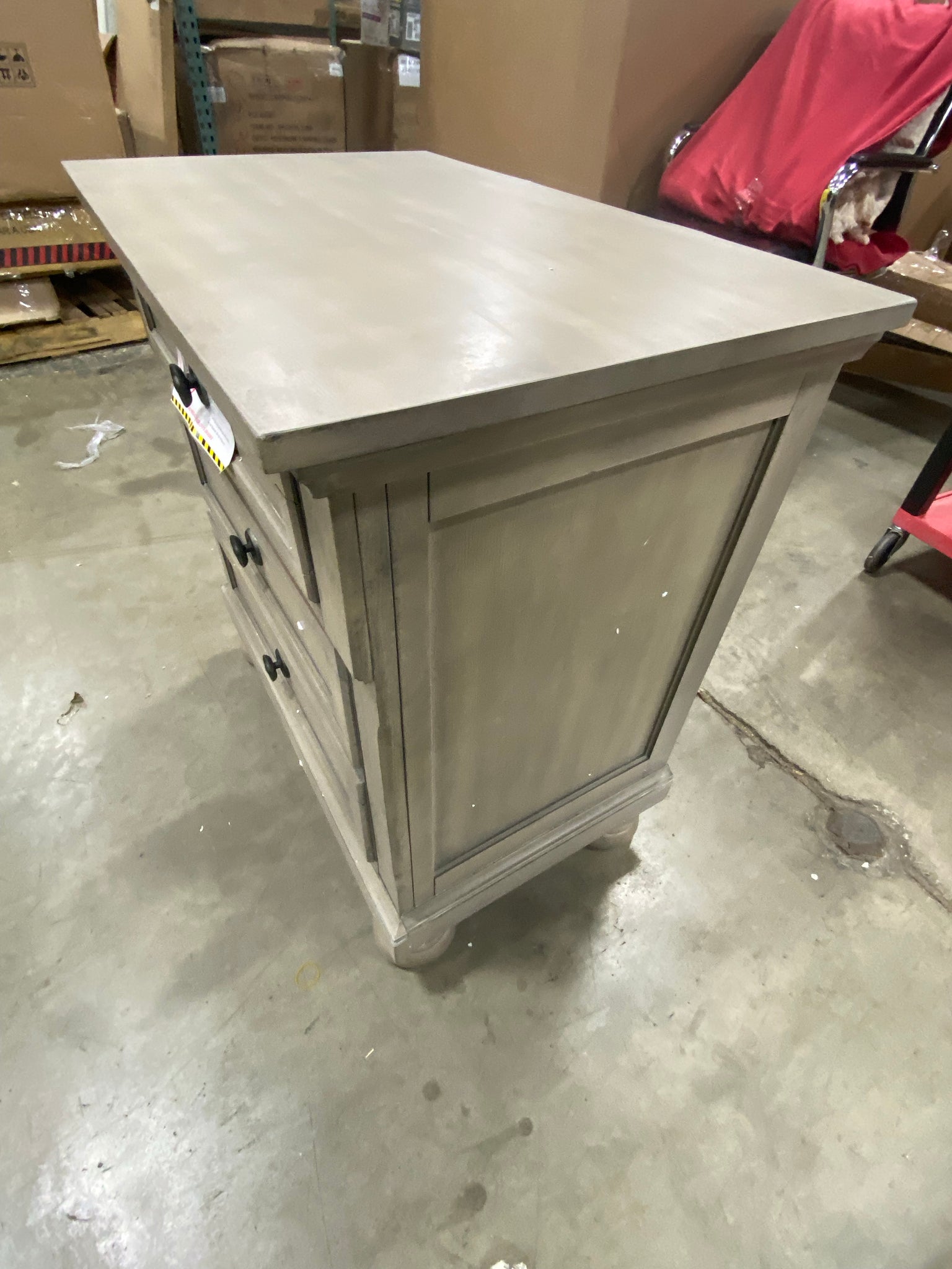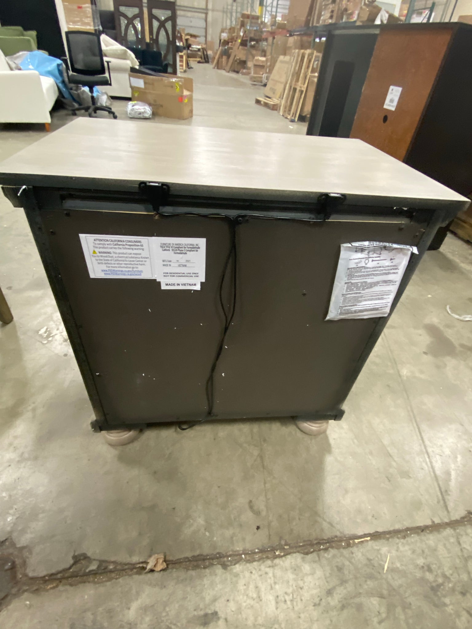 Out of box, Item has usb plug ports.Please Note: Item top drawer gets stuck. Item in otherwise good condition.