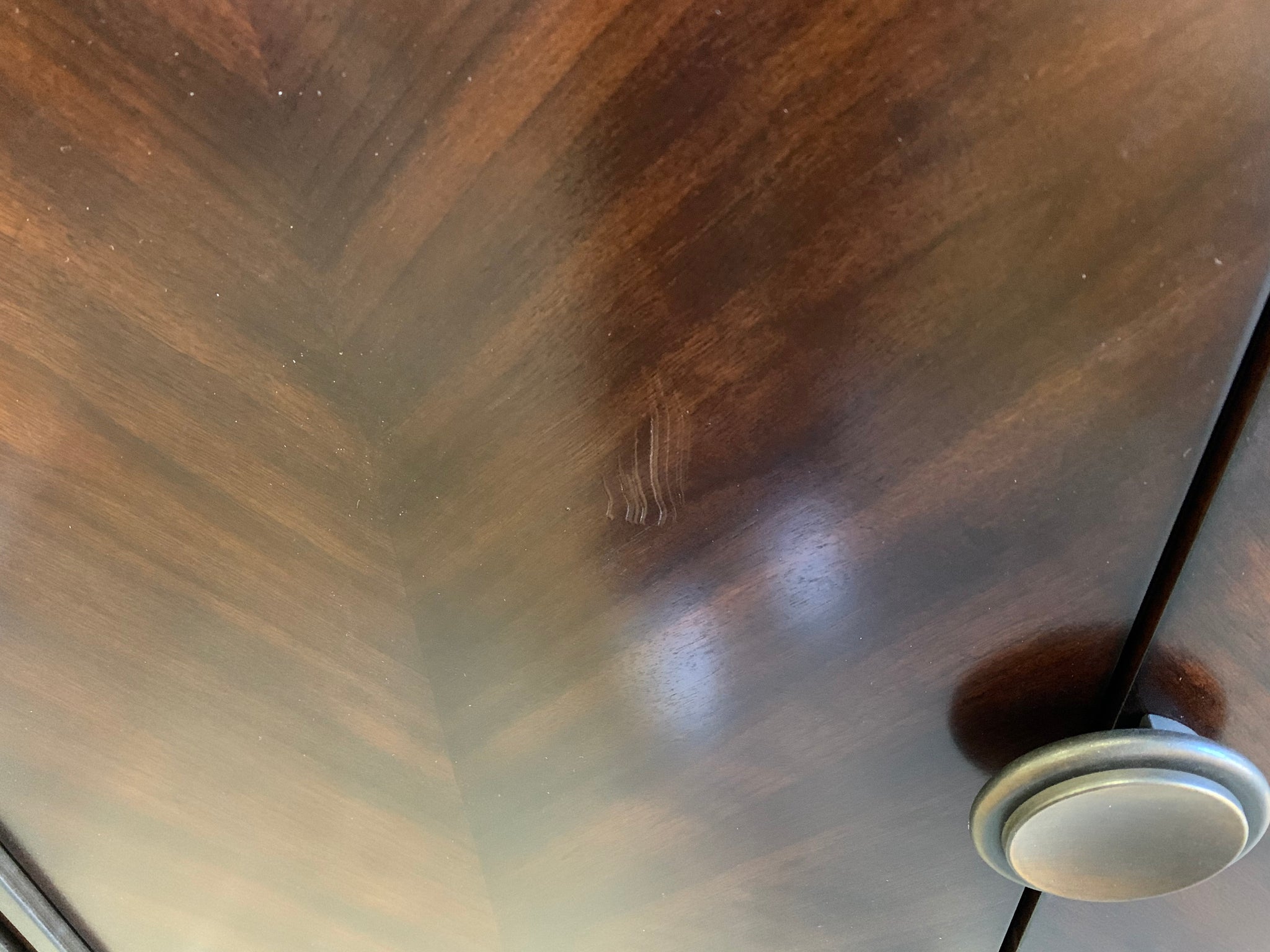 Please note: Very slight scratching on 1 of the right cabinets, not incredibly noticeable. *See photos*