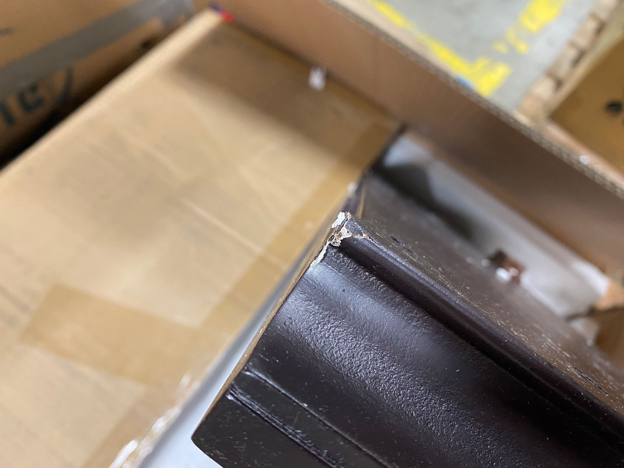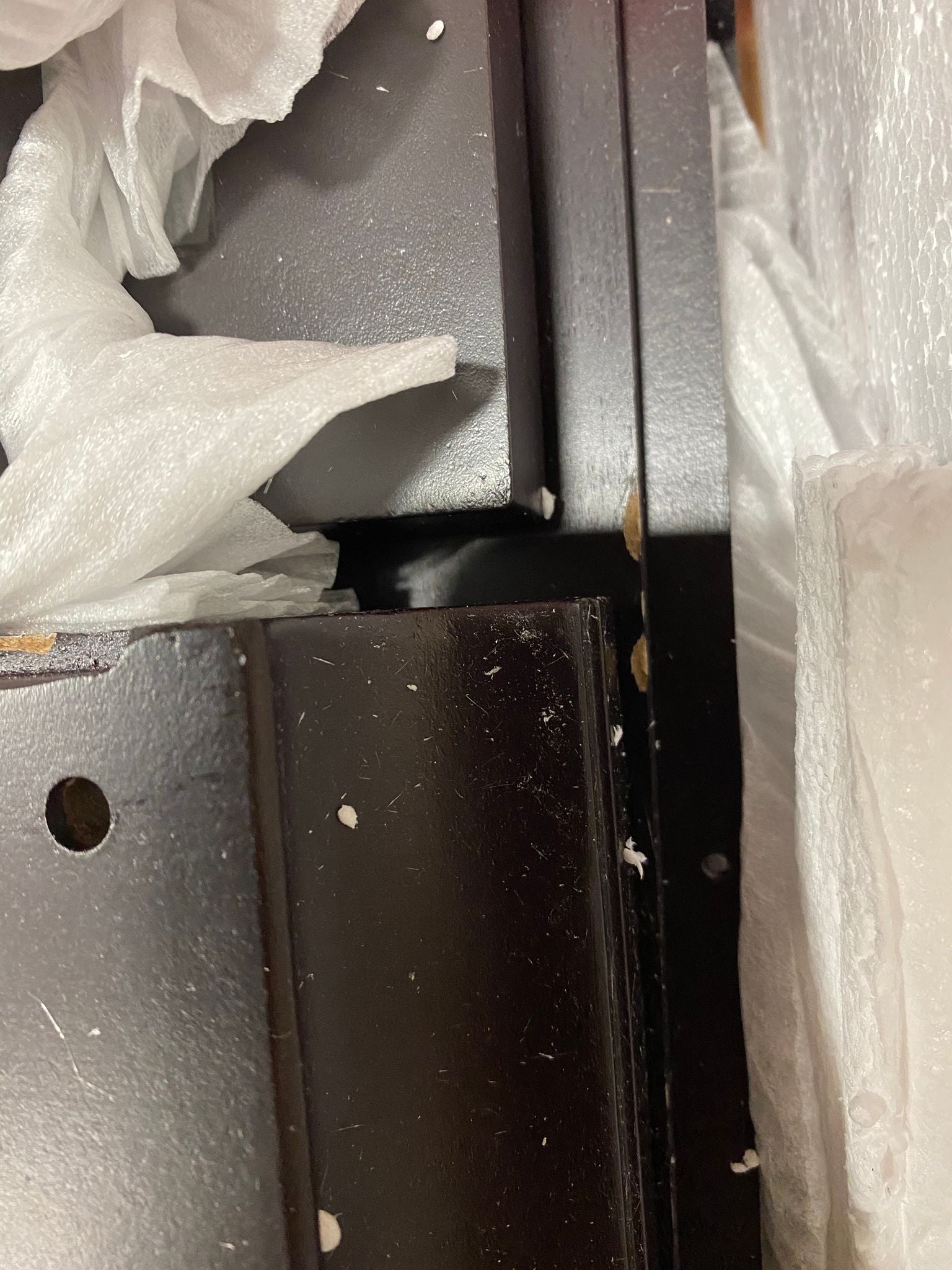 Open Box, The color is dark espresso, Please Note: Slight dings on some corners of boards. See photo.