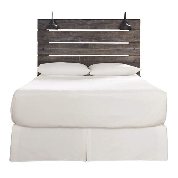In box wooden panel headboard with attached reading lamps in Brown. Assembly required.