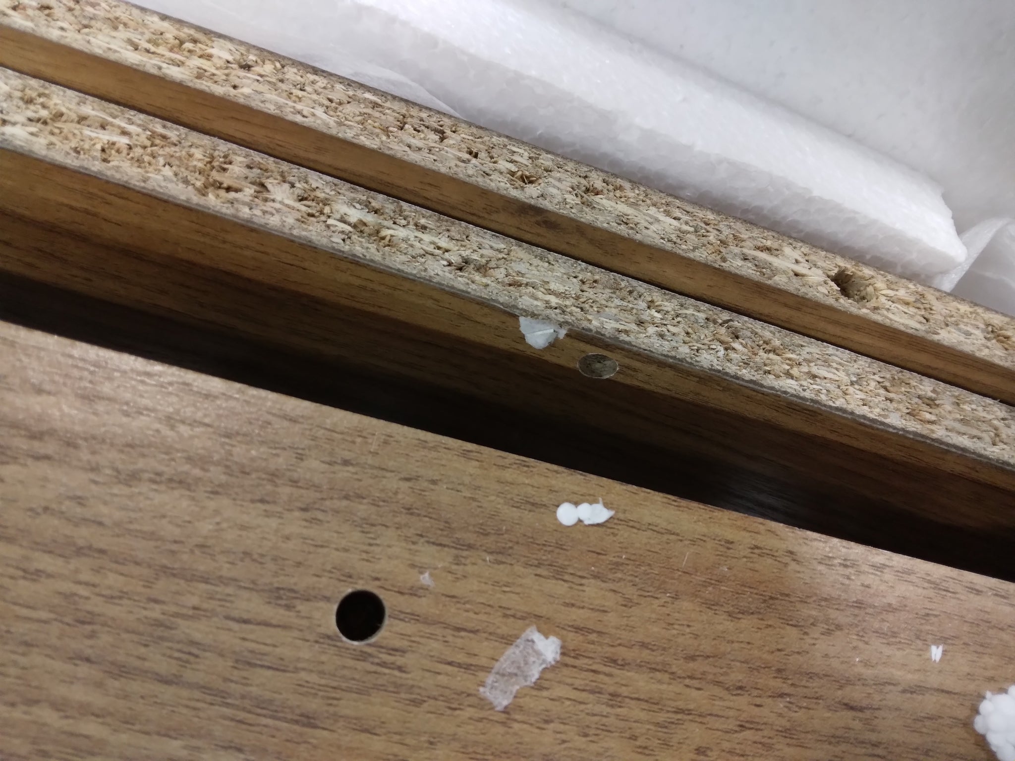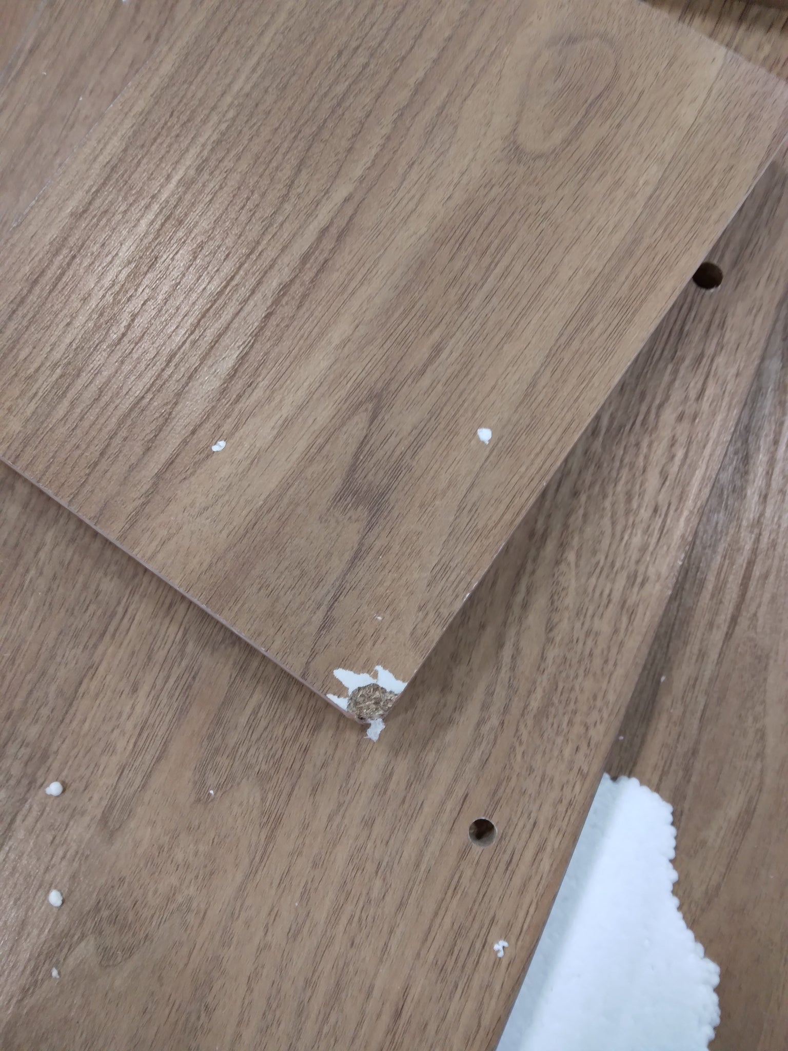 Open Box, The color is walnut, AS IS: This tv stand has been previously opened. There is no hardware included. There may be missing boards for the tv stand. There is no guarantee they are all included. There are slight chips throughout pieces. See for photos.