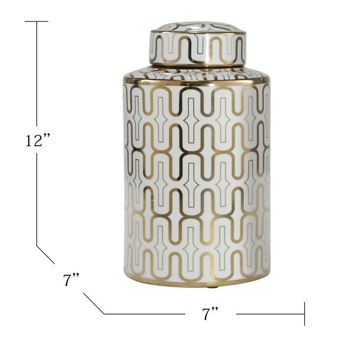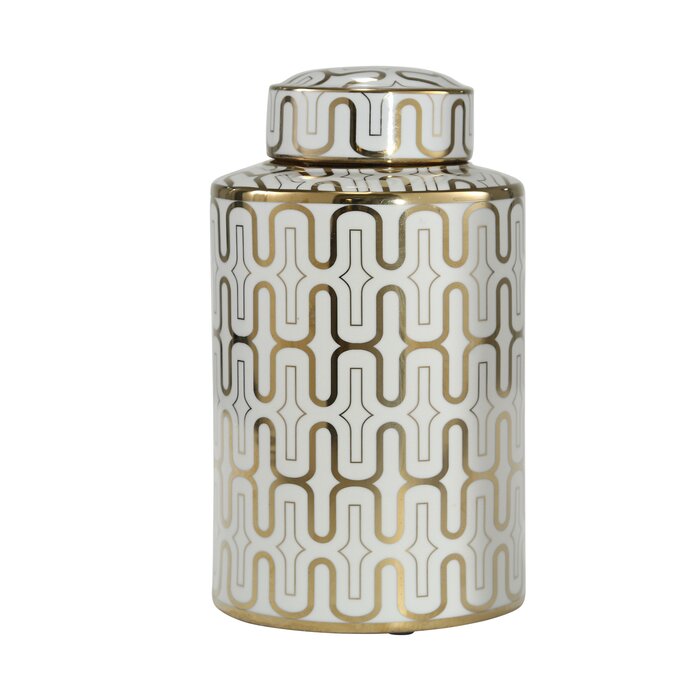 Ceramic Jar, White/Gold, #6480
