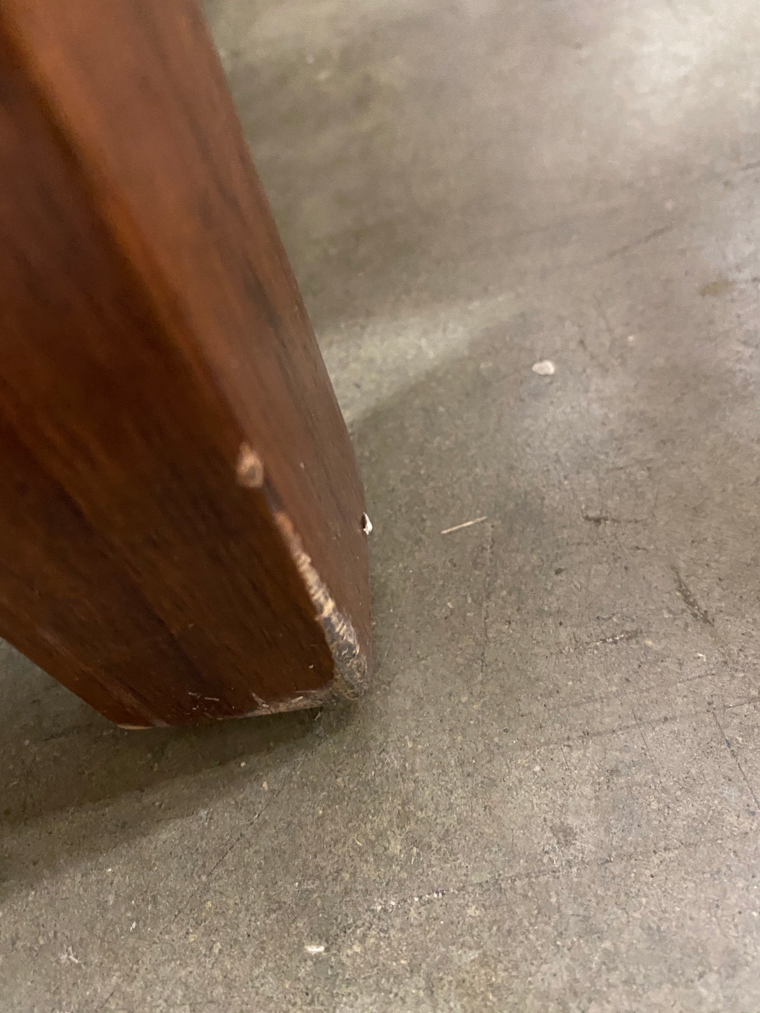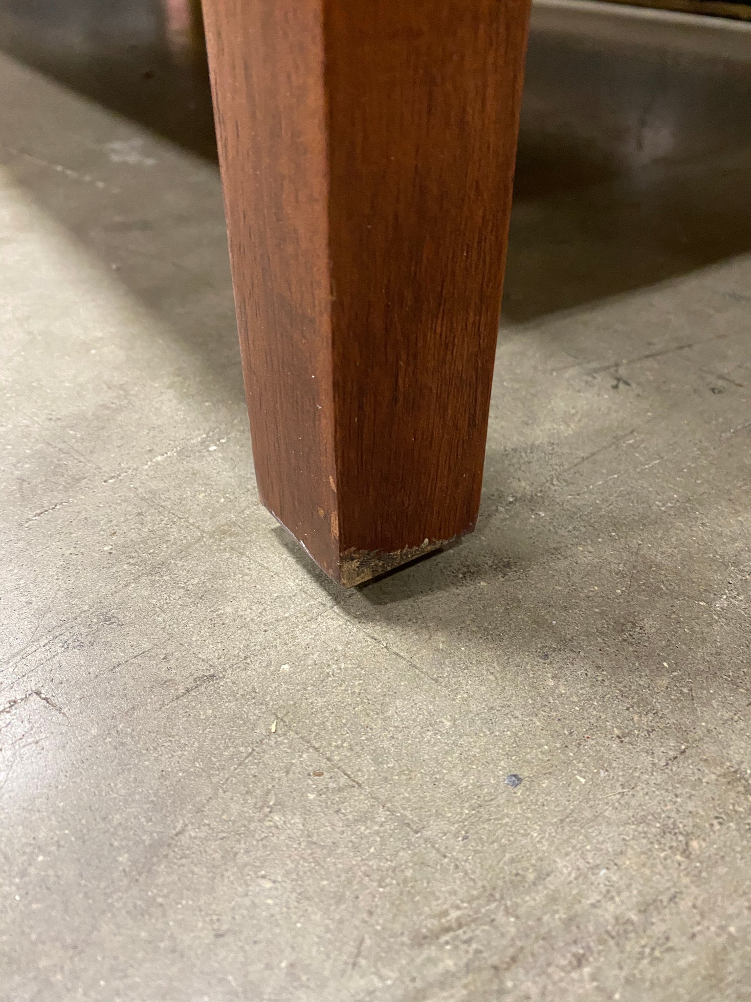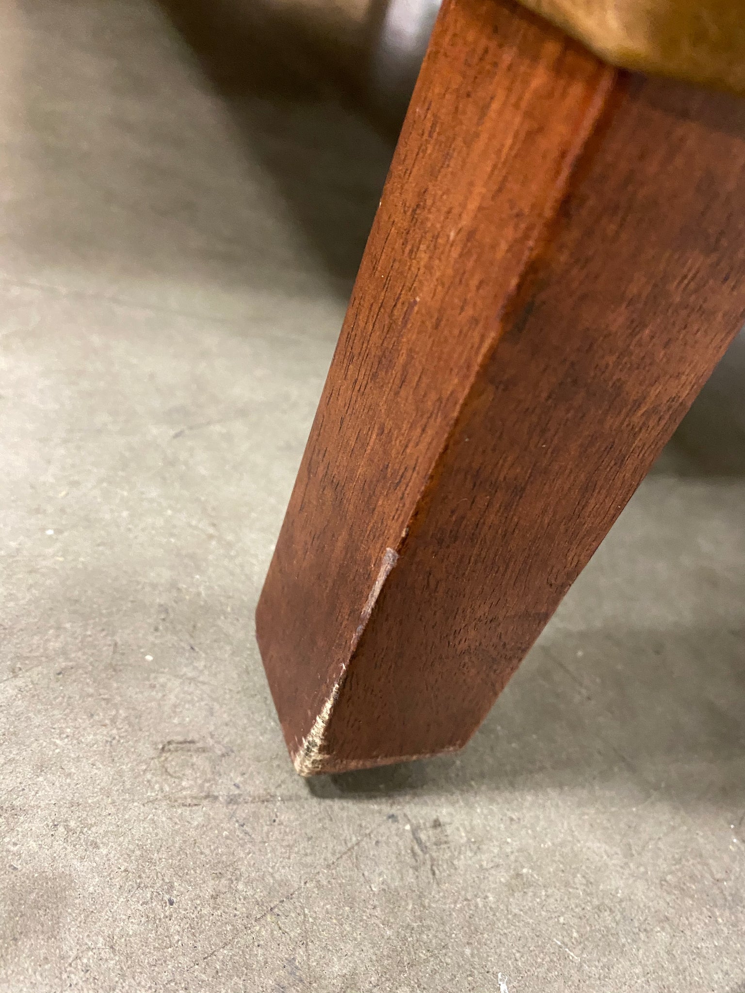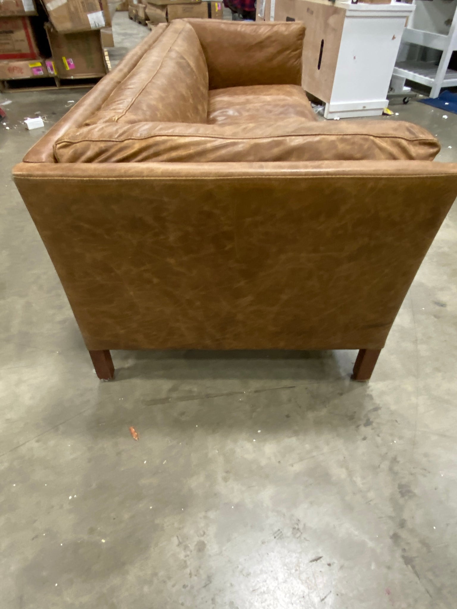 Please Note: Legs have slight damage due to open shipment; leather finish is worn and distressed; natural variances may occur. Item in great condition.