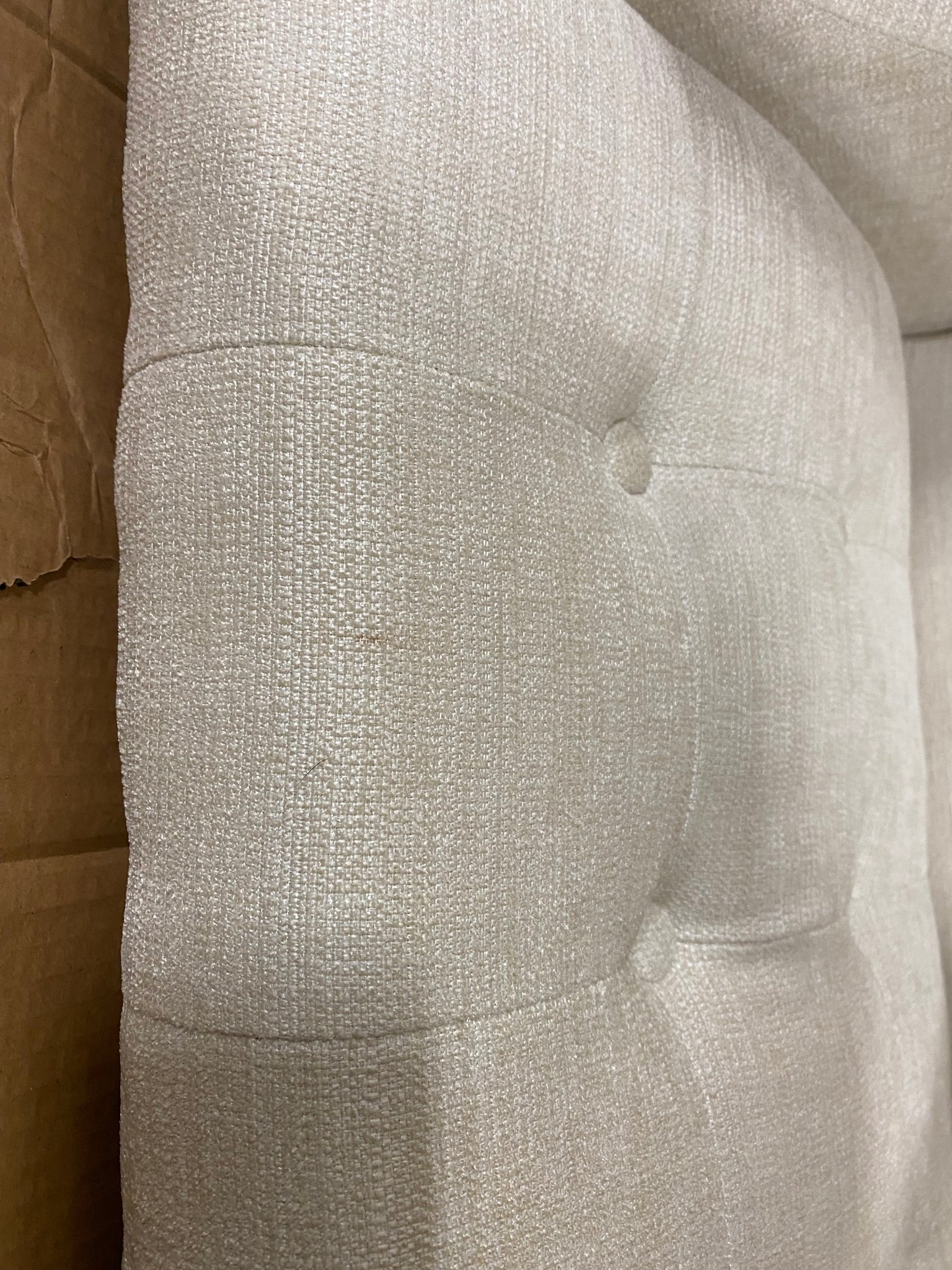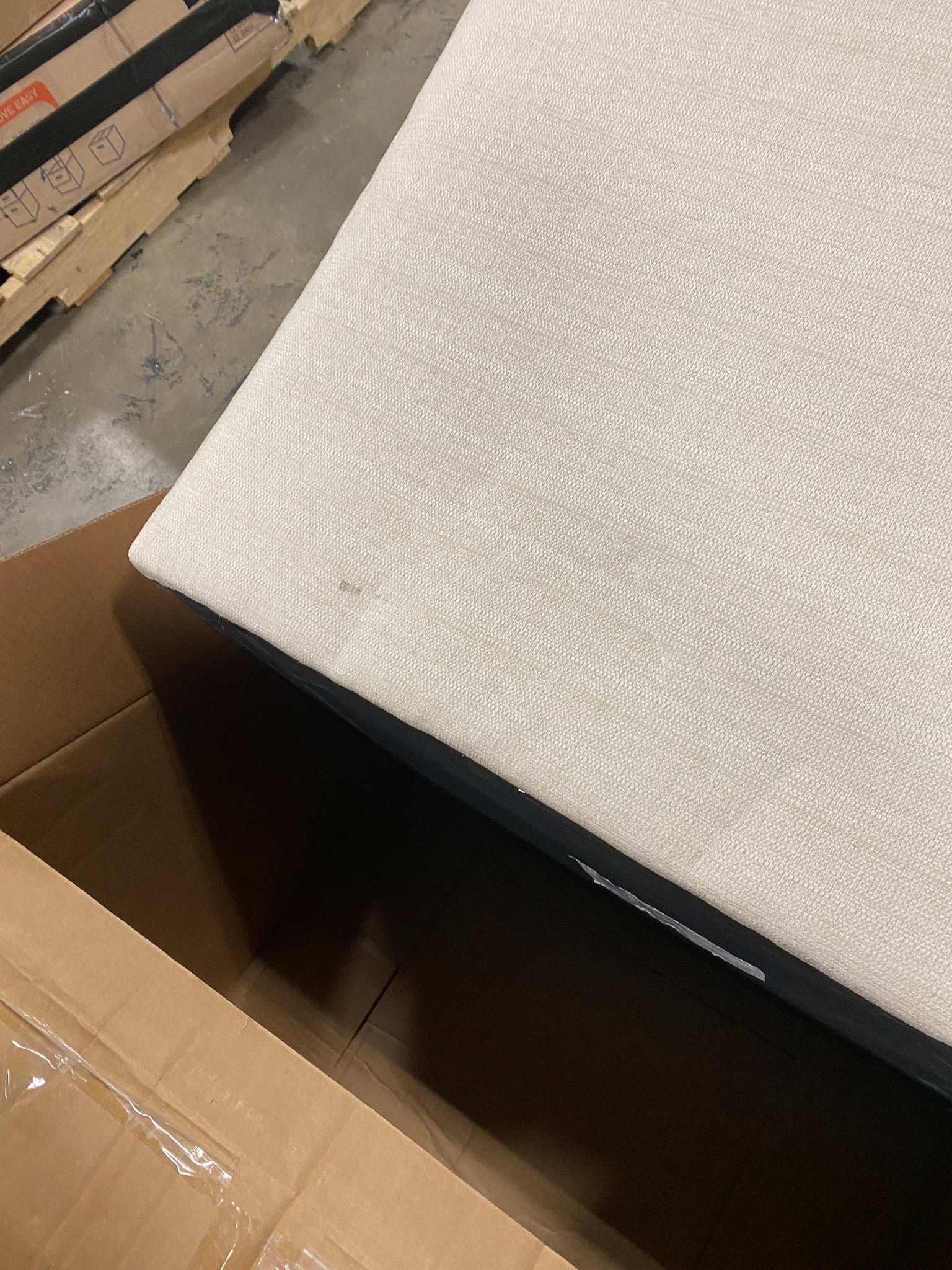 Open Box, The color is beige, AS IS Condition: Item has some spotting/marks on top of headrest/back bottom of chair. See photos. Legs have some slight dings throughout.