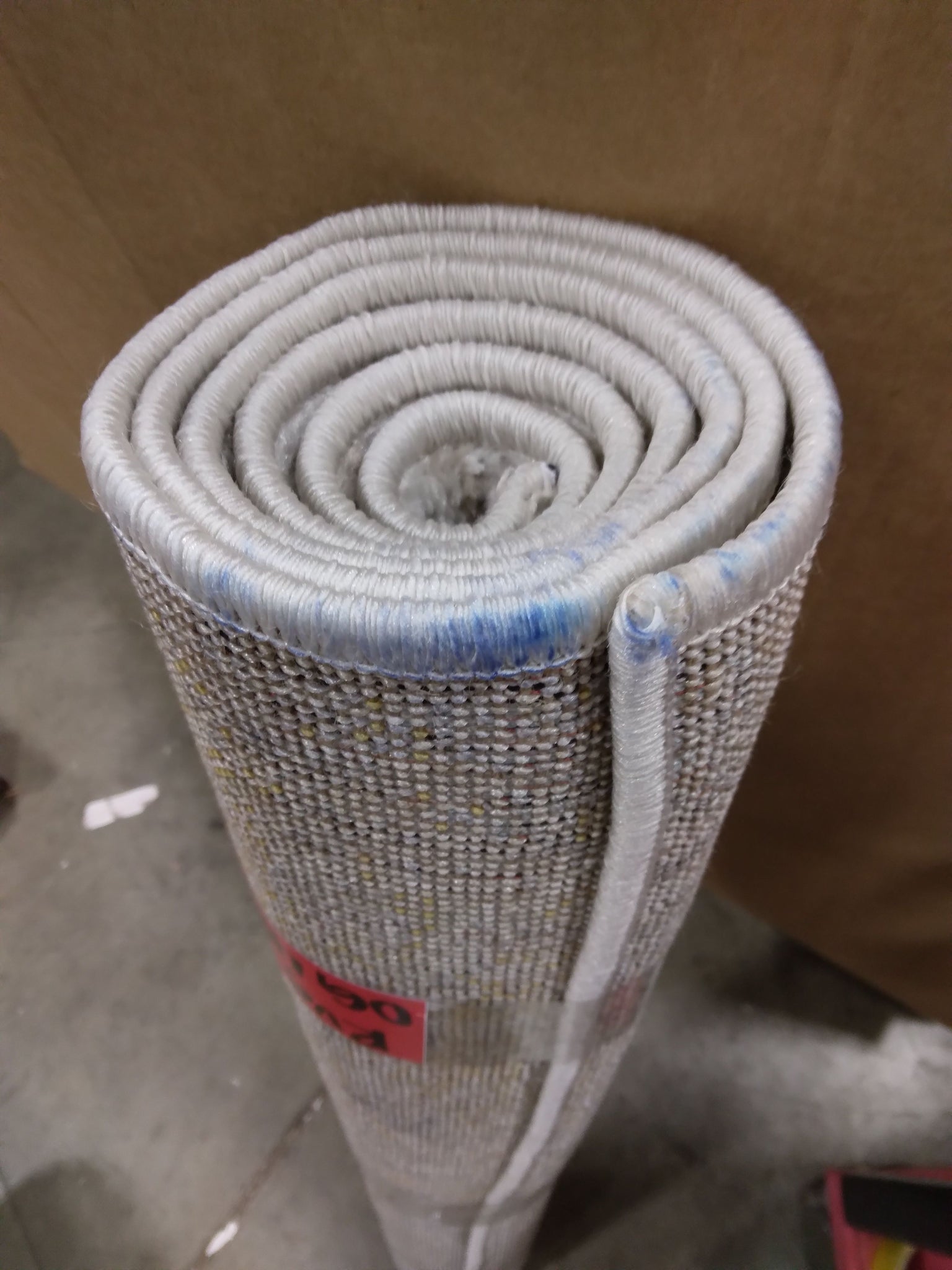 Open Box, The color is cream/gold, Size: 3' x 5', Slight blue stain on the edge of the rug. See for photo.