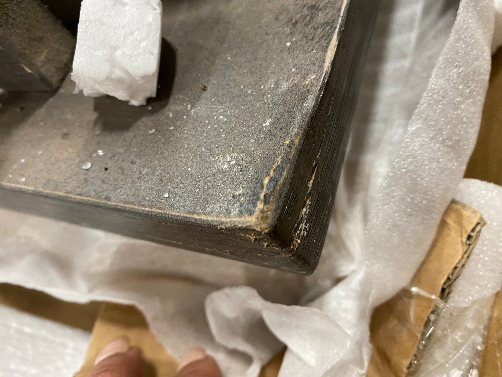 Note: Minor crush on corner edge of table that needs some wood glue and clamp, see pic from the bottom of the table.