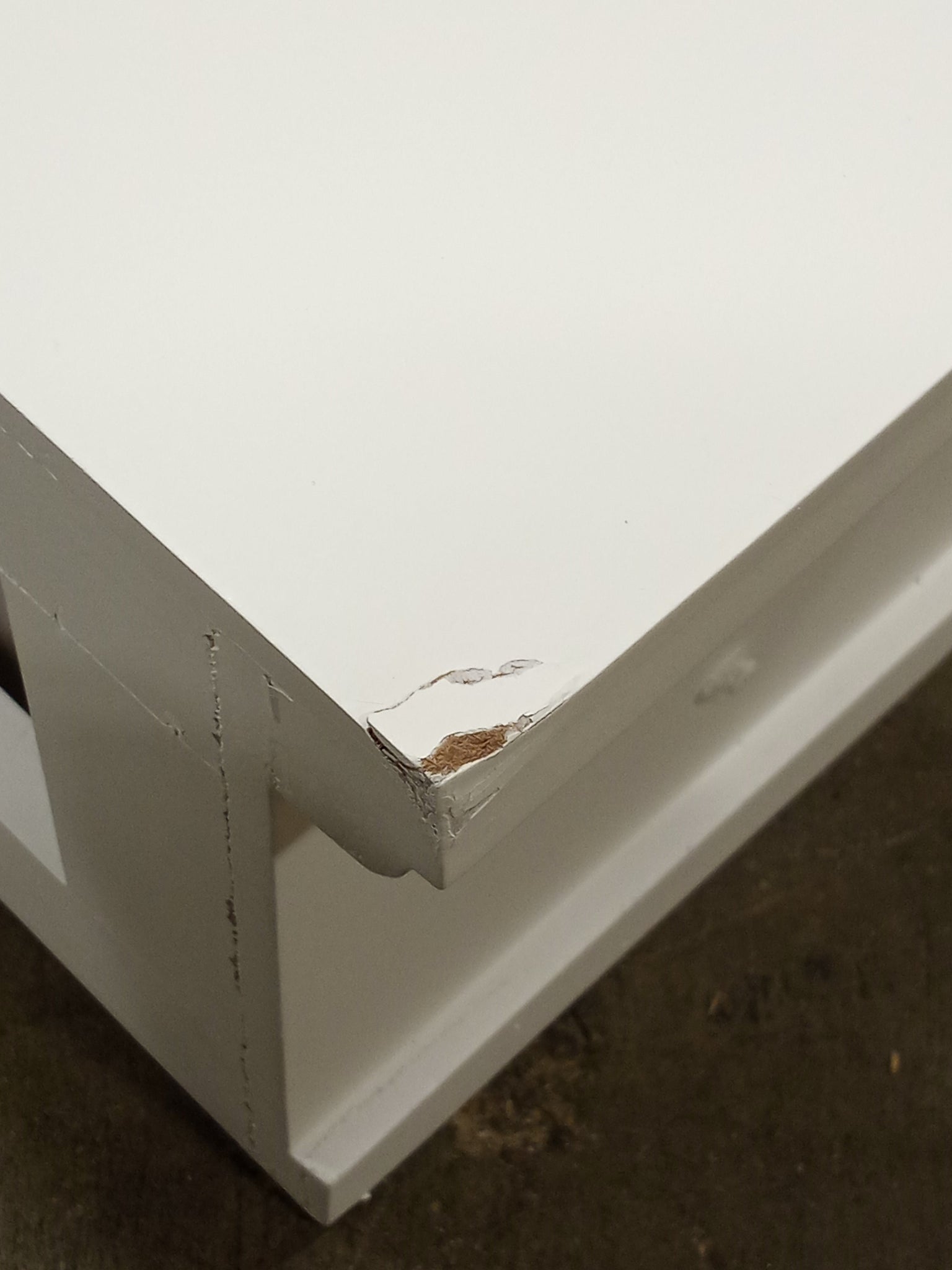 Note: Loose/missing hardware. The back left corner is chipped and both legs have chips on the bottom. See pictures for more details.