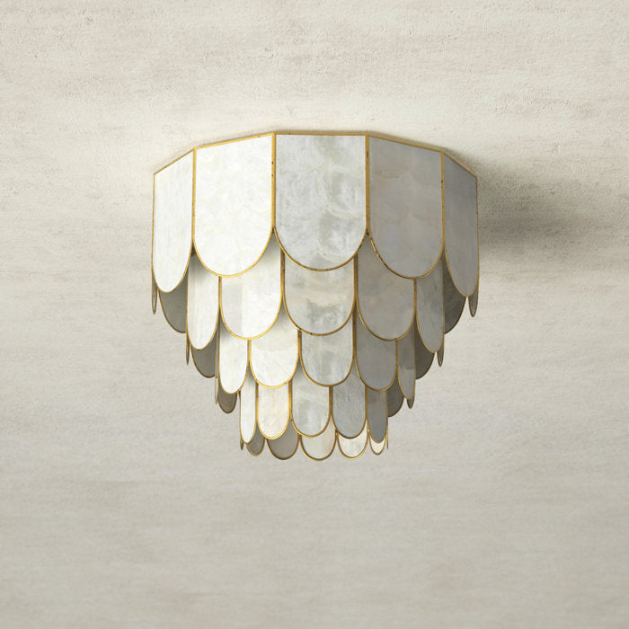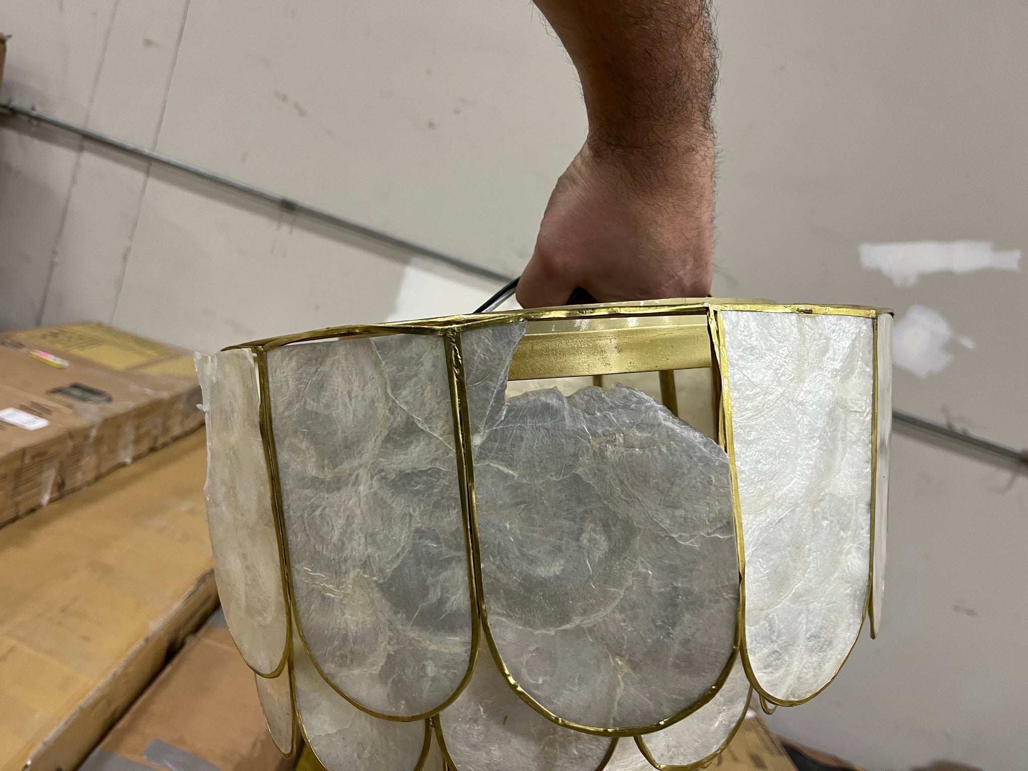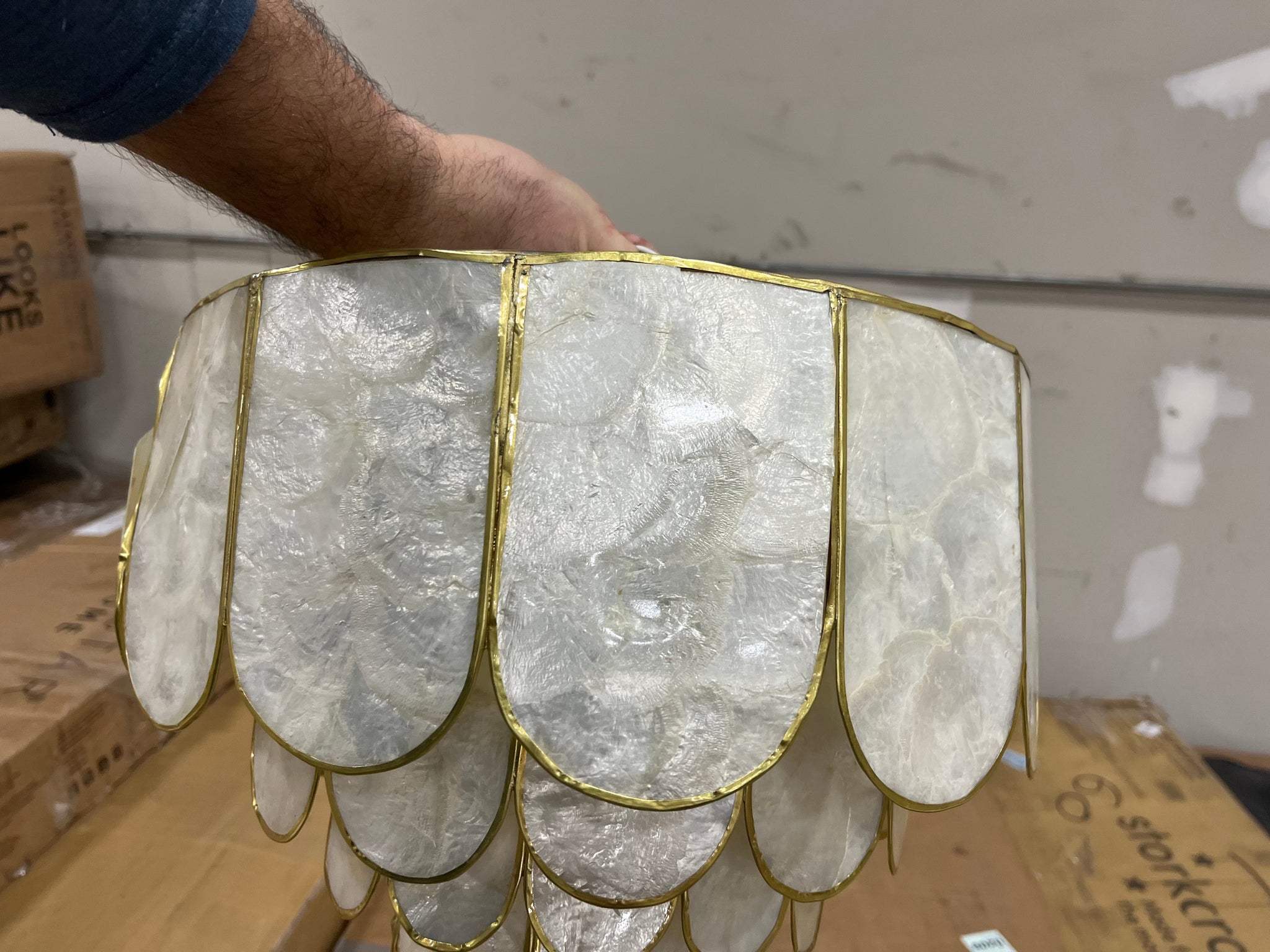 Note: Item is comprised of beautiful capiz which is very delicate oyster and some are broken on one side. Can be hidden if close to a wall or in a small space. See photos for details.