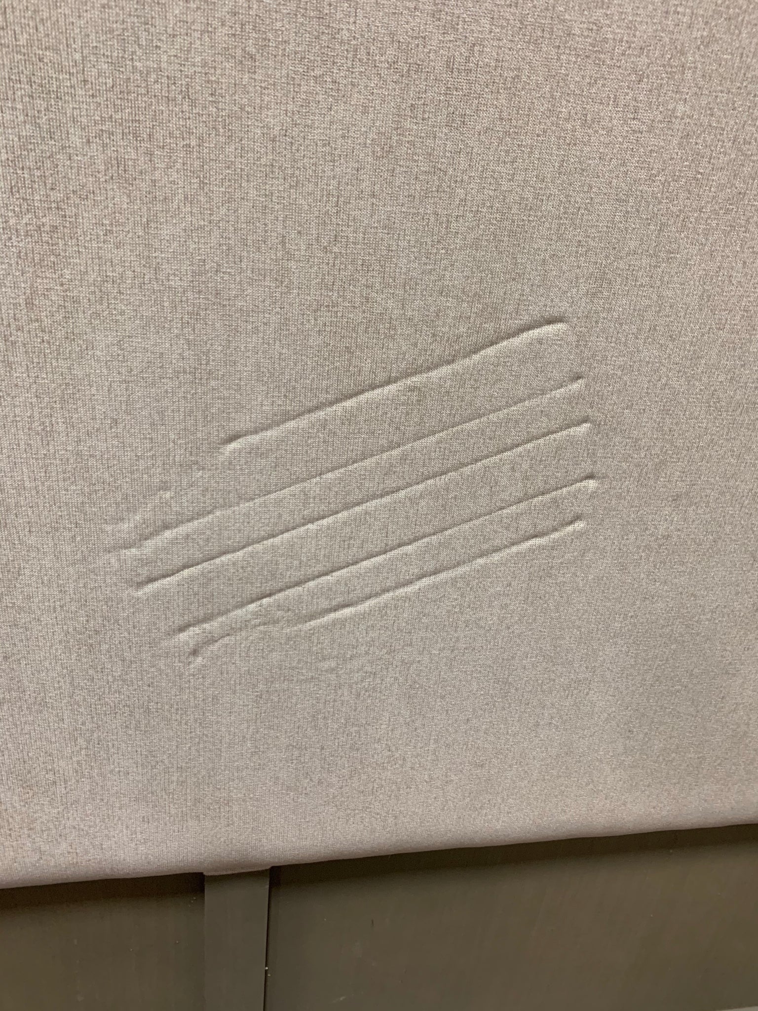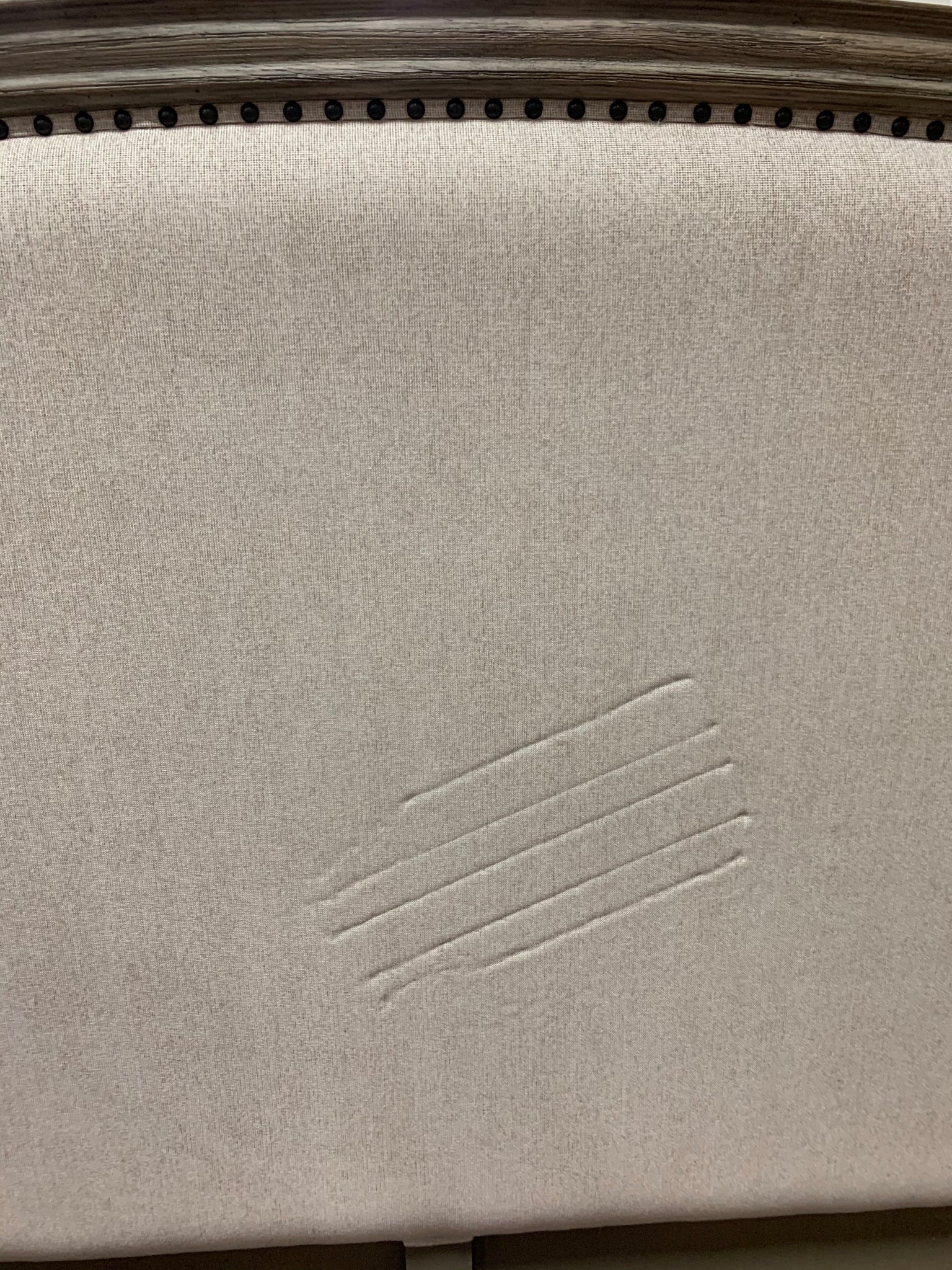 King size headboard ONLY. Item has a permanent indentation in the upholstery (see photos for reference) but is otherwise in great condition.