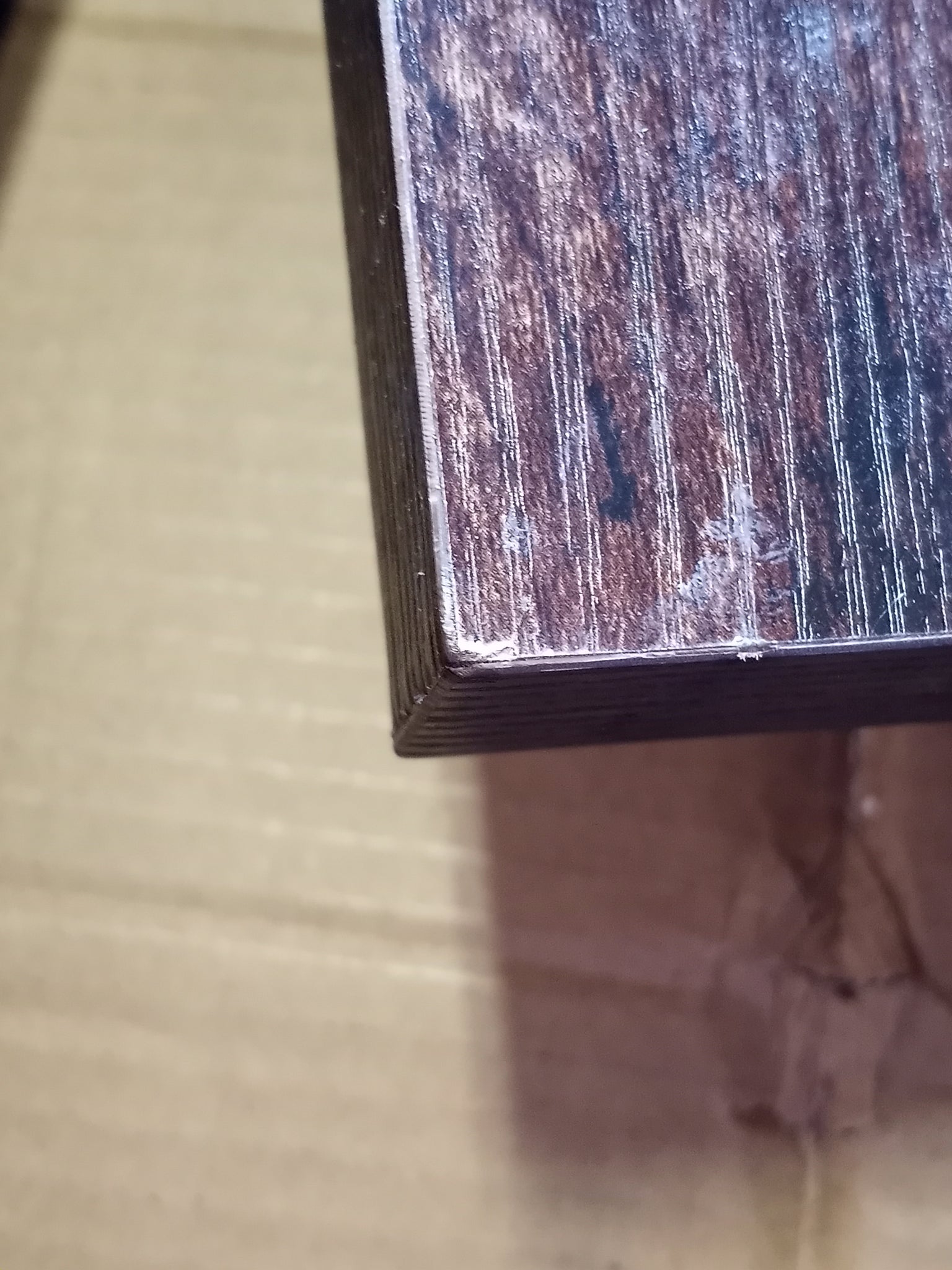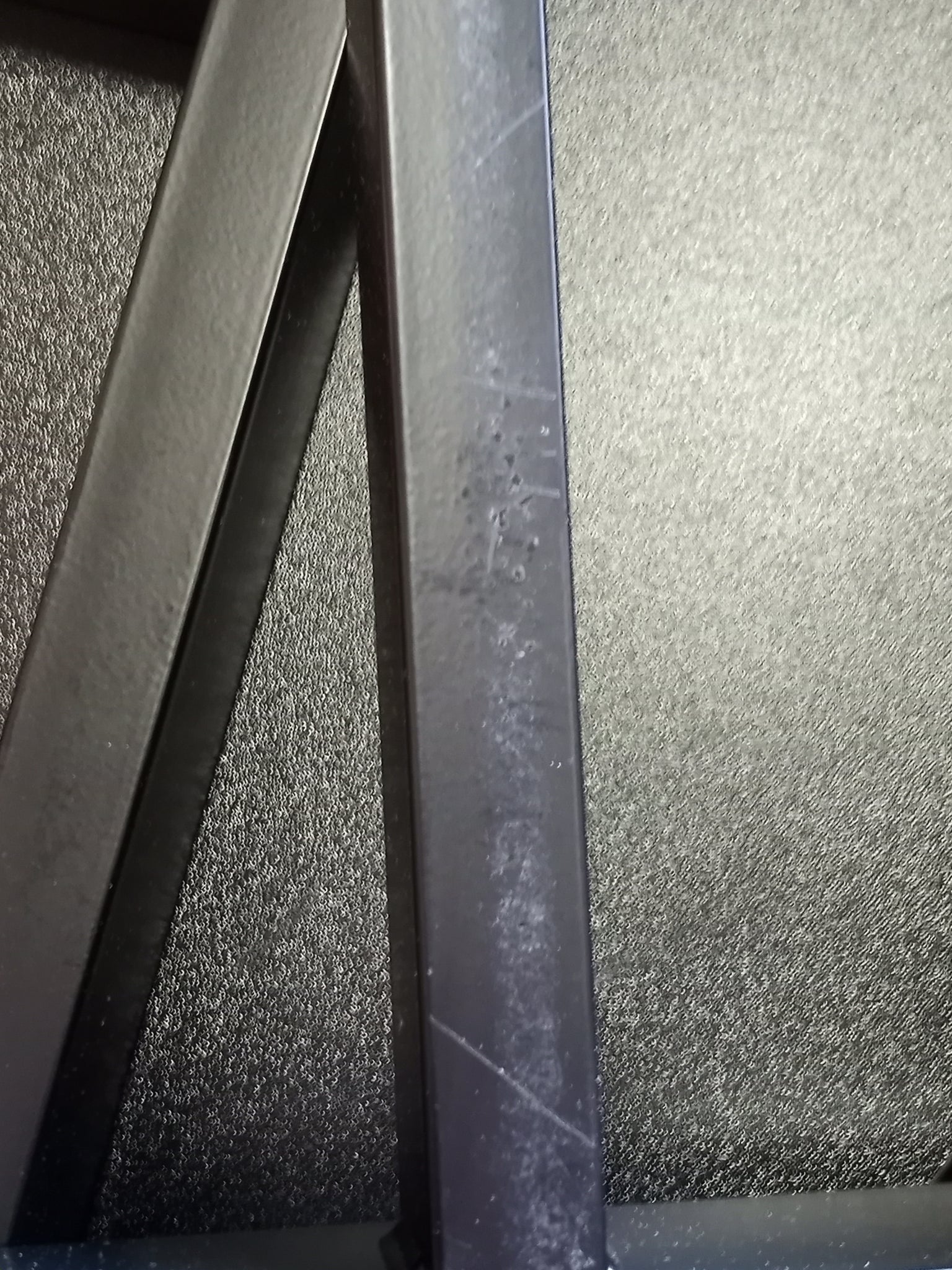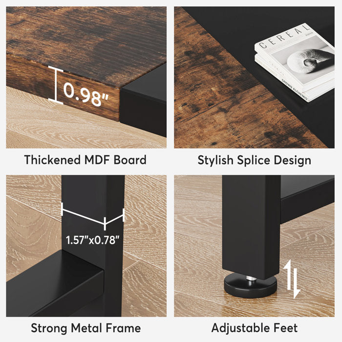 Note: SOLD AS IS. Instructions not included hardware is not in the original packaging so possibly missing some. Has scratches/scuffs throughout brown and black table top has some chipping on the edges. There are broke dowel pins on the top. See pictures for more details.