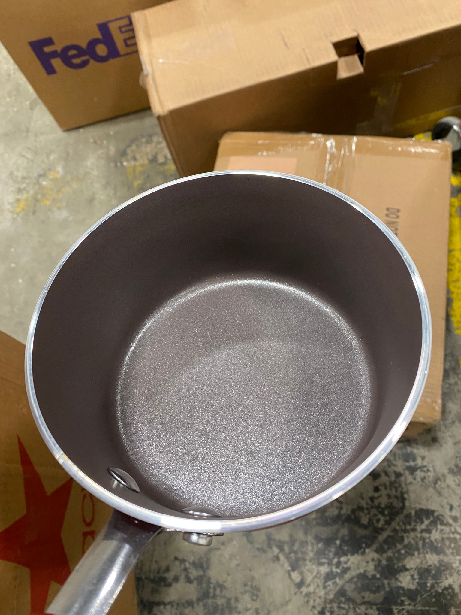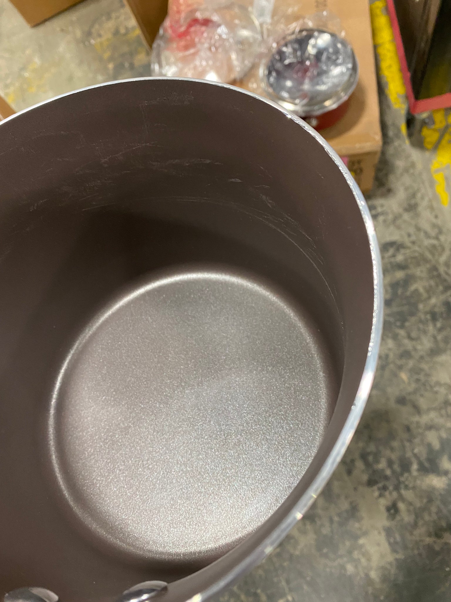 Note: AS IS Condition: Some pots have dinged/scuffed edges. Ding on saucepan lid. Spatula missing. See photos. Shows signs of attempted use.