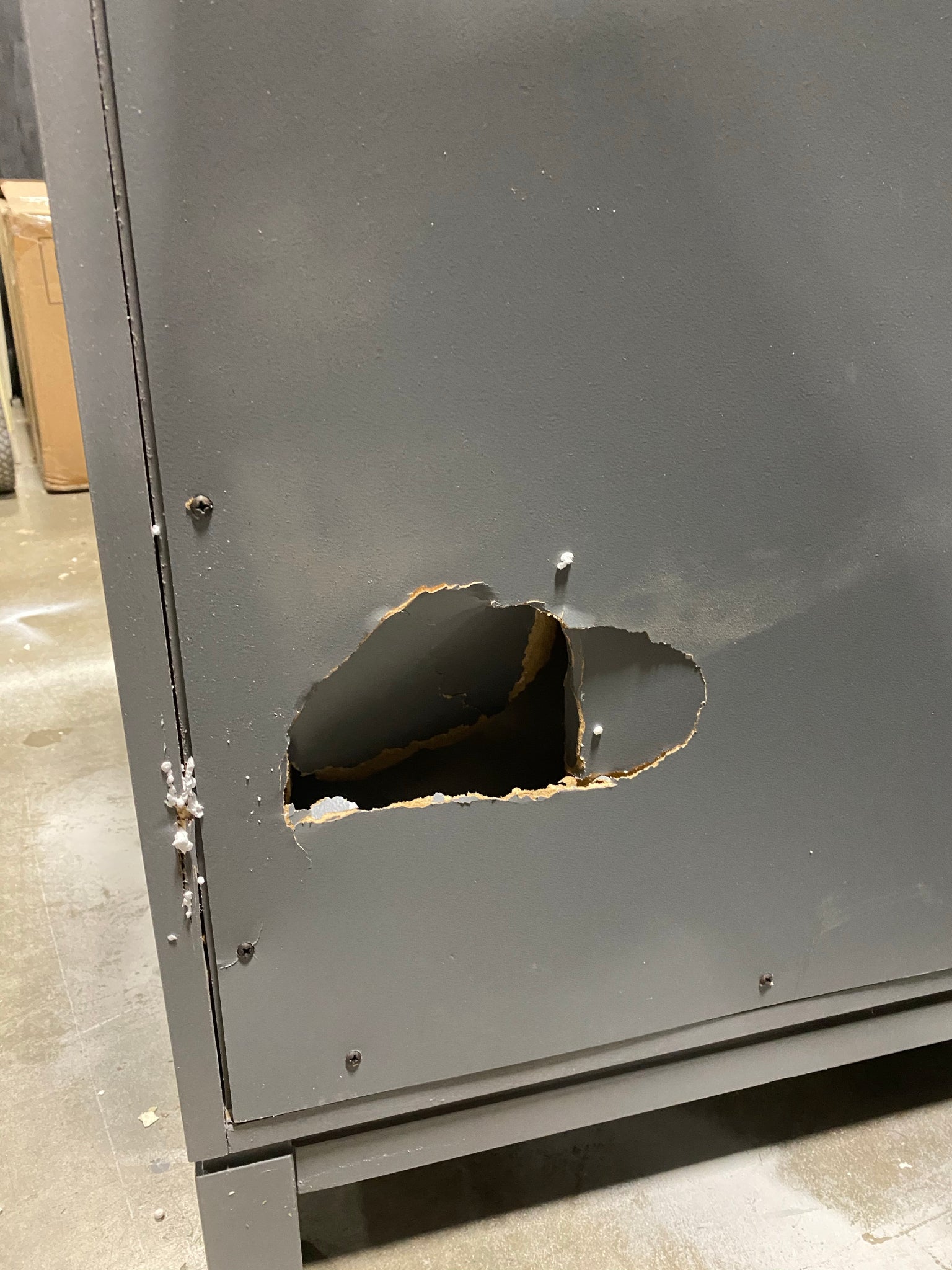 Please Note: Item has very slight cosmetic streaking on top of dresser; has a hole on back side of dresser due to shipment. See photos. Item in otherwise great condition.