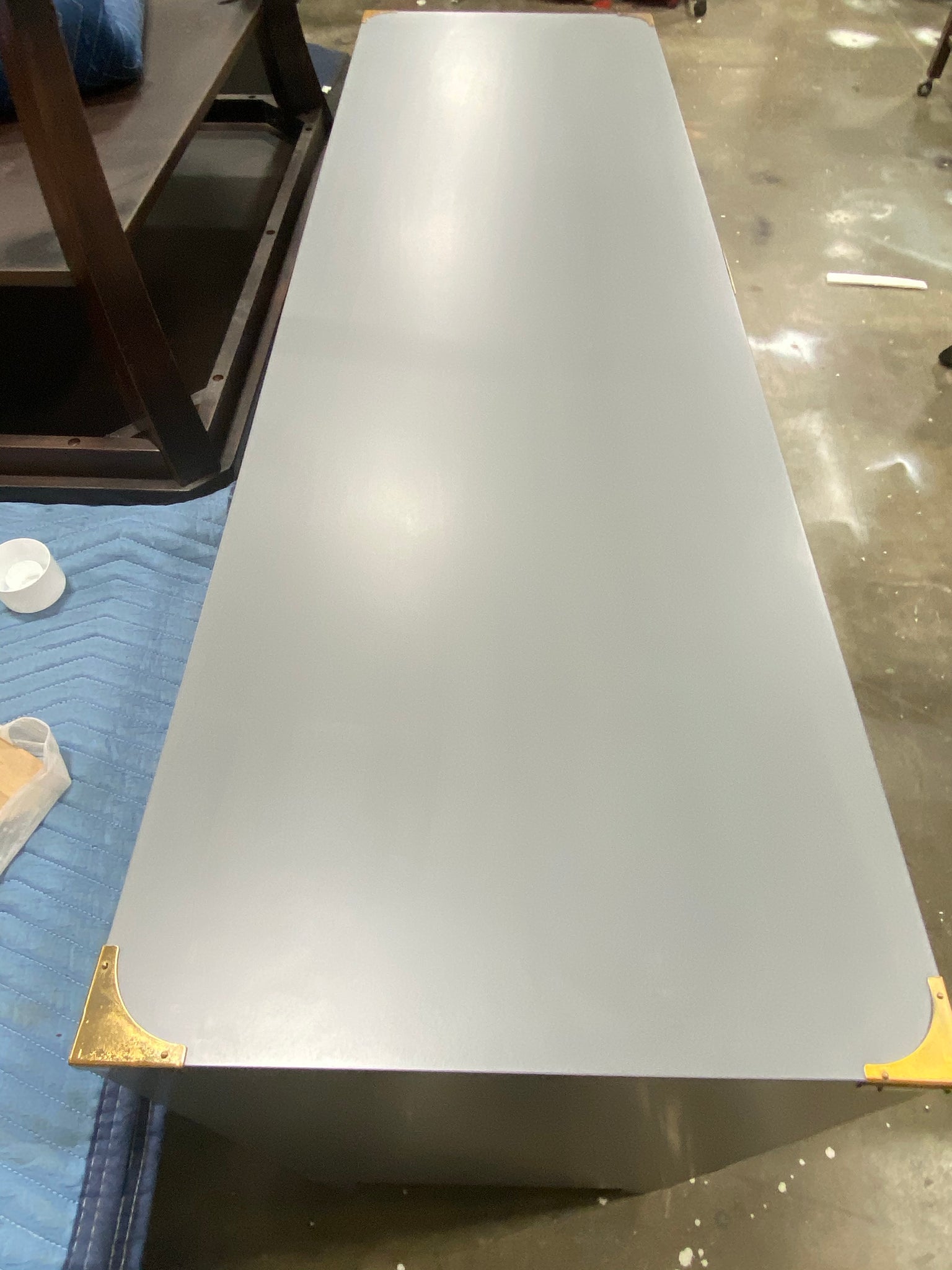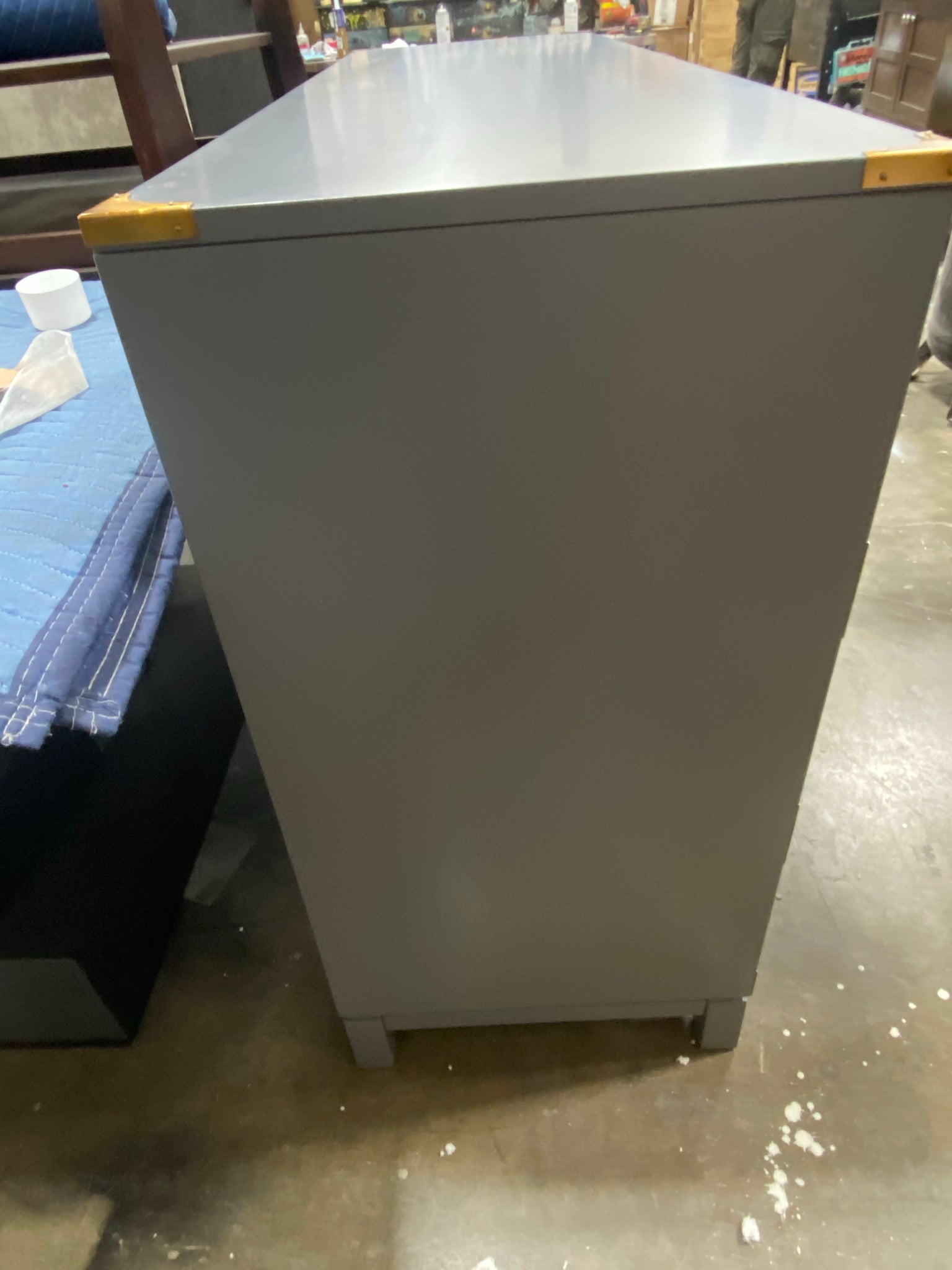 6 drawer double dresser in Gray with Gold accents. Assembled.