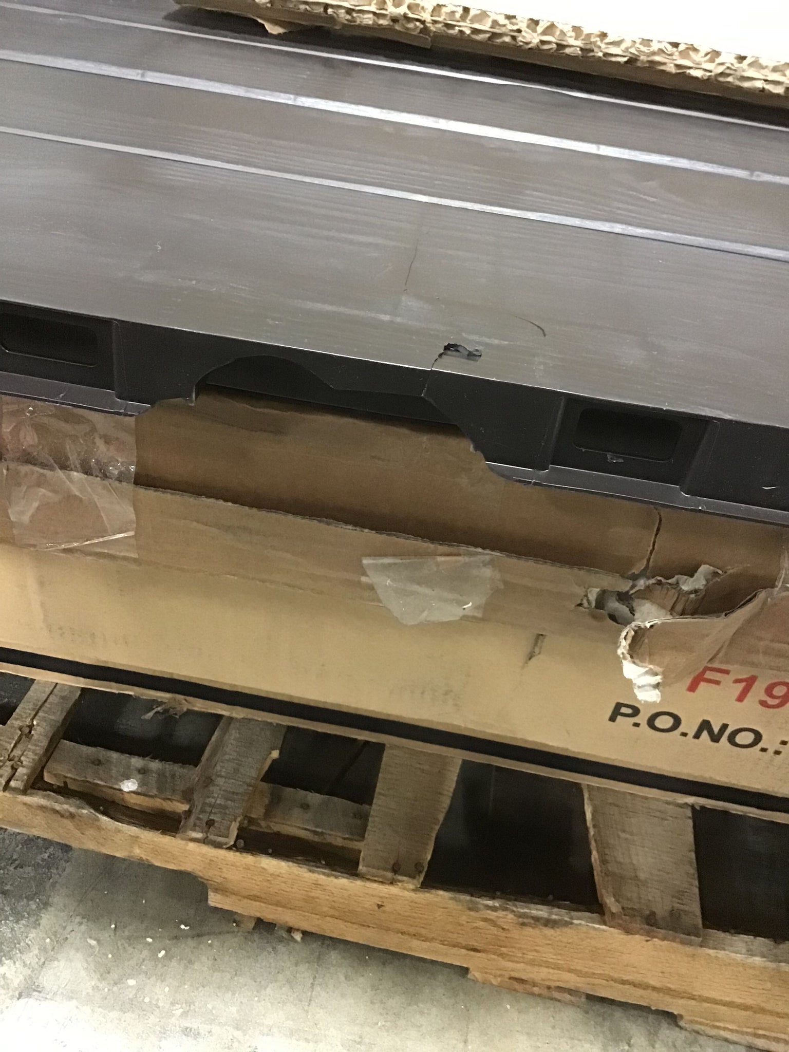 Open Box, The color is dark brown, Size: 150 gallon, Slight crack in one piece. See photo.