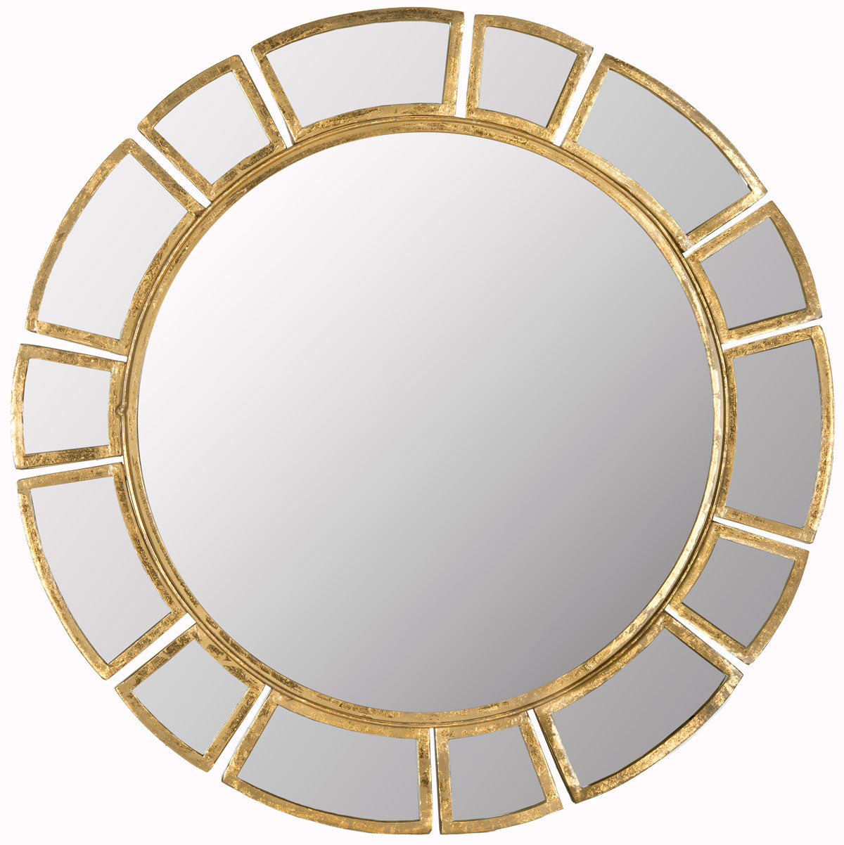 Framed mirror crafted from iron in a an antique gold finish. Hanger mounts comes pre-attached for easy hanging. No assembly required. Item in original packaging.