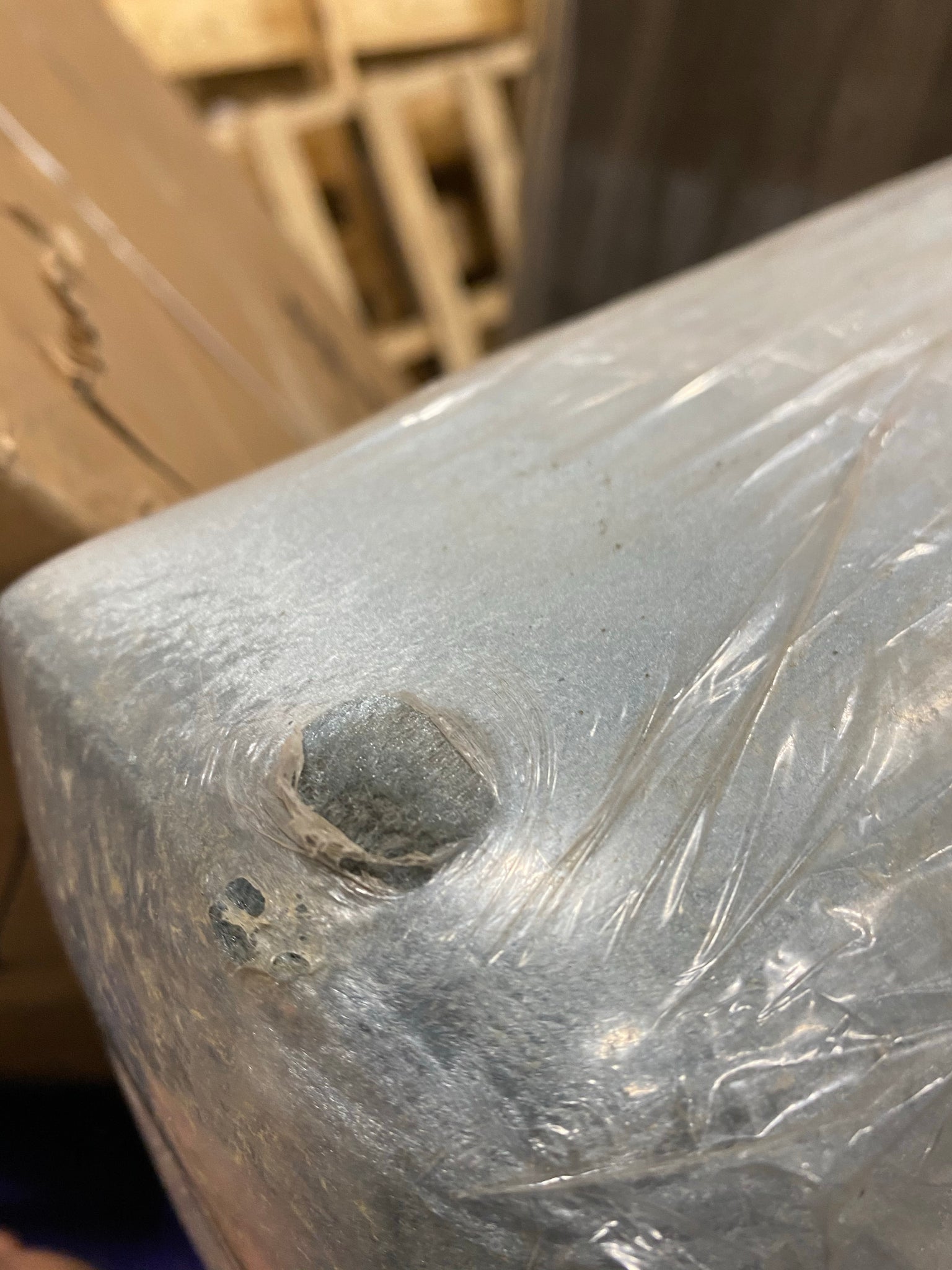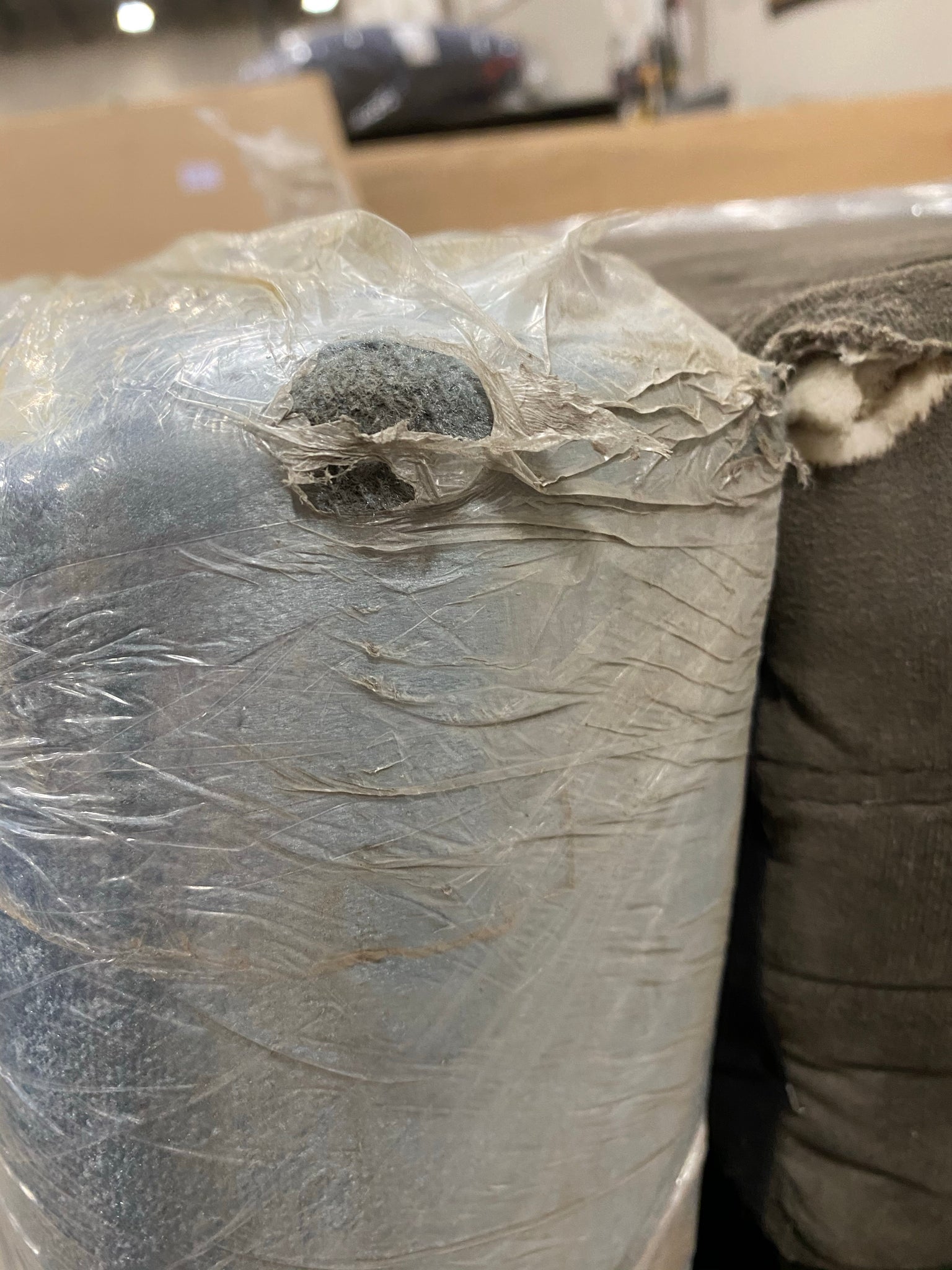 Please Note: Item does have some spotting in spots were the plastic is open. Spot clean recommended. Small imperfection in the velvet in the middle on headboard. See photos. Item appears in otherwise good condition. Use with universal bed frame.