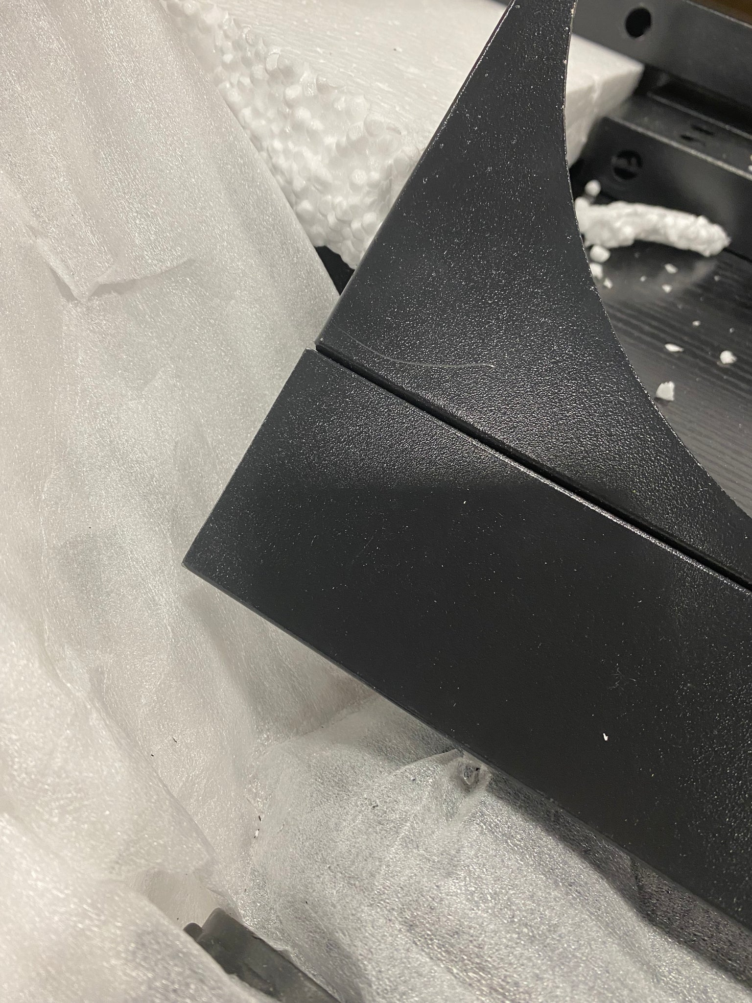 Note: Slight scuffs and scratches on the black frame legs. See photos. Missing paper instructions.