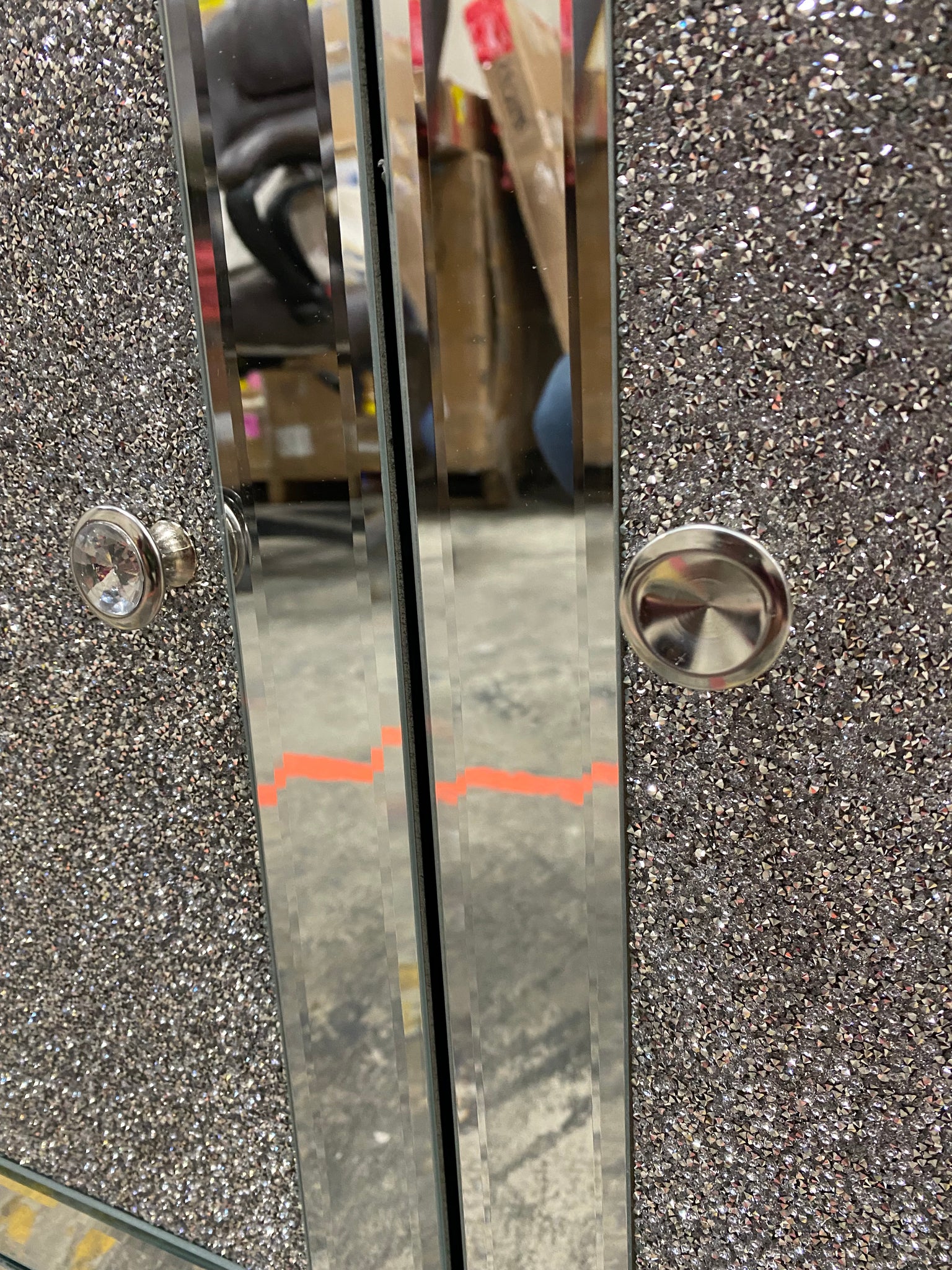 Note: The item gemstone has fallen out of the door handle. See photo. The loose gem in the red bag in the drawer can easily be replaced. Item in otherwise good condition.