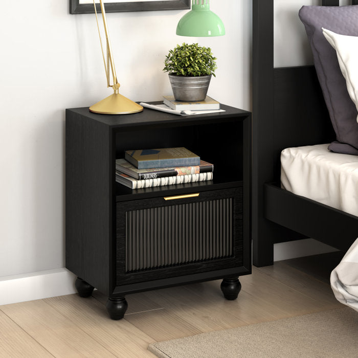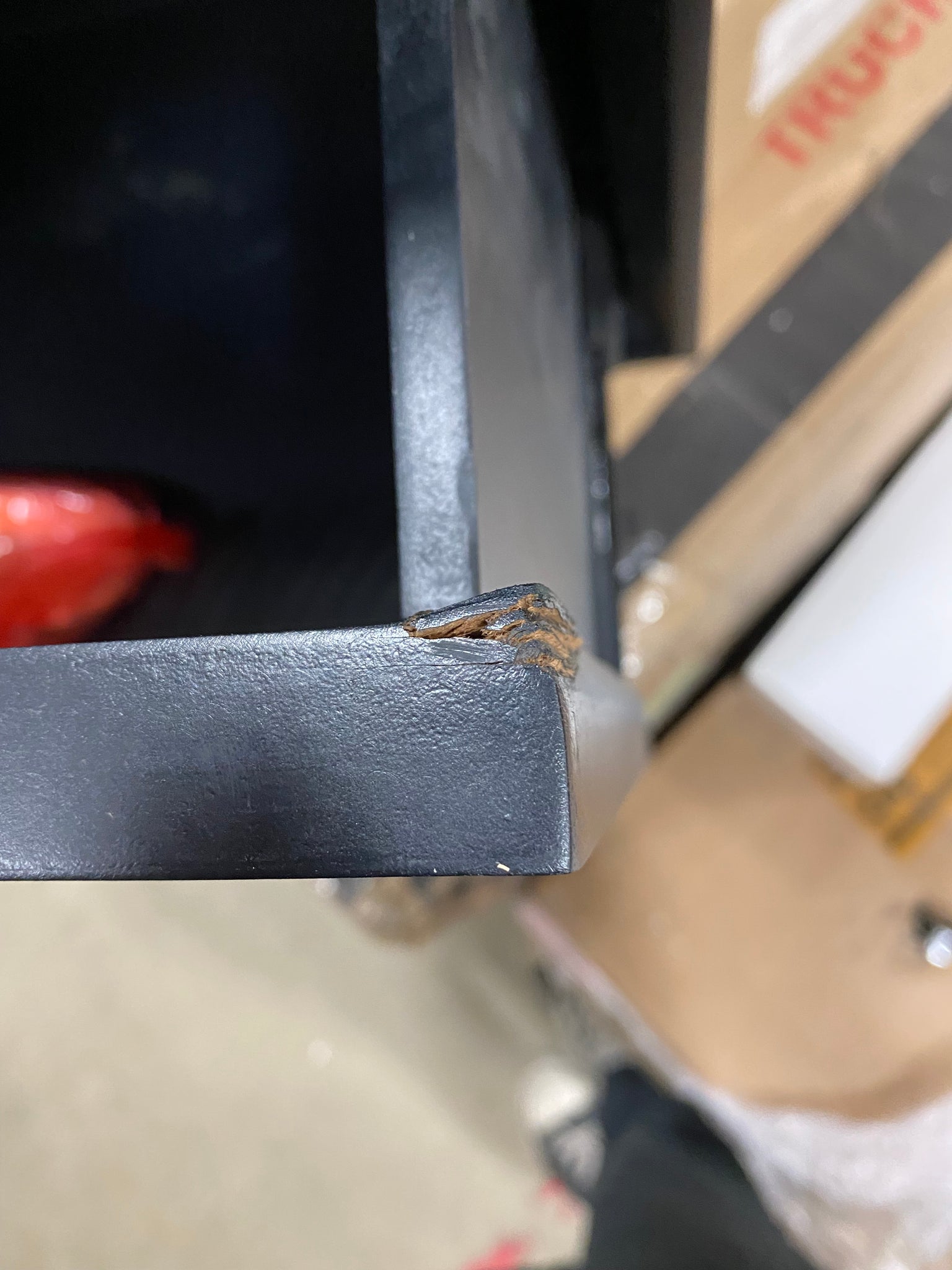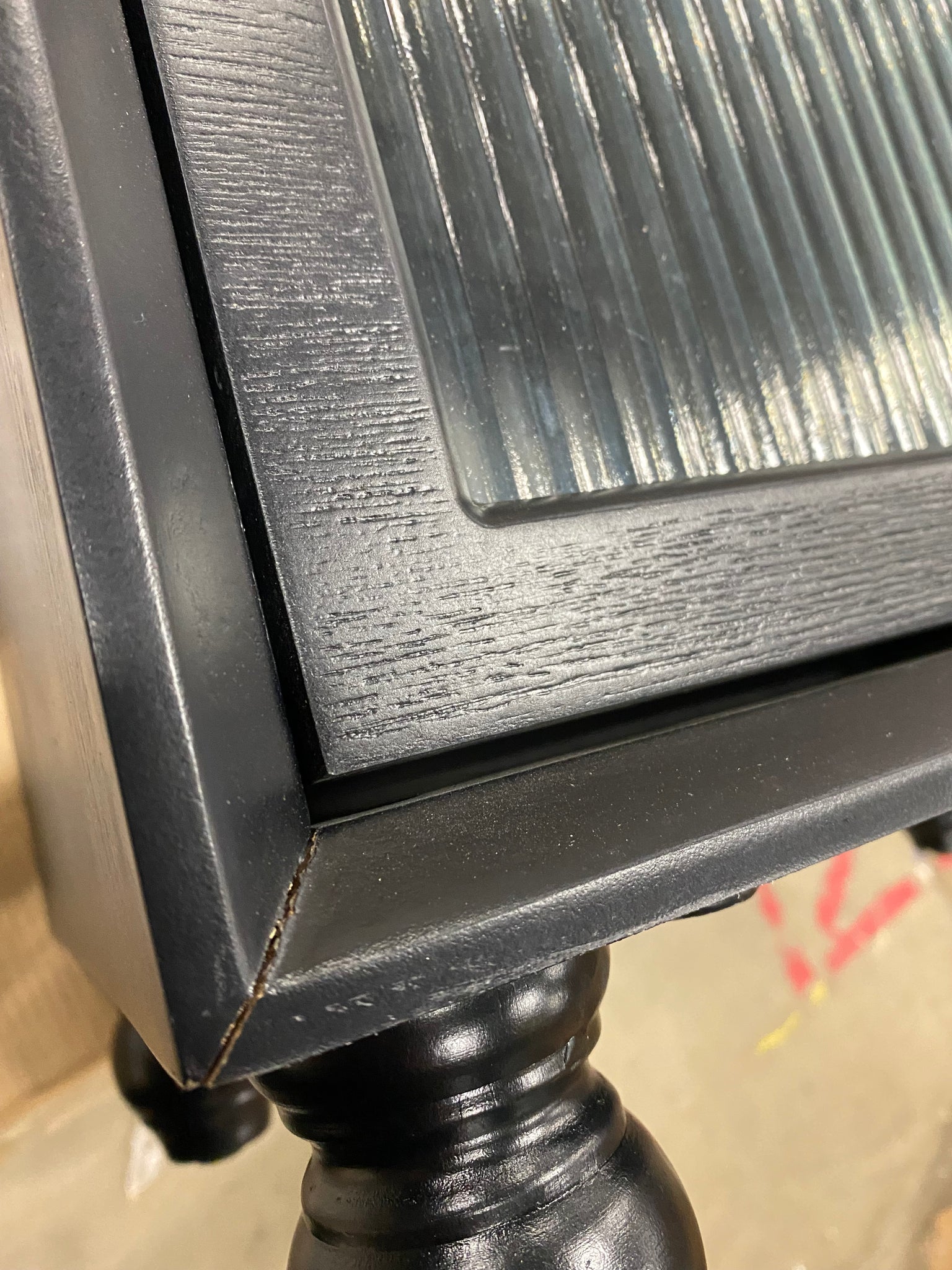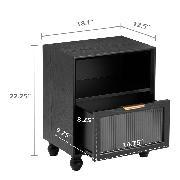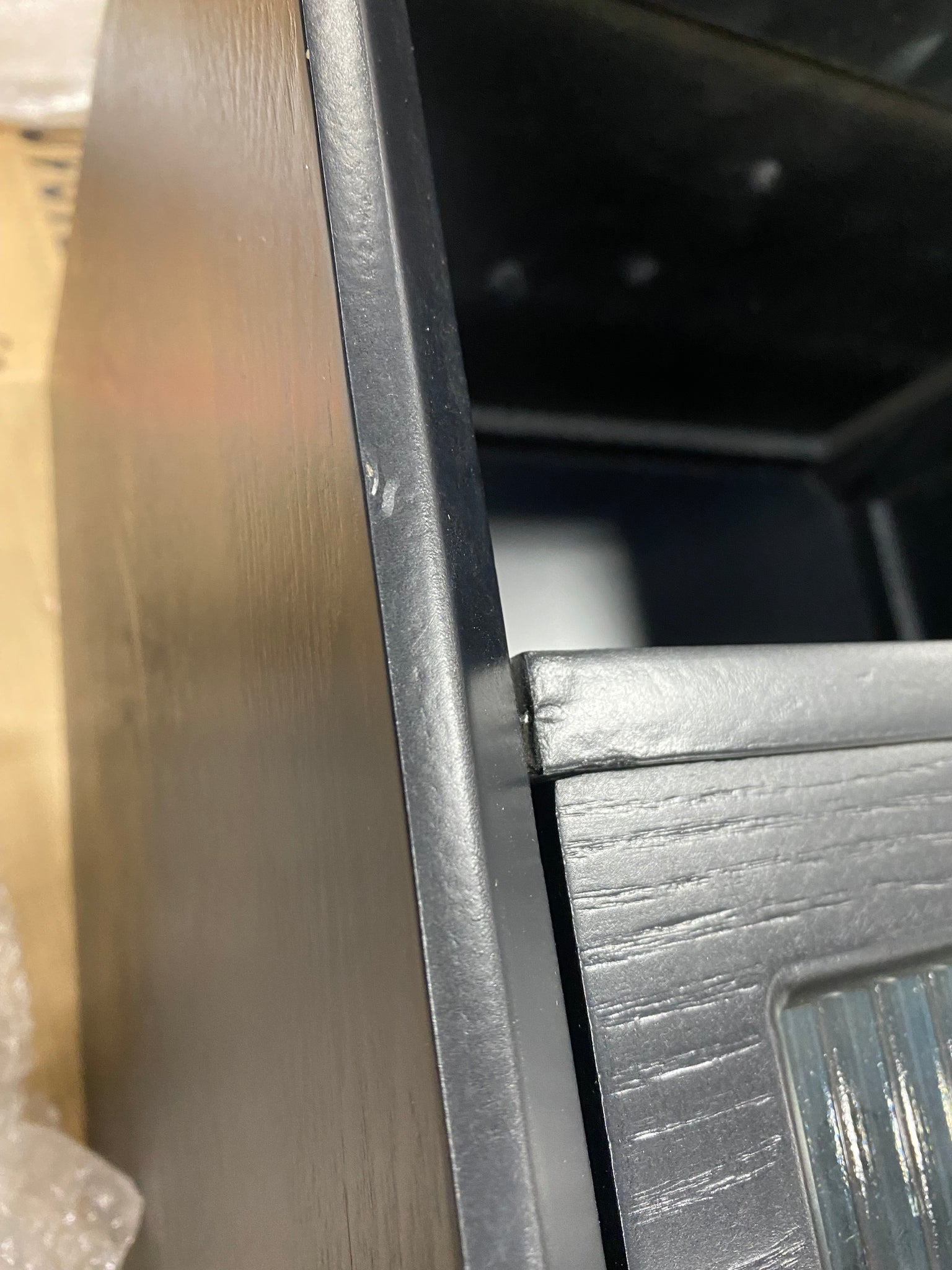 AS IS Condition: Damage on top corner of drawer. Slight dings on side/bottom edge/top corner on front of nightstand. Bottom corner edge slightly disjointed. See photos.