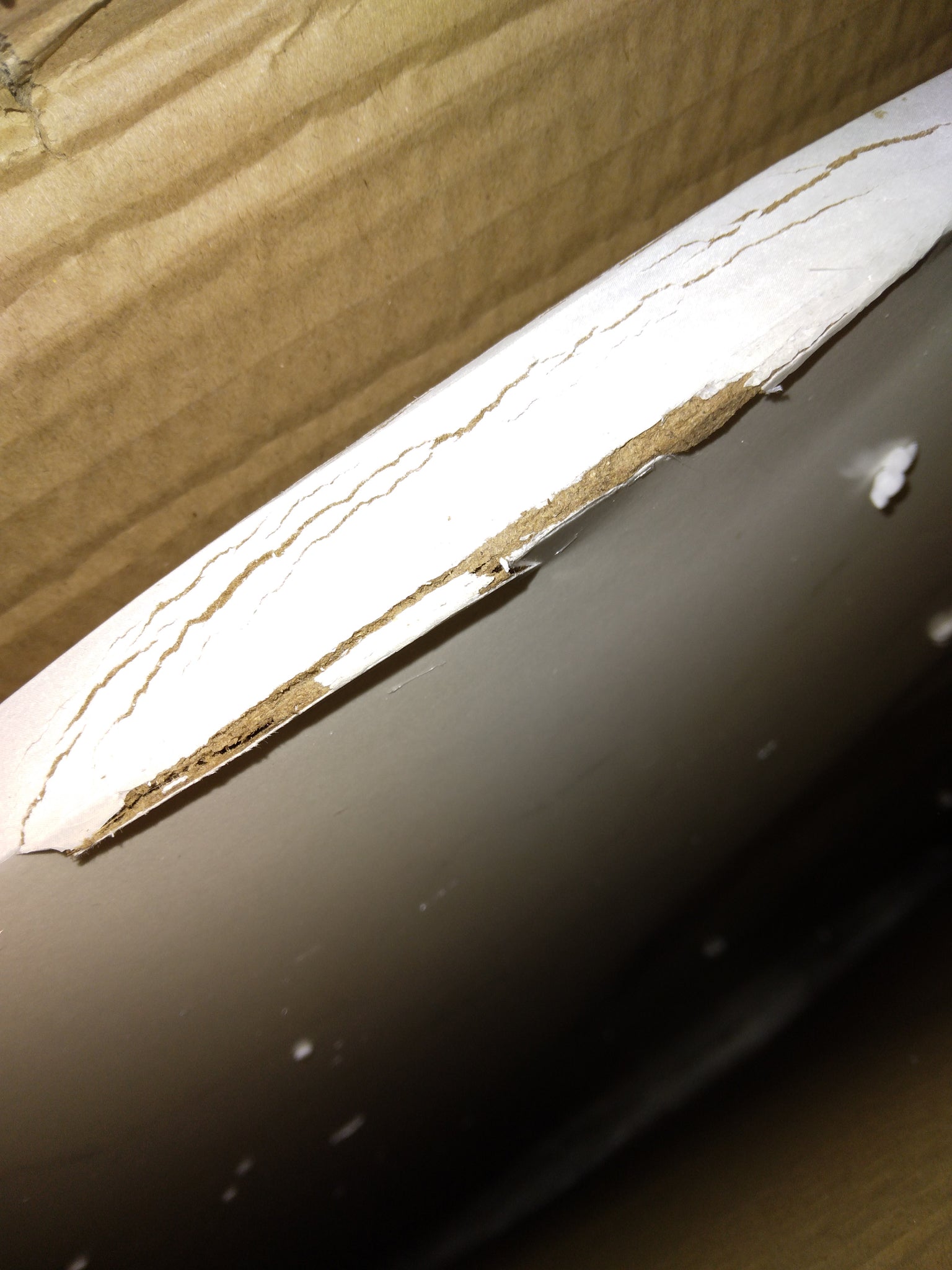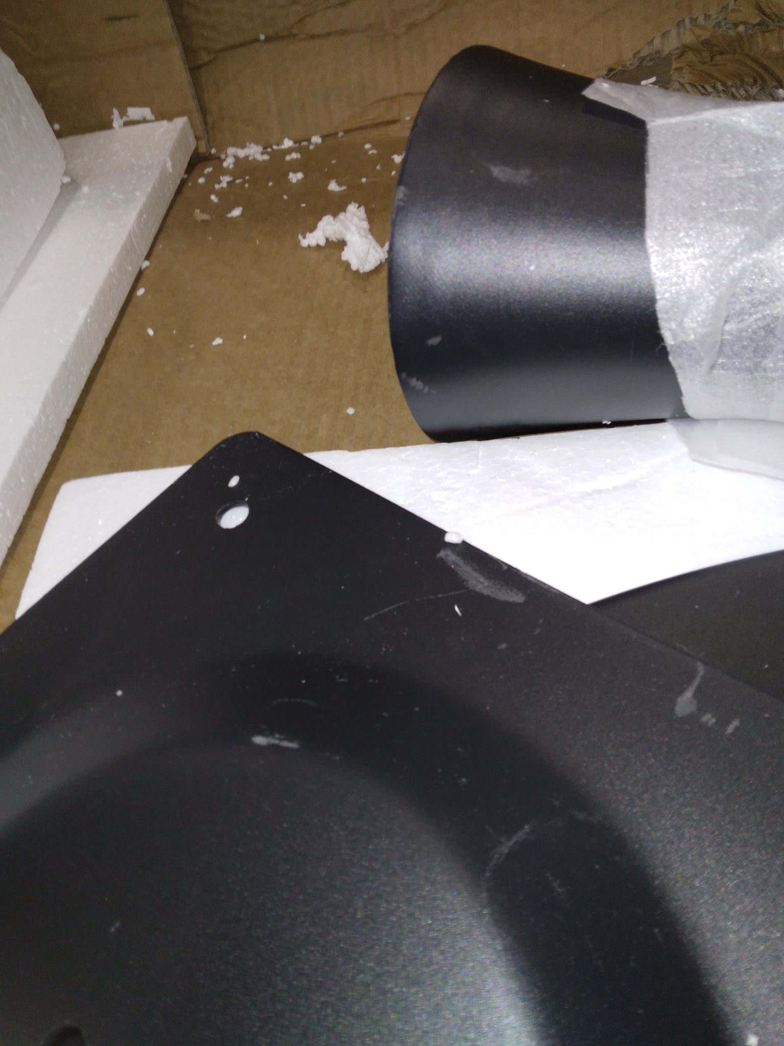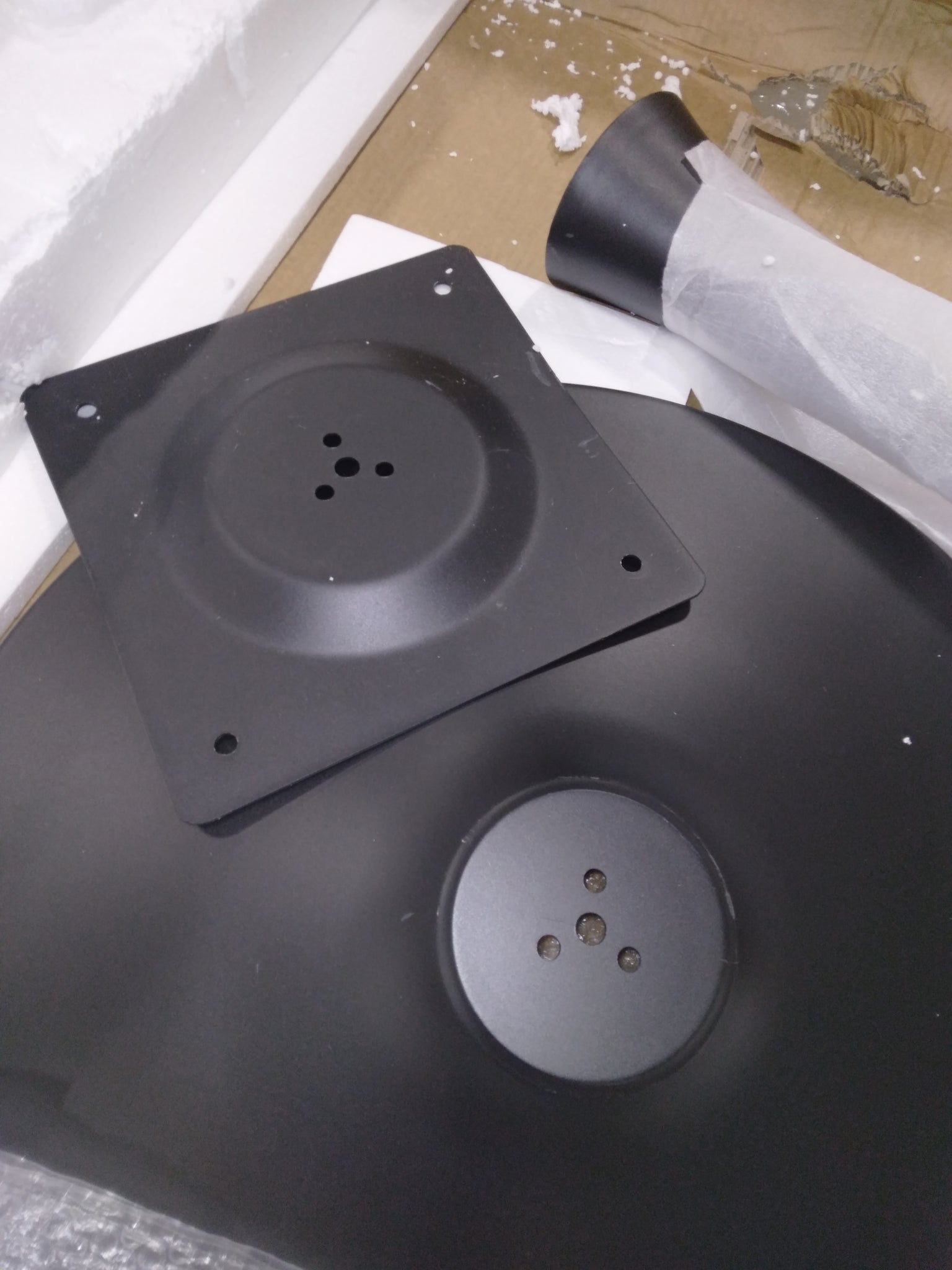 Note: AS IS: This table has a very large crack/ding on one side of the table top. There is also slight scratching on the black metal pieces. See DB for photos.