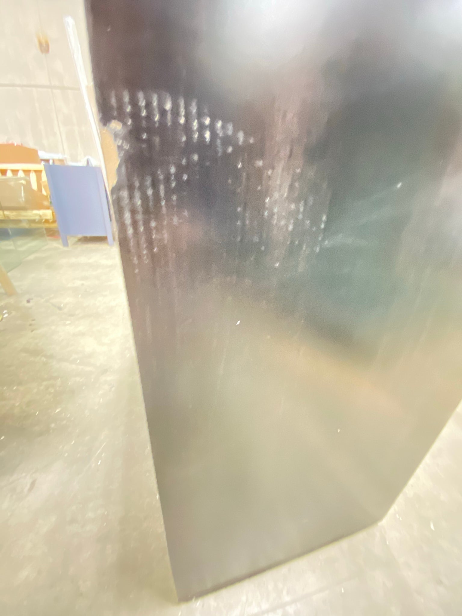Please Note: Item has some slight dings and scrapes on top/ corner edges due to shipment. Missing metal decor edging on left side corner. Back panel loose. Item in otherwise good condition. See photos. Final Sale. Item non returnable.