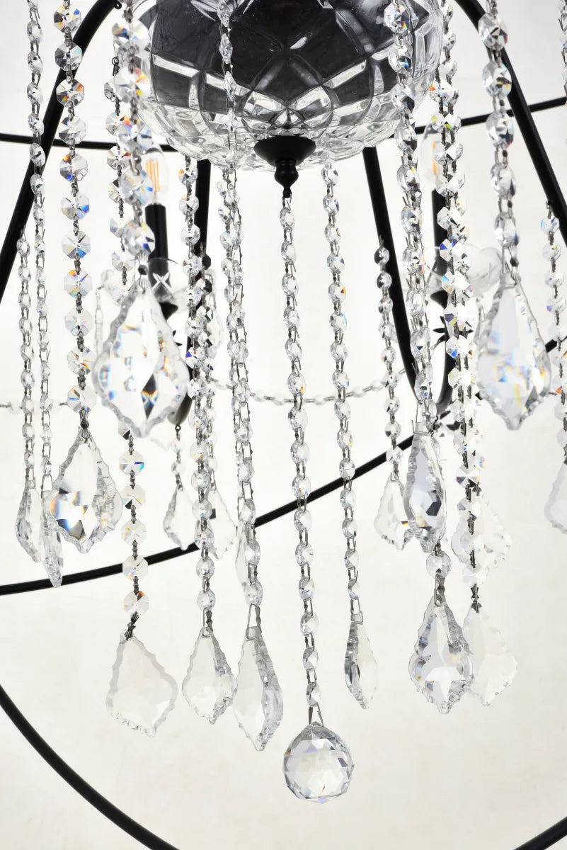 Open Box, The color is black, Size:24 light chandelier, Previously opened. There is one crystal candle holder dish that is NOT included.