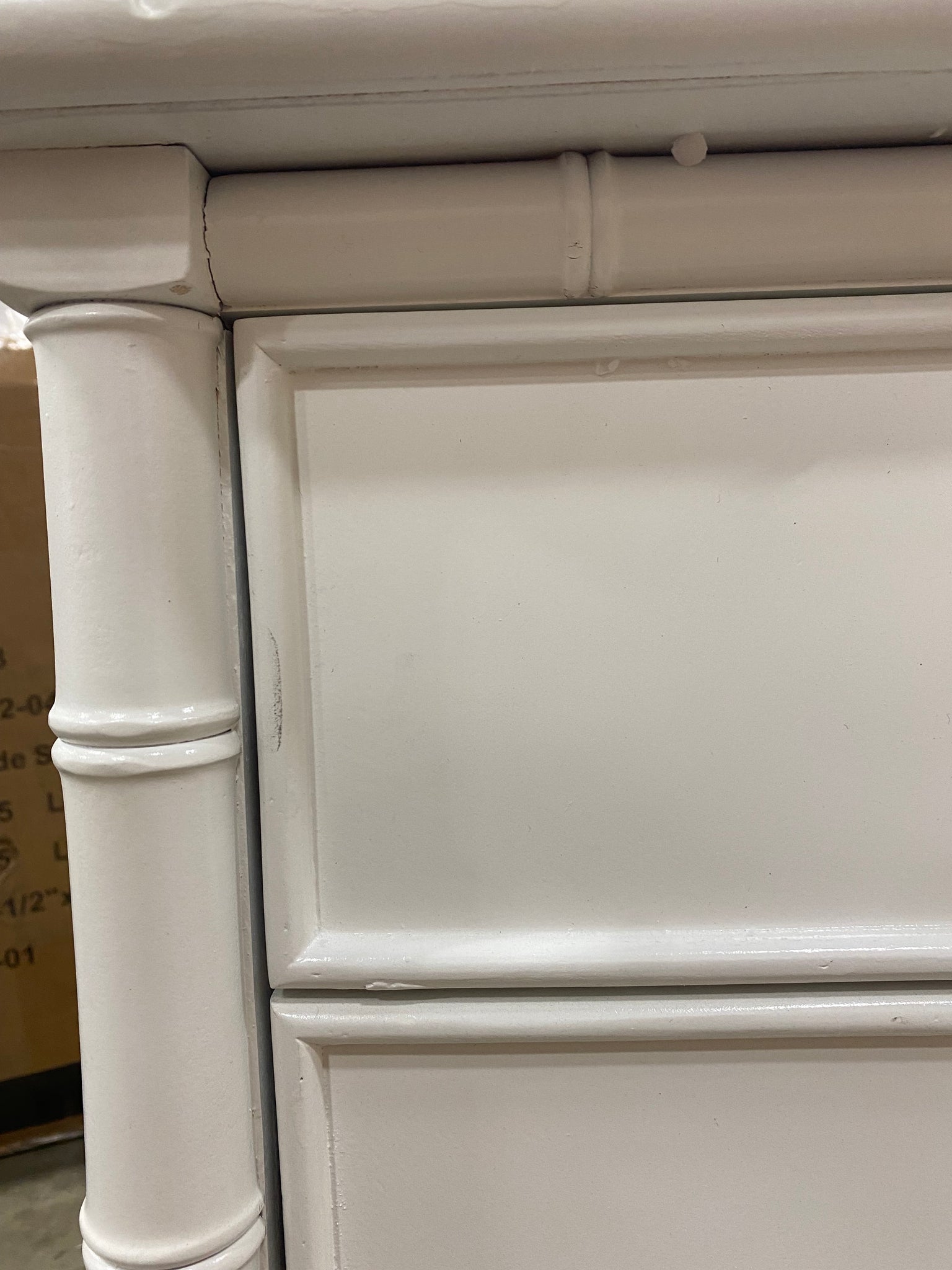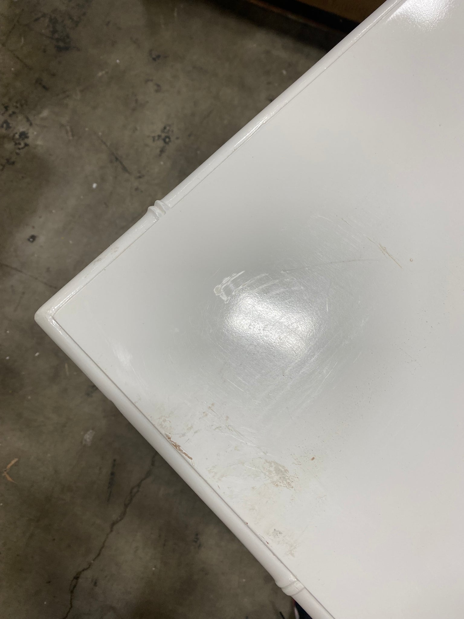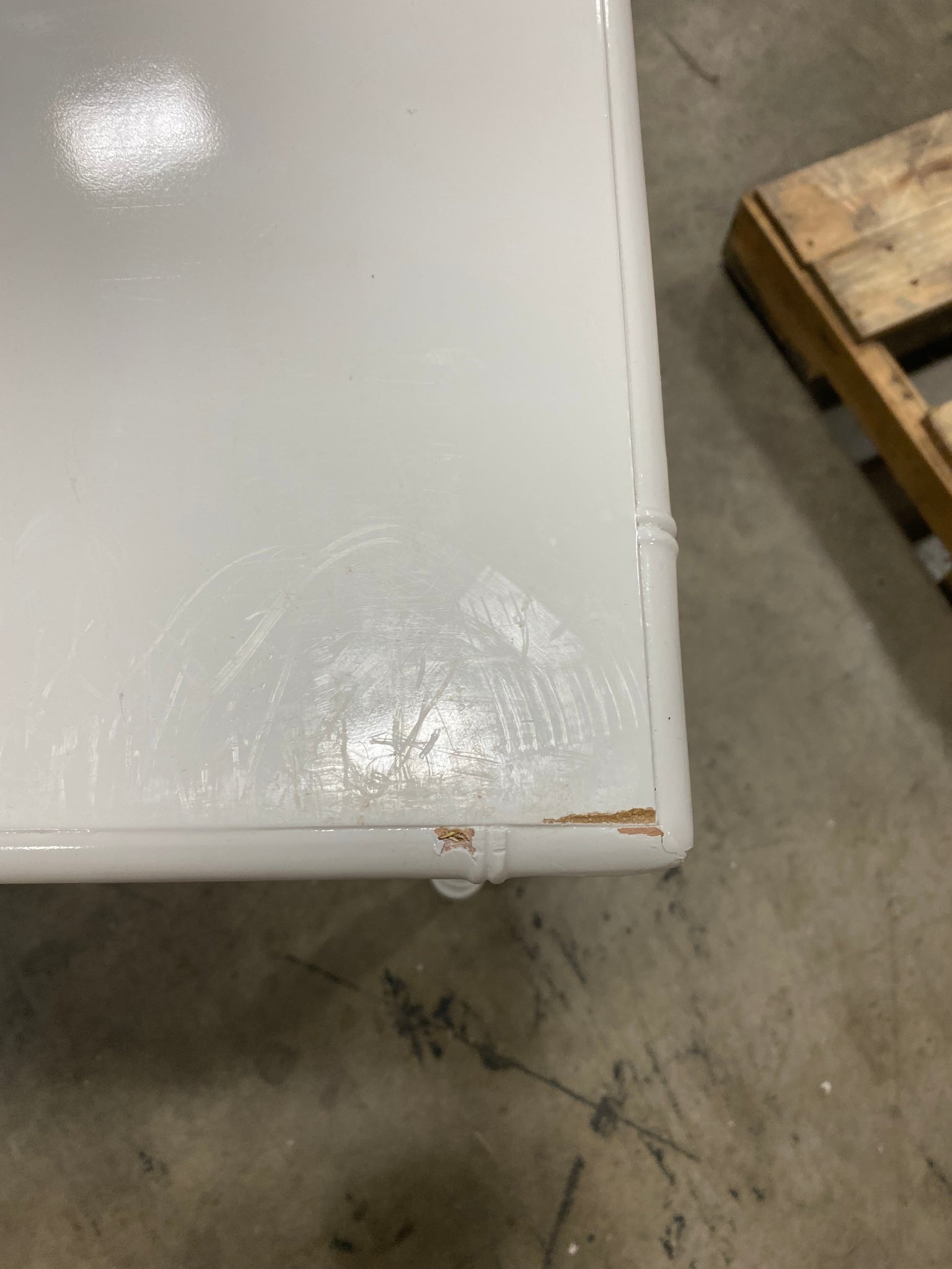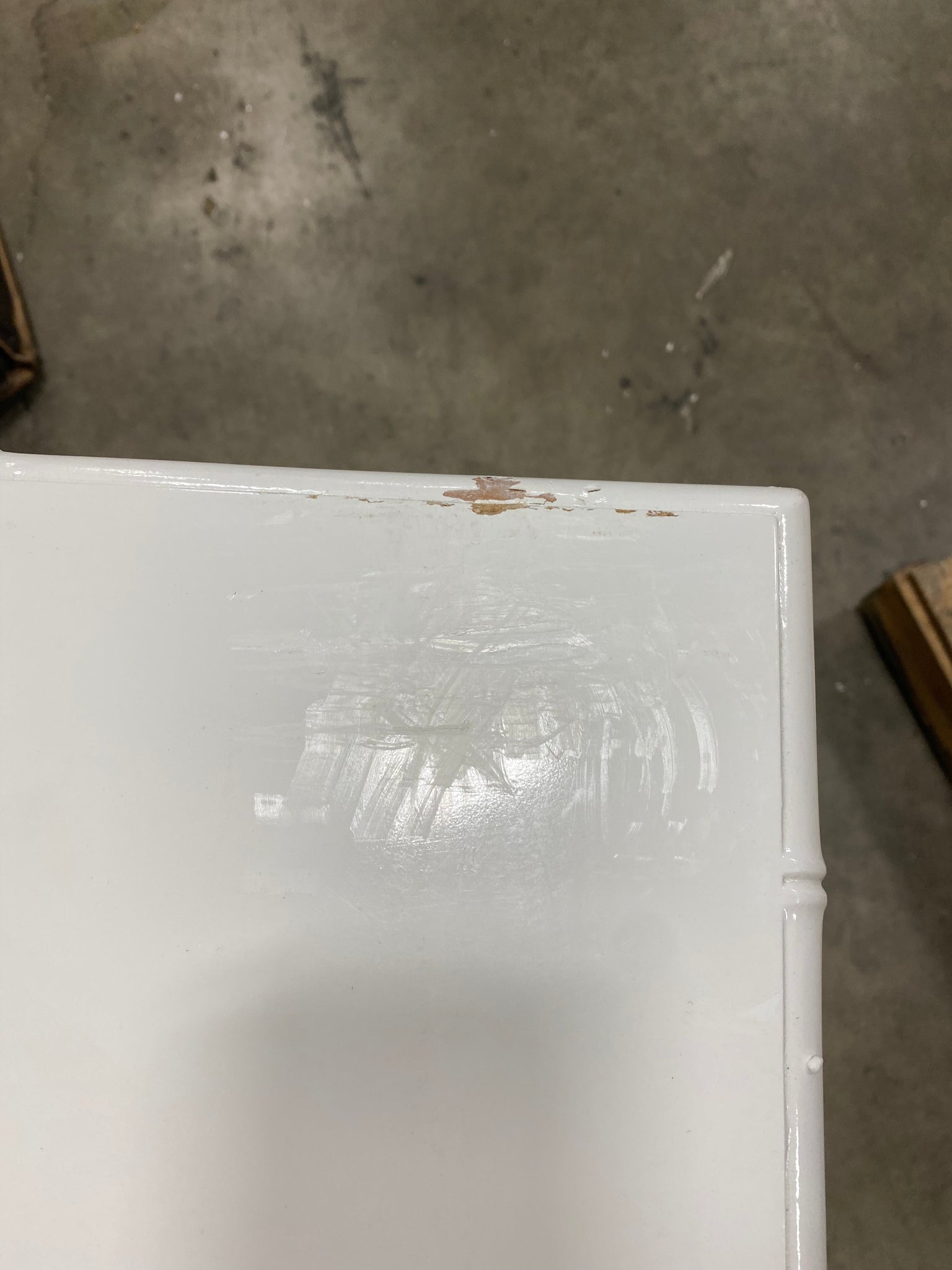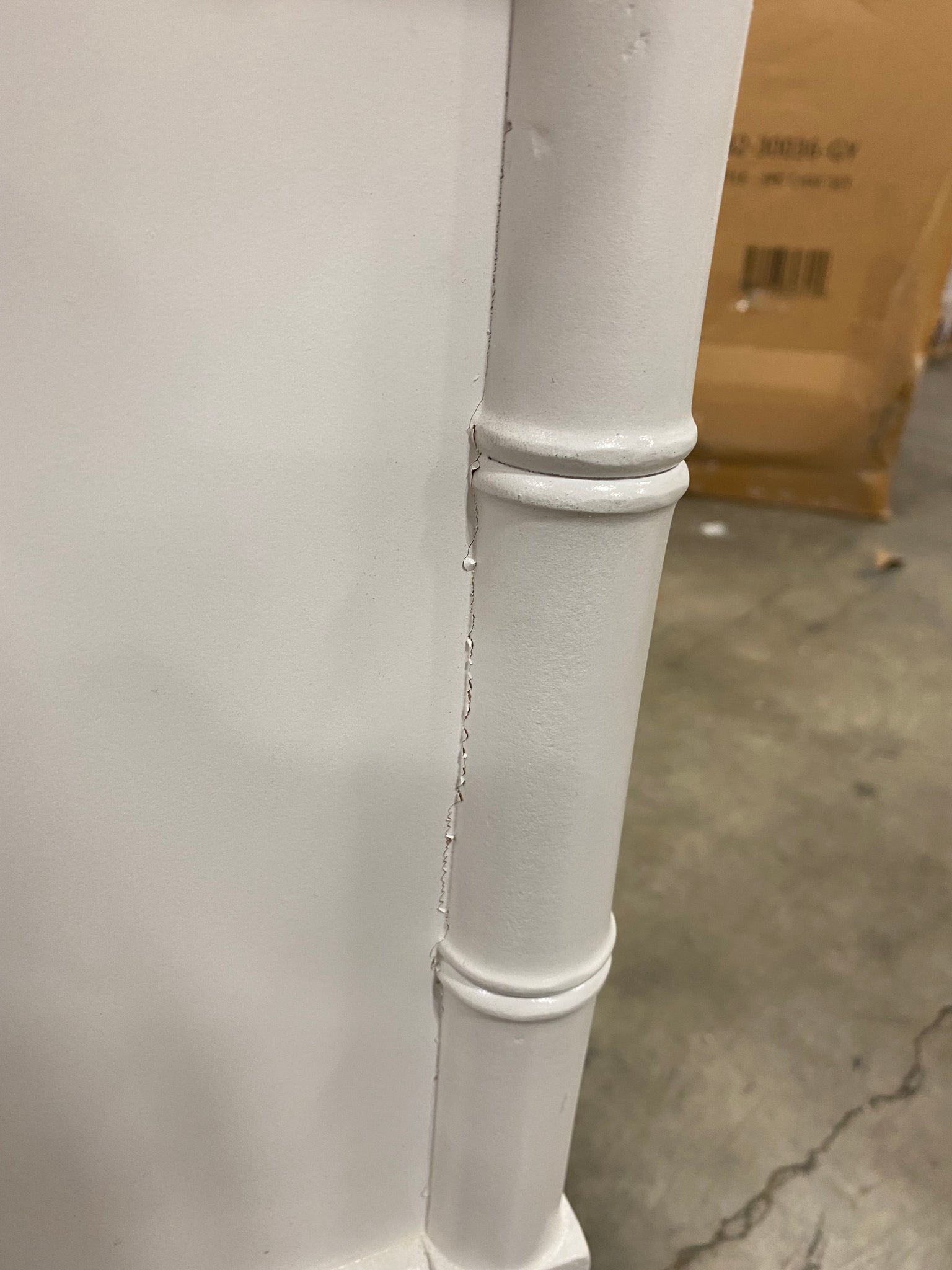 Open Box, The color is white, AS IS Condition: Item has ding damage/scratches on top due to shipment. Small hairline crack on seam of one side. See photos.