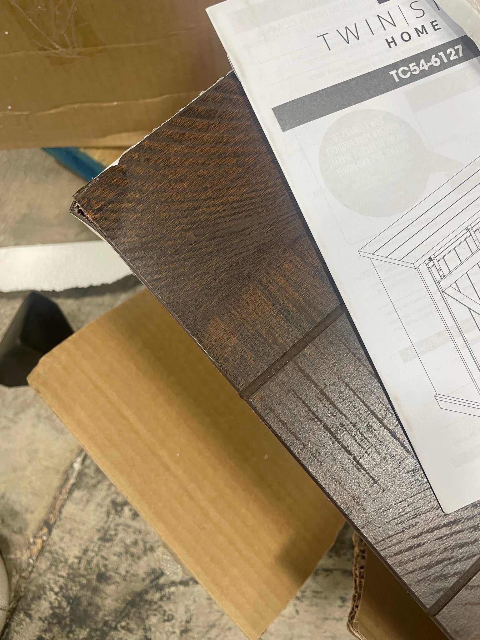 Note: In original packaging but this is a dent/imperfection on one corner of the tv stand. See pictures.