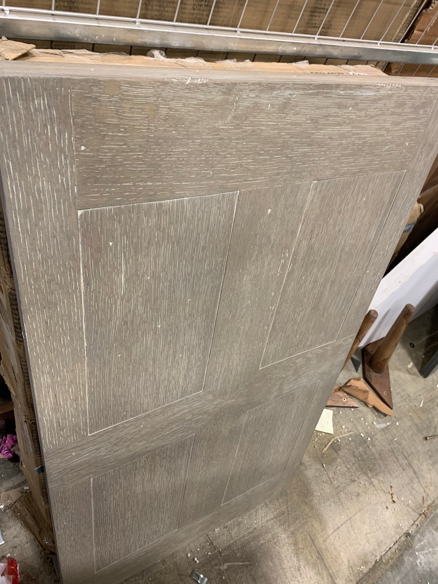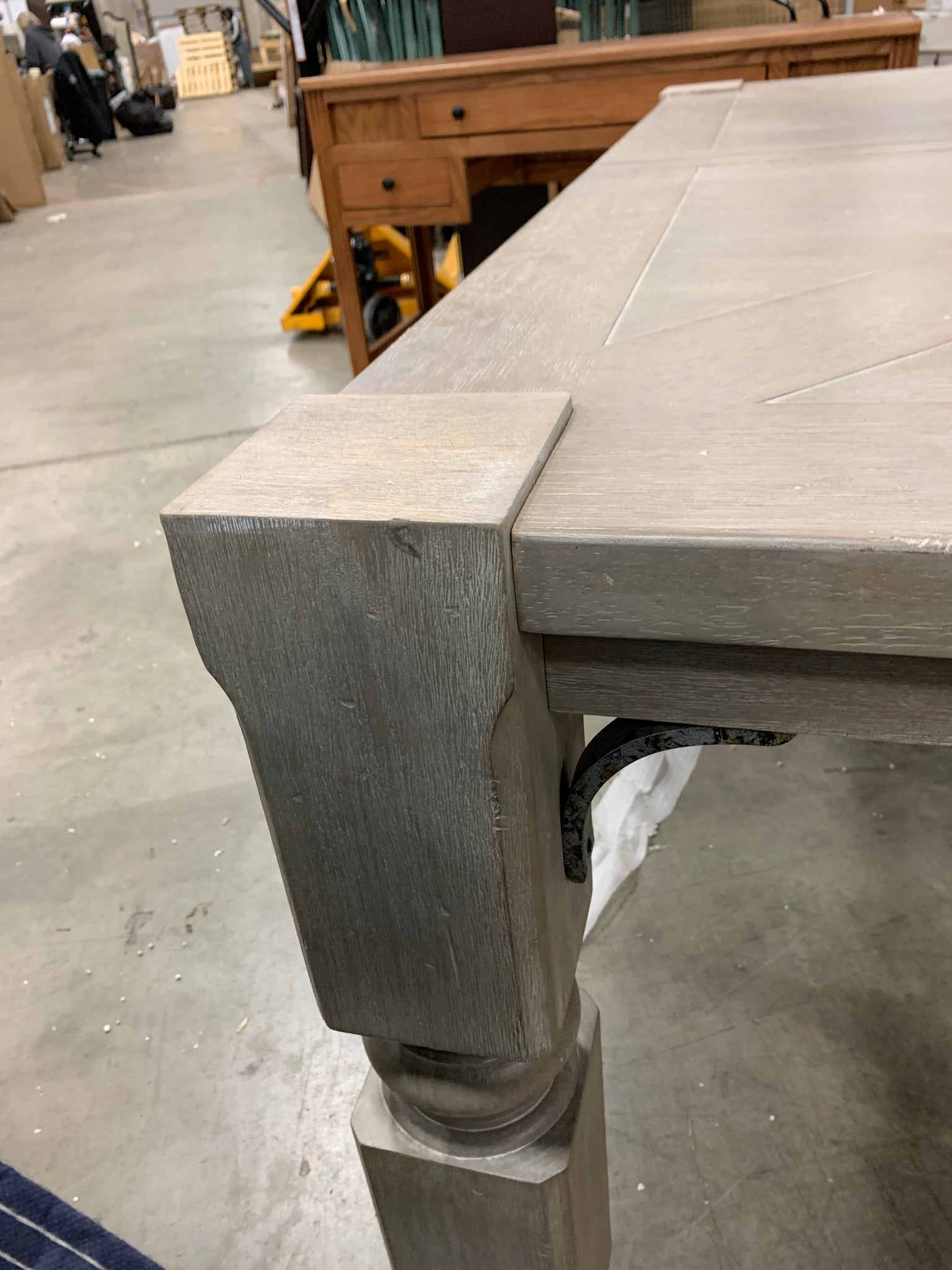 Wooden extendable dining table in Natural Gray wood finish. Assembled.