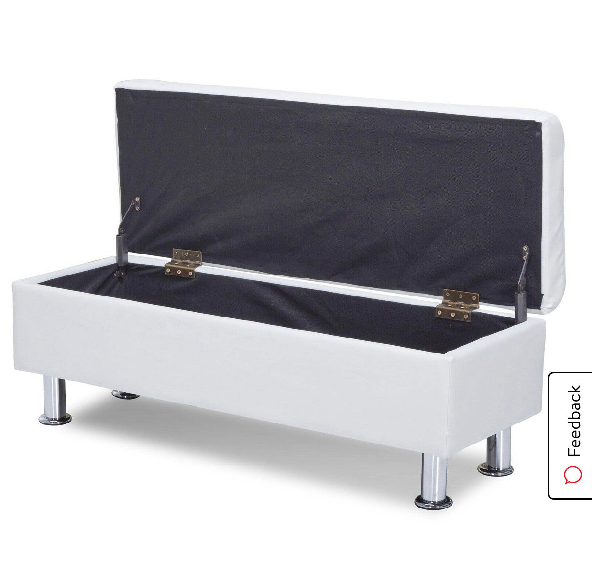 In box white PU faux leather storage ottoman bench in White/chrome. Assembly required.