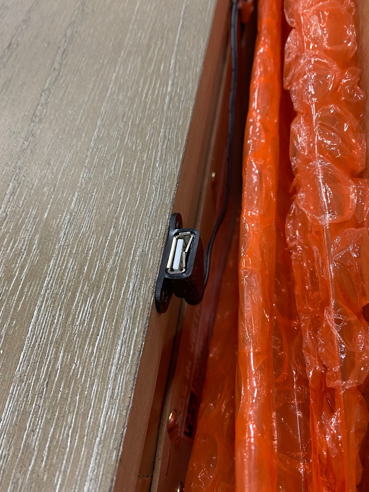 Open Box, The color is pewter, AS IS Condition: Item has damage on every corner of top. USB plugs are damaged, but can be replaced. See photos. Item in otherwise good condition.