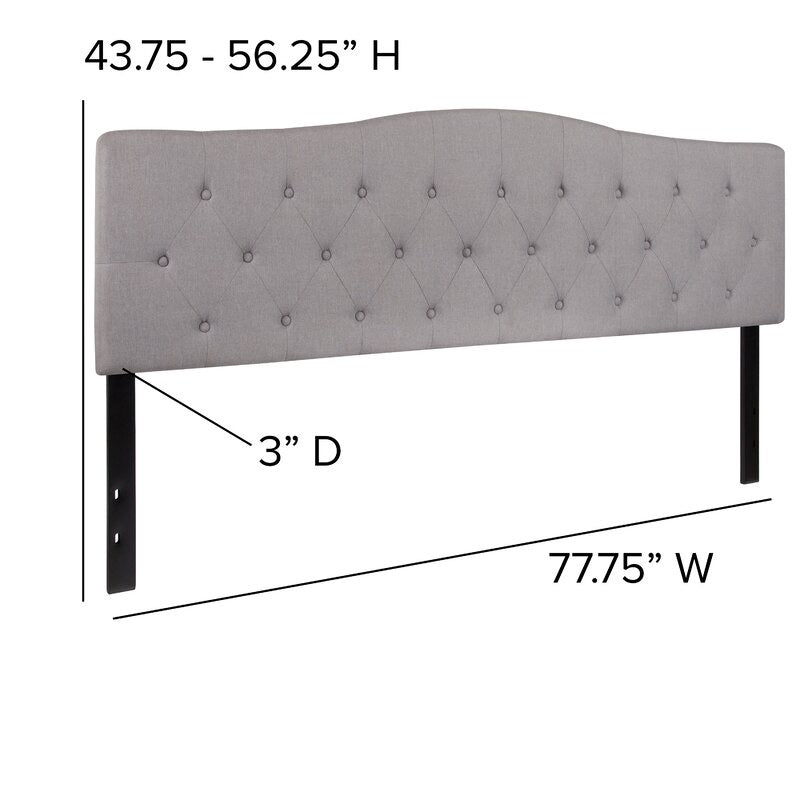 In box upholstered panel headboard King size in Light Gray. Assembly required.