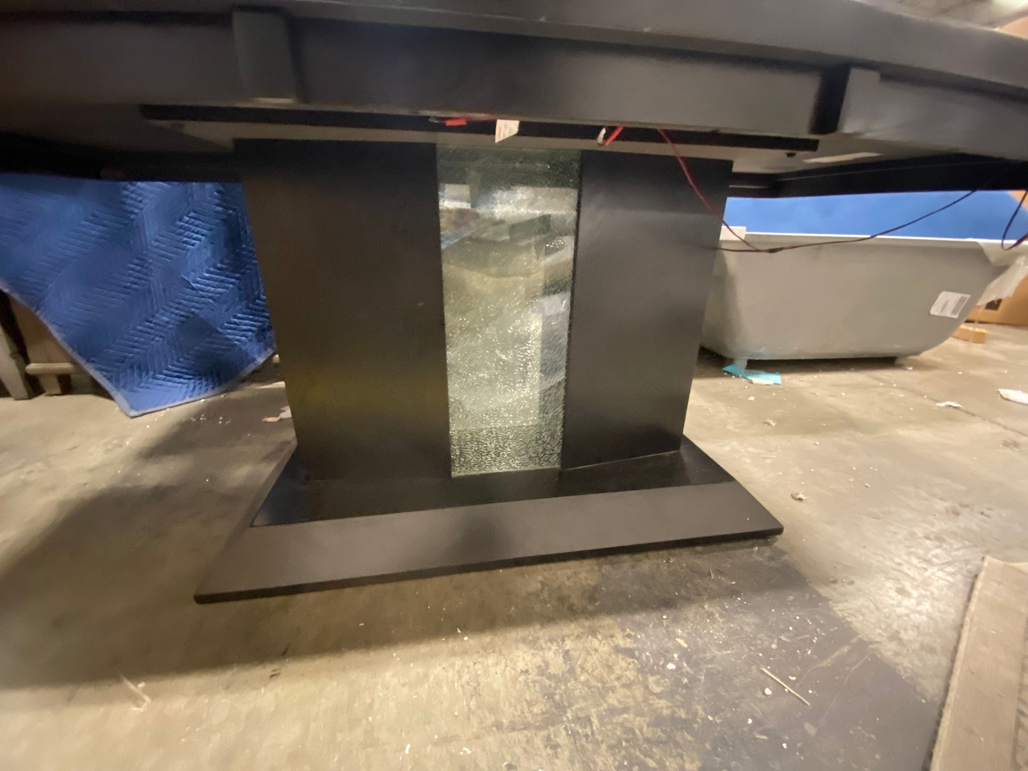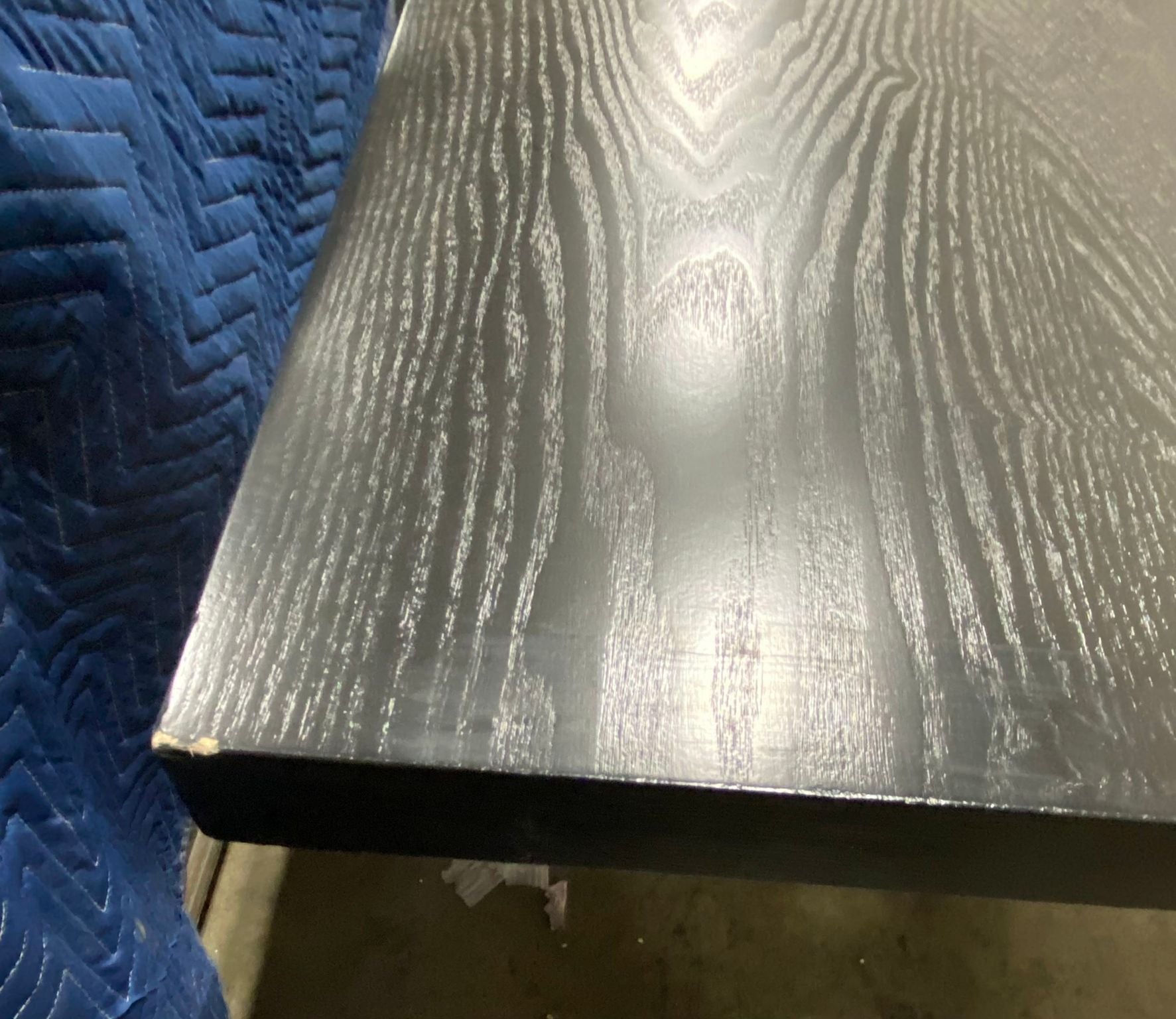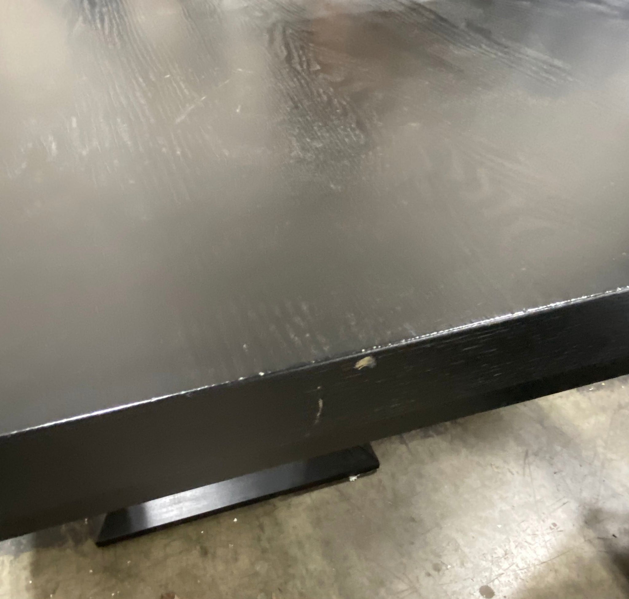 Out of box, The color is black, Table has some dings along sides/corners of table; slight scratches on table top. Light up function NOT tested. Item in otherwise good condition.