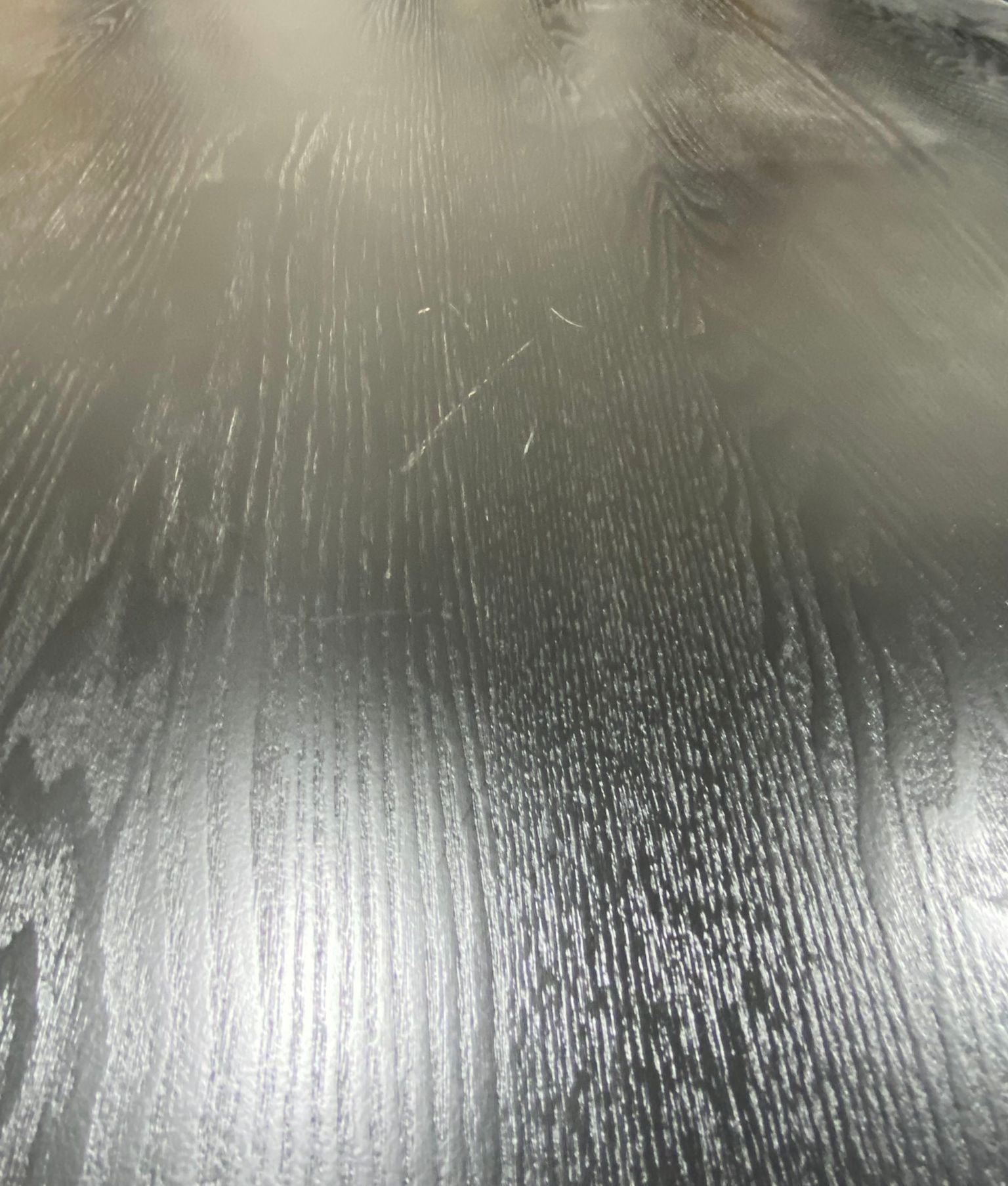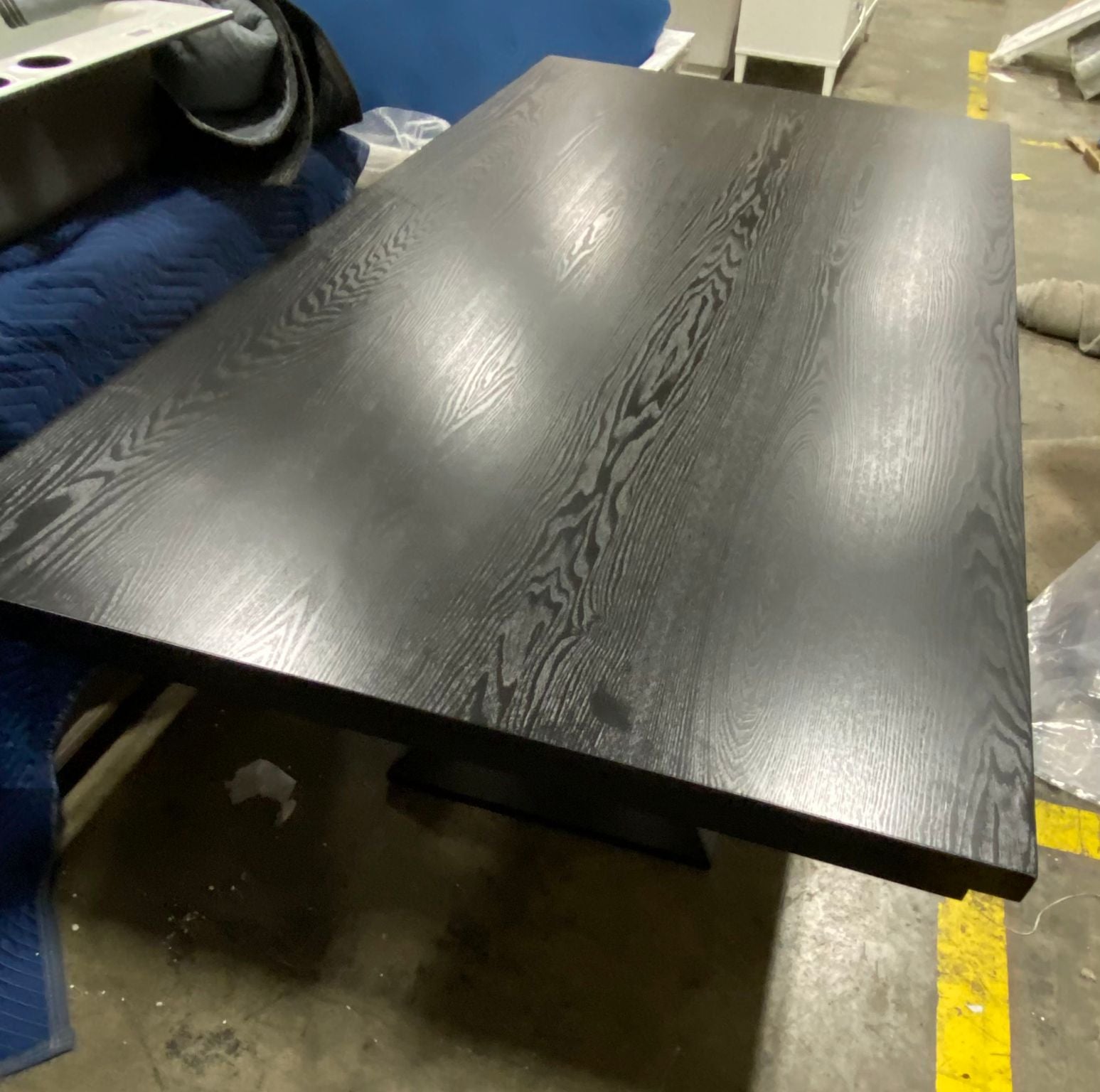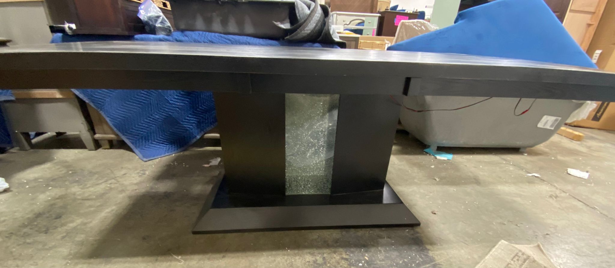 Out of box, The color is black, Table has some dings along sides/corners of table; slight scratches on table top. Light up function NOT tested. Item in otherwise good condition.