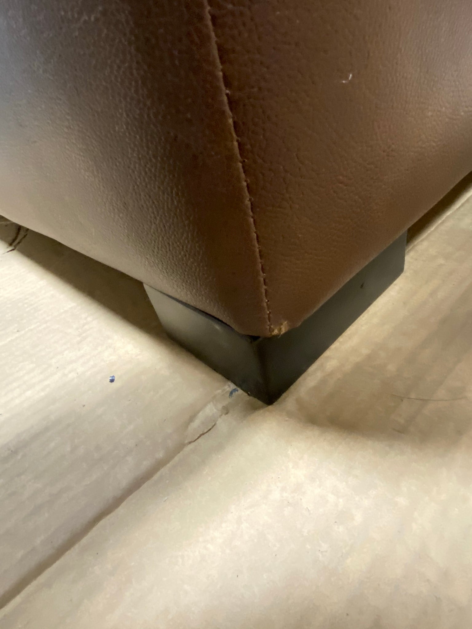 Please Note: Front corners/back of chaise have very slight scuffs due to shipment; feet has slight dings. See photos. Item in great condition.