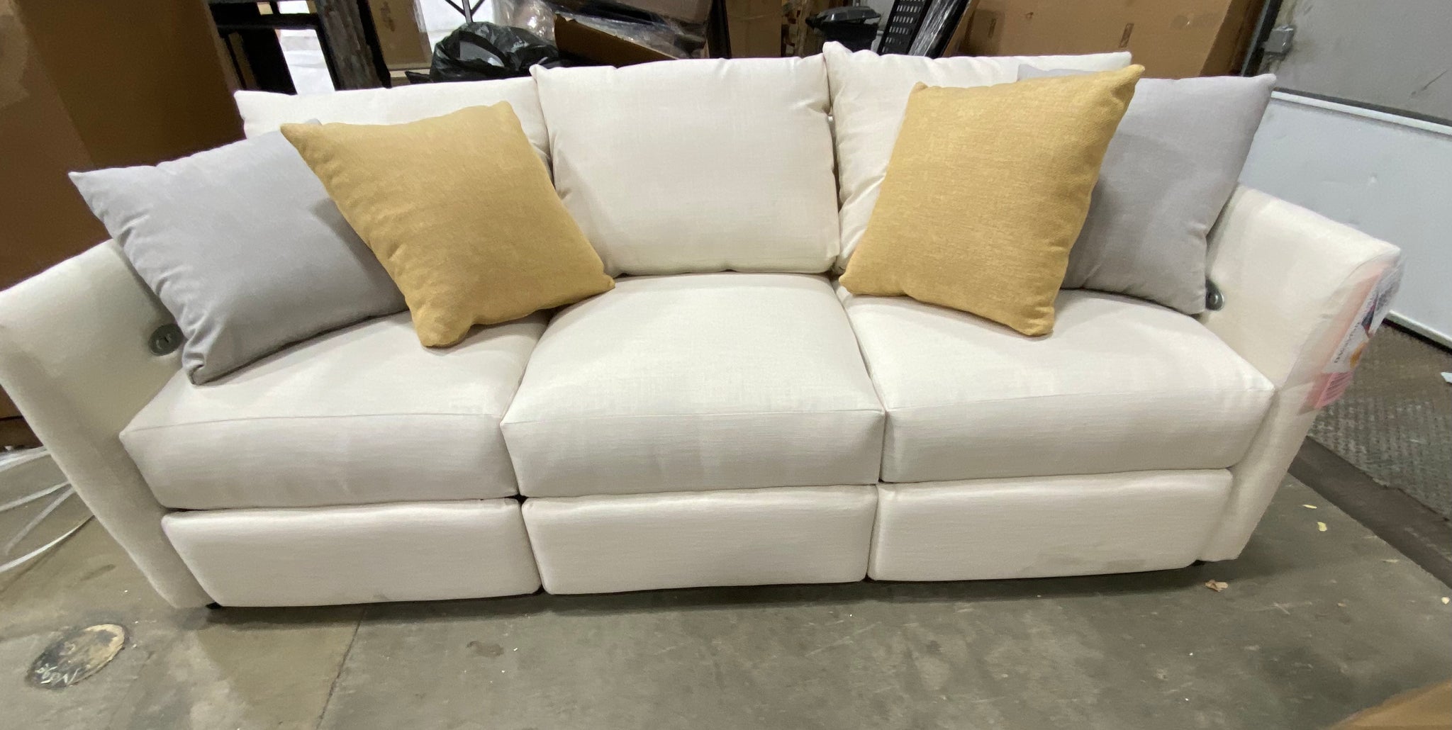 Please Note: Item has some slight spotting due to open shipment. Spot clean recommended. See photos. Item comes with ac plug in adapter. Power reclining footrests in working order. Item in otherwise great condition.
