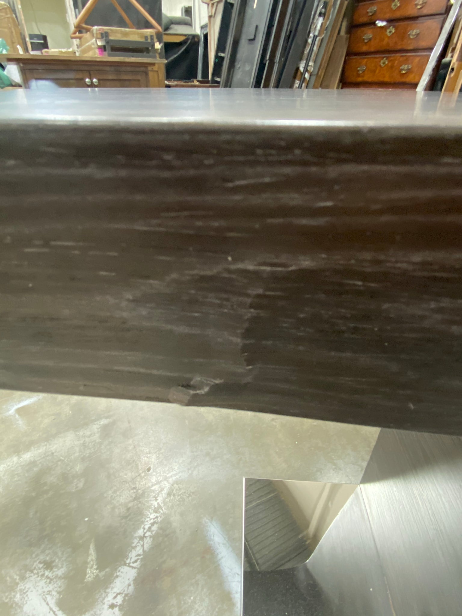 Please Note: Item has some dings/marks on table top. Item has small crack on one side. Slightly chipped along 1side edge; slight discolored spot on corner of table top. See photos. Item in otherwise very good condition.