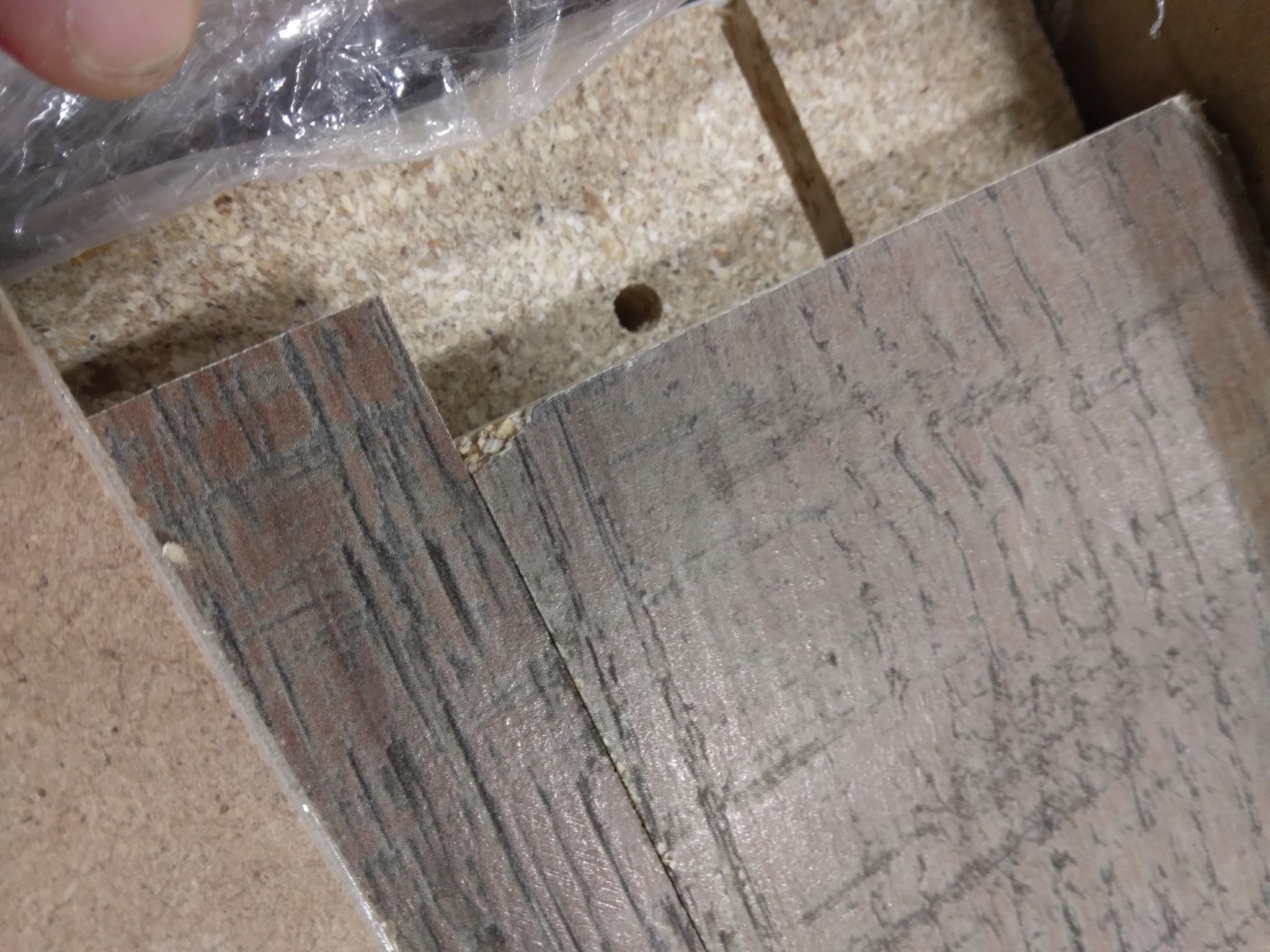 Open Box, The color is seaside pine, Slight chipping on the corners and sides of some pieces of wood. See for photos. No instructions included.